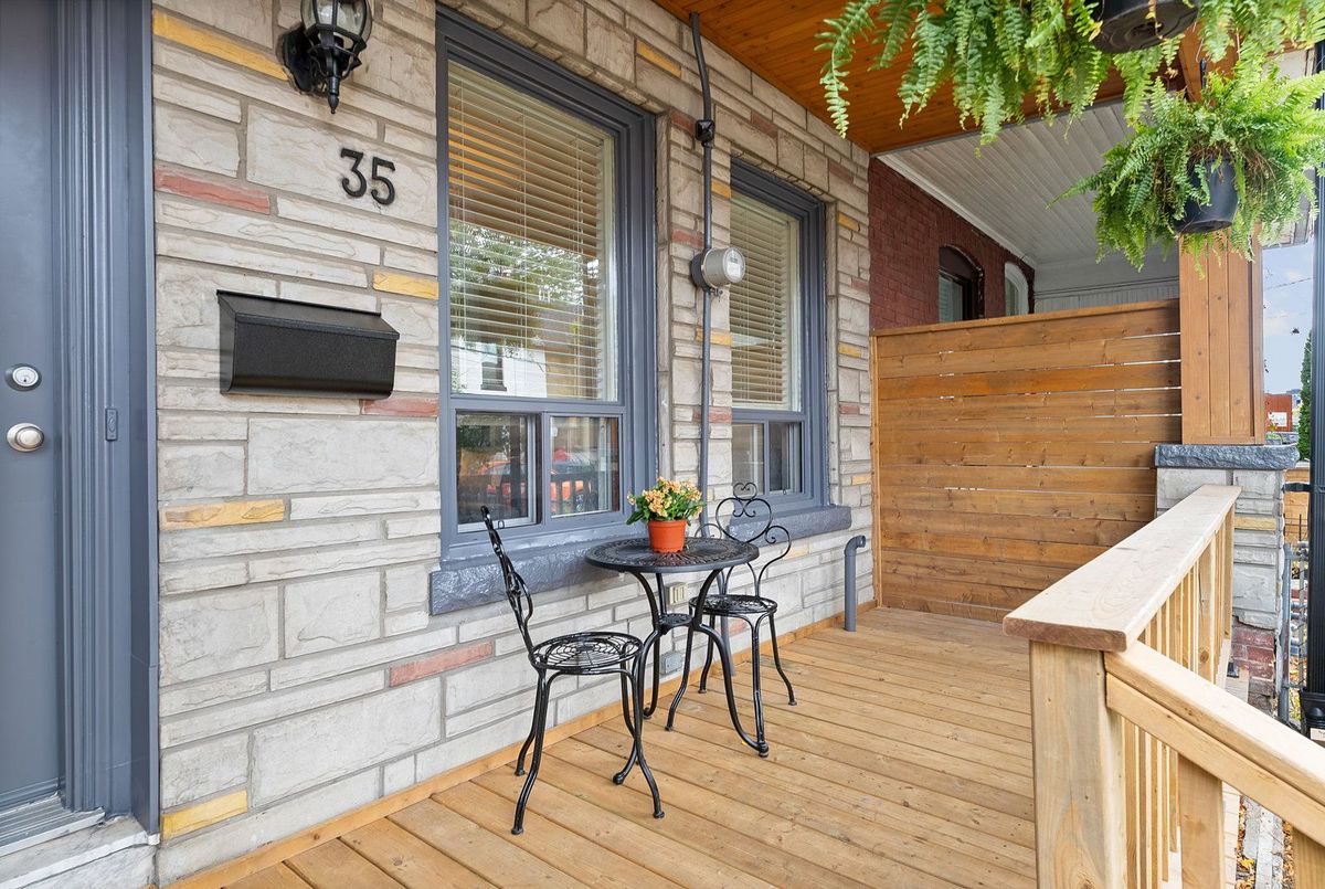 Welcome to 35 Miller St - a charming and spacious 4 bedroom family home just steps to Toronto's vibrant Junction community! This is one of the LARGEST townhouses in the area. This beautifully maintained 2-storey home offers the perfect blend of comfort, character, and convenience. The bright open-concept living and dining area features hardwood floors, crown moulding, and soaring 9-ft ceilings, creating an inviting space for everyday living and entertaining. The renovated kitchen (2023) showcases new custom cabinetry and a walk-out to a private backyard - ideal for outdoor gatherings. Enjoy your morning coffee or unwind in the evening on the newly built front porch deck (2023). Upstairs, you'll find four generous bedrooms filled with natural light, while the finished basement offers a large recreation room, 3-piece bath, and plenty of storage. Surrounded by parks in every direction - Carlton, Wadsworth, Earlscourt, Perth, and Campbell Park - this location is unbeatable. You're moments from the Junction, High Park, Roncesvalles, and St. Clair, with easy access to trendy local cafes, restaurants, the new Campbell Library, Stockyards shopping, and multiple grocery stores. The West Toronto Railpath is nearby, offering direct connections to GO Transit, Dundas West subway, and the UP Express - just 6 minutes to Union Station and 20 minutes to Pearson Airport. Major updates include roof (2020), AC (2016), waterproofing (2012). Parking Available to rent from the neighbour.