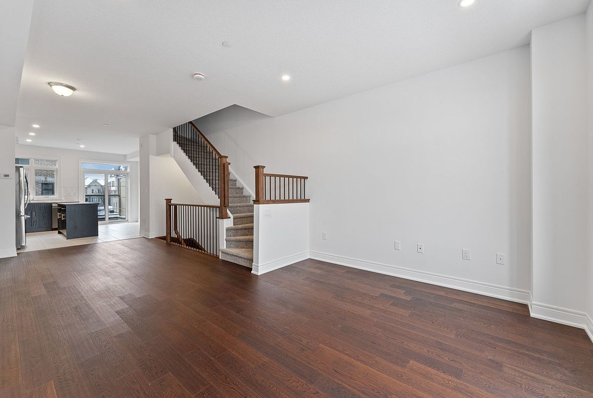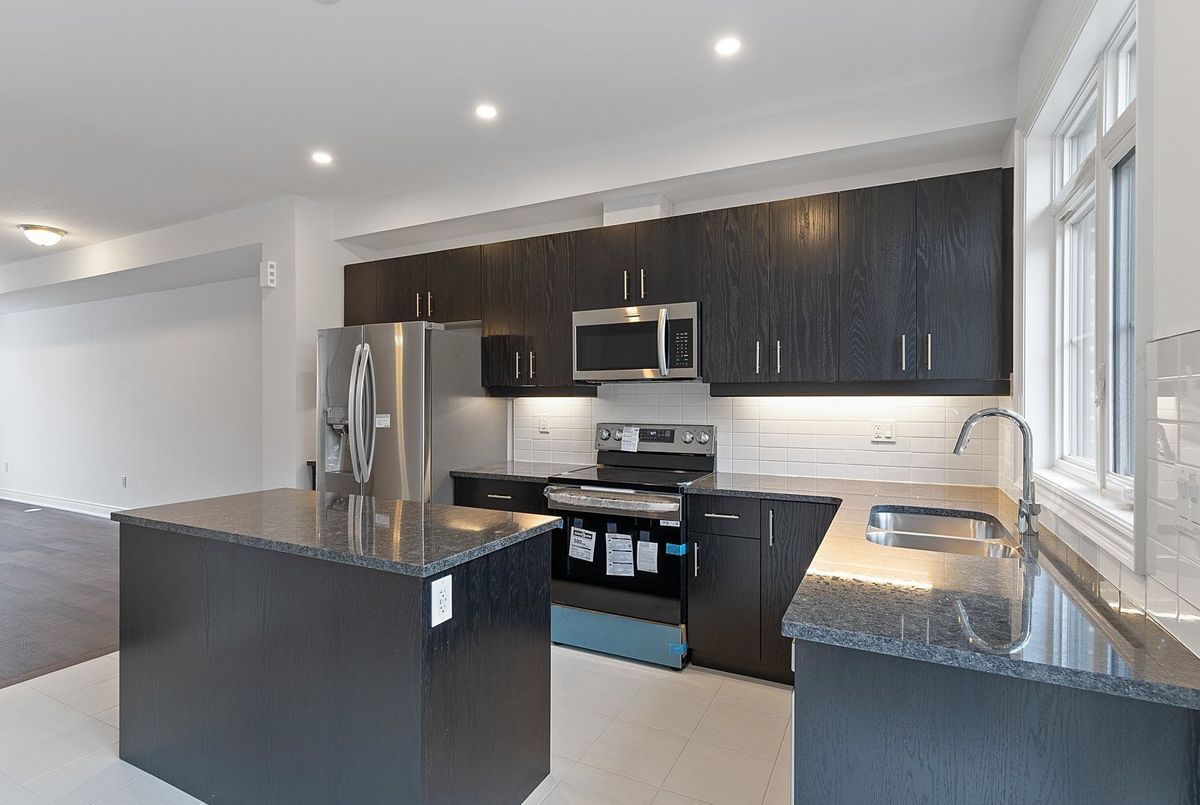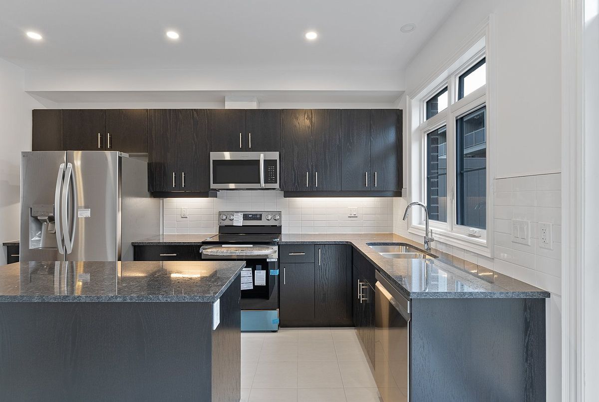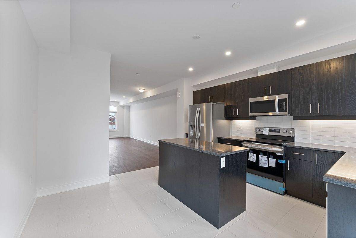 Be the first to live in this spacious executive townhouse in the desirable River Oaks community. This brand-new build features never-used appliances and a bright, open-concept layout with 9-foot ceilings and a solid oak staircase. The upgraded kitchen is both stylish and functional-perfect for everyday cooking and entertaining. Sliding doors lead to a private terrace, ideal for relaxing outdoors. The second level offers two bright bedrooms with ample closet space and a full bathroom. The top level is nothing short of luxury, with a large primary suite featuring his-and-hers walk in closets, a 5-piece ensuite bathroom, and its own private balcony. Additional highlights include a drywalled, insulated two-car garage with interior access. Conveniently located near shops, restaurants, parks, schools, and major highways.