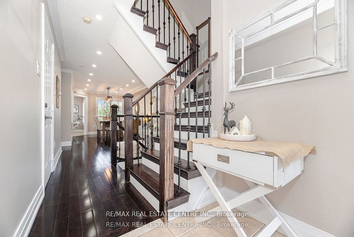 Welcome to this tastefully upgraded one of a kind Fernbrook Home in highly sought-after, family-friendly neighbourhood in Fletcher's Meadow! This beautifully maintained single owner home offers the perfect blend of comfort, style, and convenience. Hardwood floors, custom-built oak staircase, elegant crown moulding, Upgraded baseboards & trims, Crown moulding, potlights, California Shutters(wood), custom closets in all bedrooms, professionally landscaped and maintained garden with underground sprinkler system. Upstairs, you will find three generously sized bedrooms with upgraded laminate flooring. The primary suite has a massive custom walk-in closet, a secondary closet, California Shutters and a five-piece ensuite with a soaker tub and separate shower. Upper tenant to pay 70% of utilities. 3 Parking spots included. Basement not included