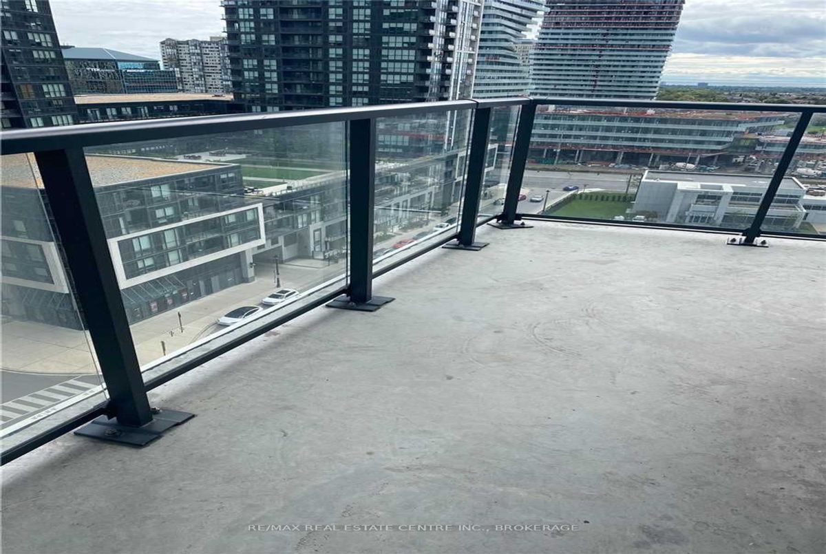Prime Square One Mississauga Location! This large 2-bedroom, 2-washroom condo features 9-foot ceilings and a spacious L-shaped outdoor balcony-perfect for relaxing or entertaining. The open-concept layout includes laminate flooring throughout the living and dining areas. The modern kitchen is equipped with stainless steel appliances, granite countertops, a breakfast bar, and upgraded full-glass cabinets. An open-concept den overlooking the kitchen adds a contemporary touch. Ideally situated just steps from Square One Mall, the library, YMCA, City Hall, Living Arts Centre, Sheridan College, public transit, and many more amenities. Perfect for those seeking comfort, convenience, and a vibrant urban lifestyle.