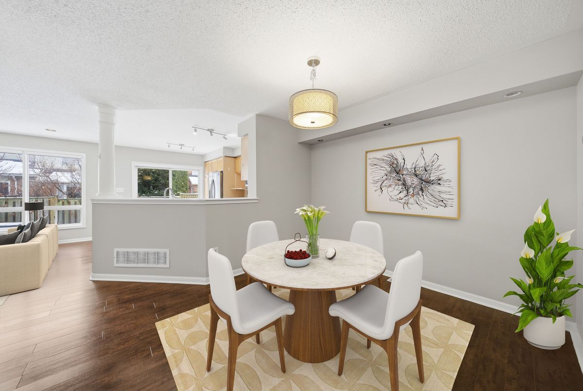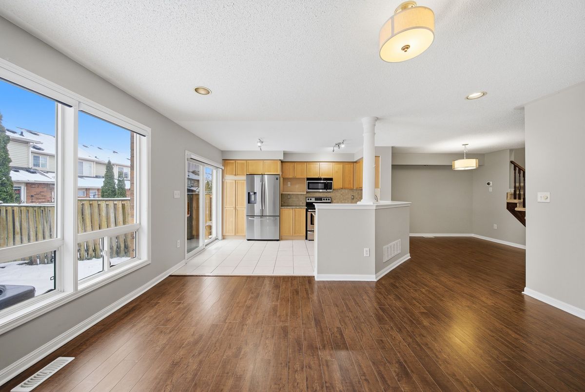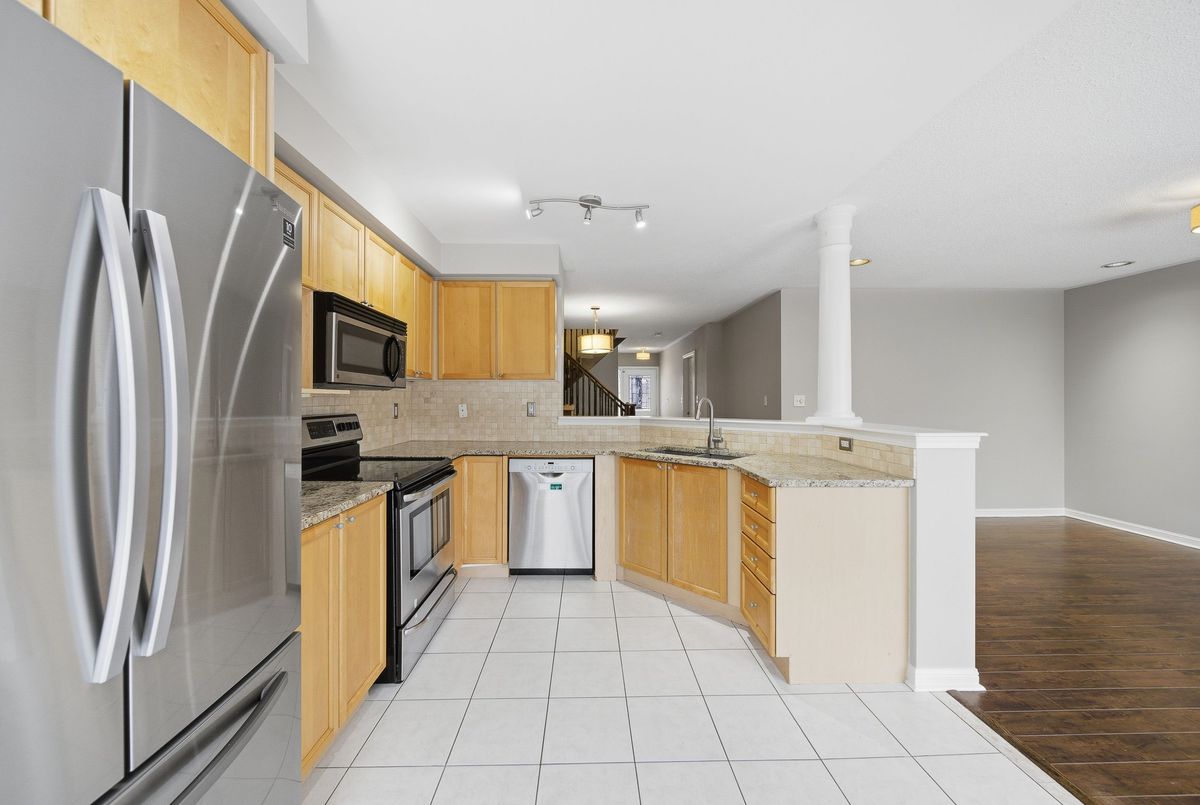 Welcome to this charming 2-storey townhome in Oakville's desirable Westmount community. The main level features hardwood flooring throughout, a bright living/dining area with pot lights, and a welcoming family room with large windows that fill the space with natural light. The kitchen offers stainless steel appliances and a sliding door walkout to a fully fenced backyard complete with a patio-perfect for outdoor dining and relaxation. A convenient powder room completes the main floor. Upstairs, you'll find three spacious bedrooms, including a primary suite with a walk-in closet and 3-piece en-suite. Two additional bedrooms share a well-appointed 4-piece main bathroom. The lower level provides plenty of storage space and laundry facilities, offering excellent functionality for everyday living. Additional highlights include garage and driveway parking for multiple vehicles. Located close to top-rated schools, parks, shopping, and major highways, this home offers comfort, convenience, and an exceptional leasing opportunity in one of Oakville's most sought-after neighbourhoods