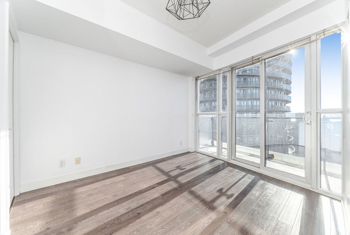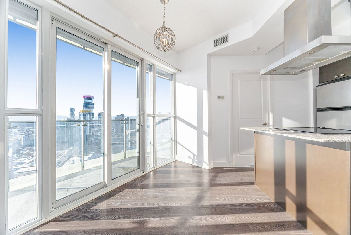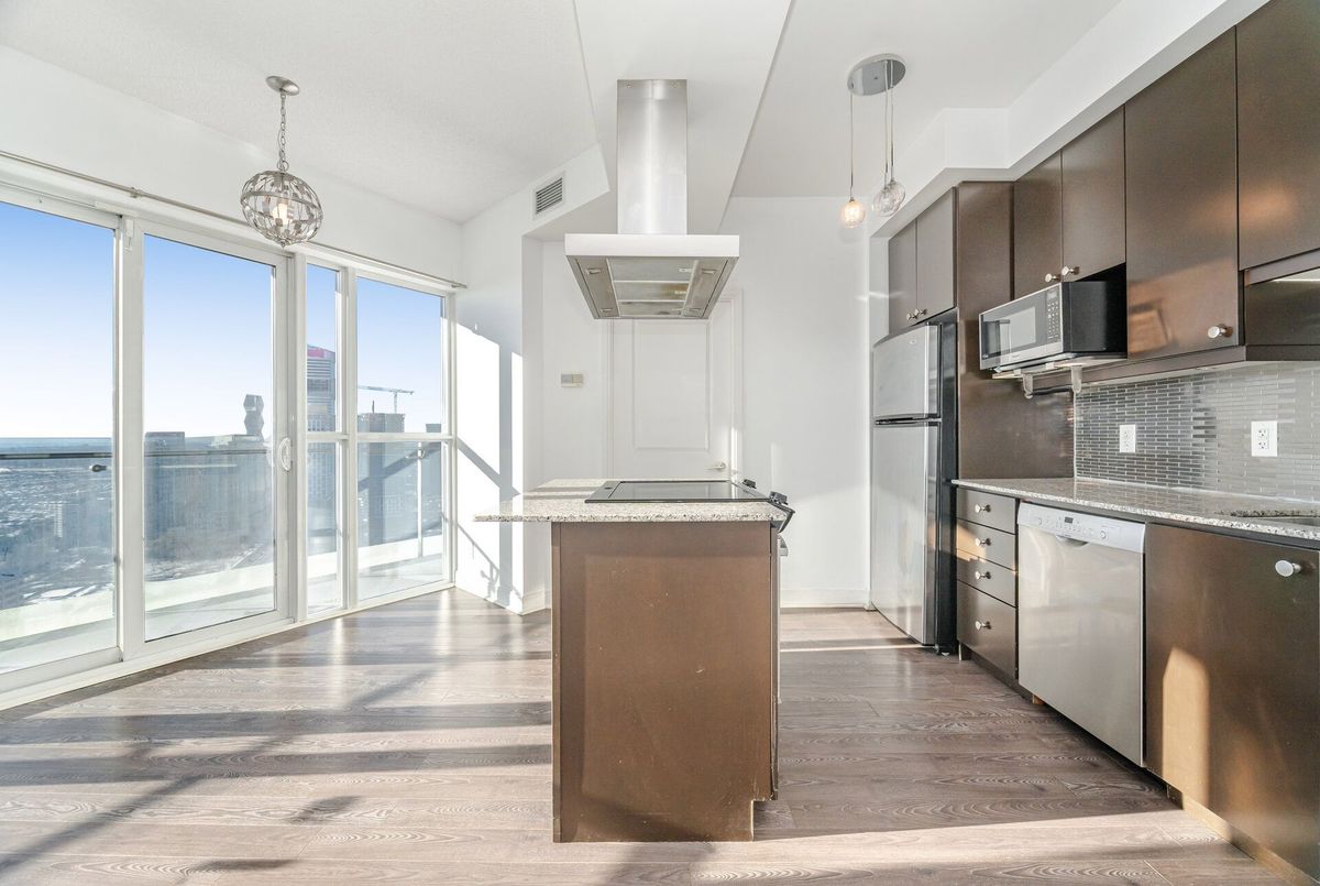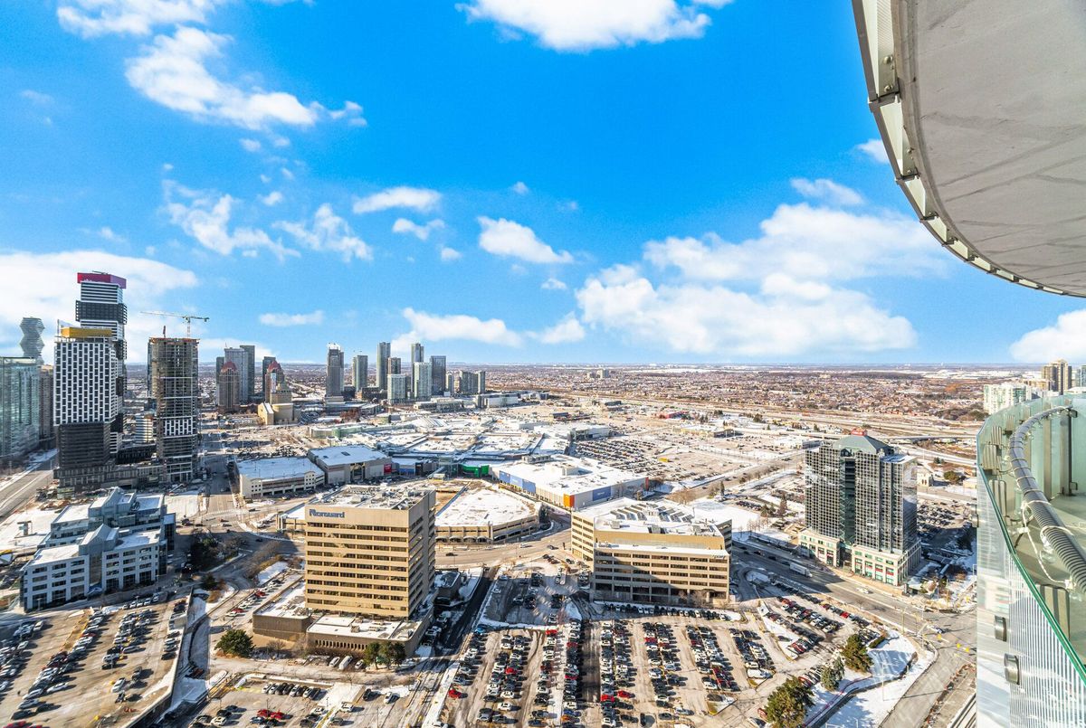 Experience luxury living at the iconic Marilyn Monroe Condos in the heart of Mississauga, offering over 30,000 sq. ft. of state-of-the-art amenities including pool, gym, and concierge services. This bright and spacious 2-bedroom, 2-bathroom suite features an open-concept layout with granite countertops, stainless steel appliances, floor-to-ceiling windows, and a wraparound balcony showcasing unobstructed panoramic views of the city. The unit also boasts laminate flooring throughout, a fresh new paint job, and custom feature wall. The open and airy layout makes entertaining a breeze while enjoying balcony access from the living room and both bedrooms. This building is located in the heart of it all steps to the upcoming HURONTARIO LRT, Square One Shopping Centre, restaurants, and much much more.