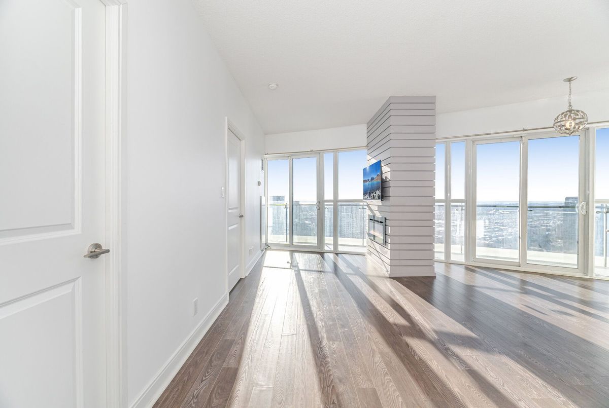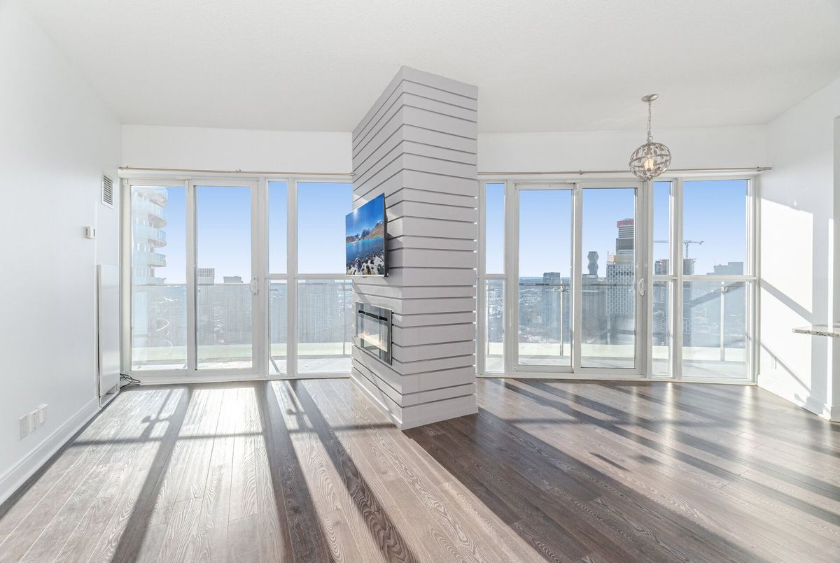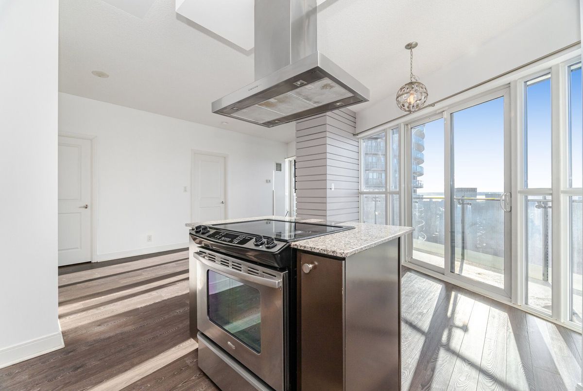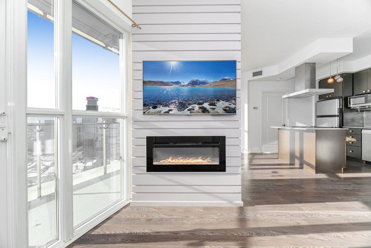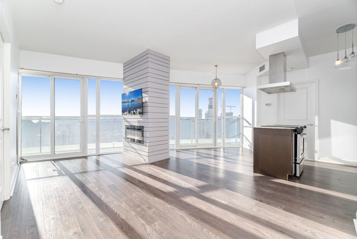 Experience luxury living at the iconic Marilyn Monroe Condos in the heart of Mississauga, offering over 30,000 sq. ft. of state-of-the-art amenities including pool, gym, and concierge services. This bright and spacious 2-bedroom, 2-bathroom suite features an open-concept layout with granite countertops, stainless steel appliances, floor-to-ceiling windows, and a wraparound balcony showcasing unobstructed panoramic views of the city. The unit also boasts laminate flooring throughout, a fresh new paint job, and custom feature wall. The open and airy layout makes entertaining a breeze while enjoying balcony access from the living room and both bedrooms. This building is located in the heart of it all steps to the upcoming HURONTARIO LRT, Square One Shopping Centre, restaurants, and much much more.