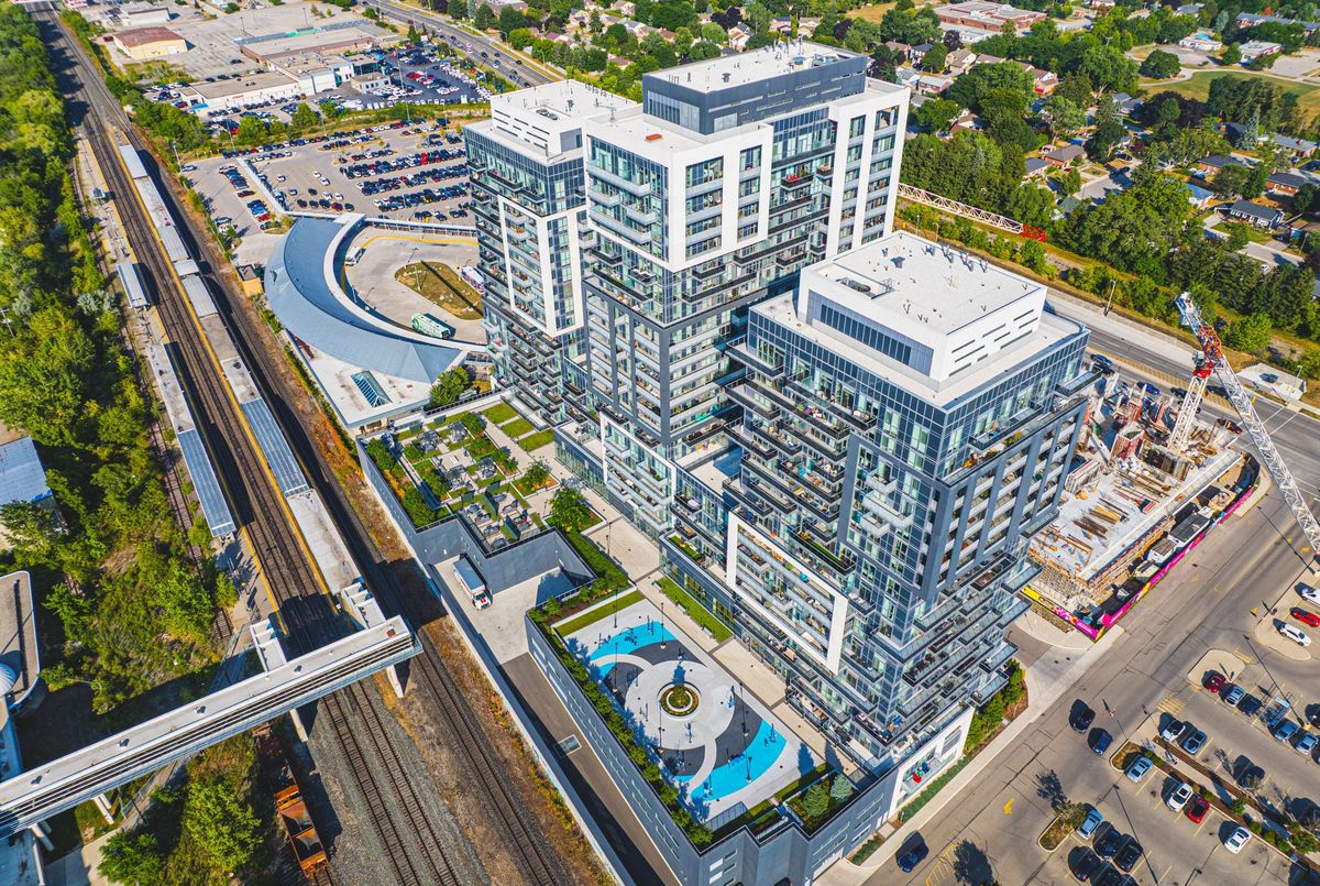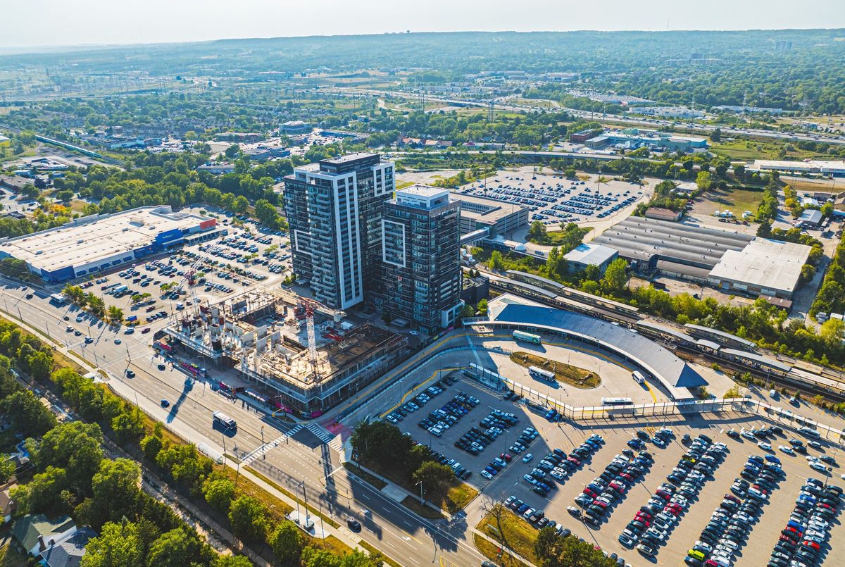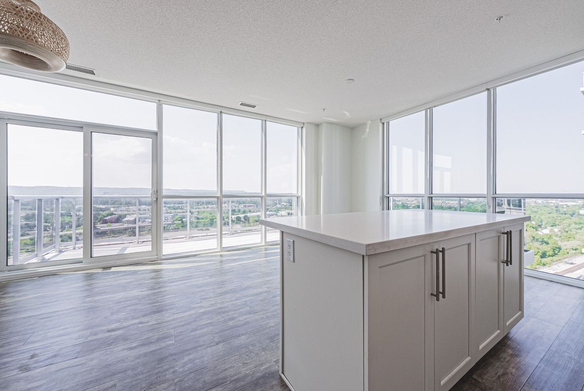 A SOPHISTICATED Corner unit condo in the highly sough-after Paradigm Gran - unit #2001! This expansive 2 bedroom, 2 bathroom, 2 car Tandem parking, this condo offers approximately 1039 sqft of contemporary living space and is located on the 20 storey high-rise known as Paradigm Grand Condo's in the Brant/Fairview area of Burlington. Designed with style and comfort in mind, the unit features northeast exposure, letting in ample natural light. Upgraded Sleek finishings including quartz countertops, upgraded cabinetry and stainless-steel appliances, flooring thru-out! Prime location adjacent to Burlington Go Station, making citywide commuting effortless! Quick and easy access via QEW. 403 and 407, simplifying regional travel.. Mere steps from downtown Burlington, offering boutique shopping, international dining, waterfront trails, Spencer Smith Park, and lifestyle amenities. Close proximity to Burlington Centre Mall and large retailers like Walmart - enabling everyday convenience. Residents at Paradigm Grand enjoy an impressively curated array of resort-style amenities: Indoor pool, hot tub, sauna, fully equipped fitness centre, half court basketball gym, outdoor terrace with BBQ and lounge areas, dog park and wash stations for pet owners, multiple party rooms, guest suites, theatre room, kids' playroom, games room and more. 24 hour concierge, secure key-fob access, video surveillance and controlled entry systems - ensuring safety and elevated lifestyle