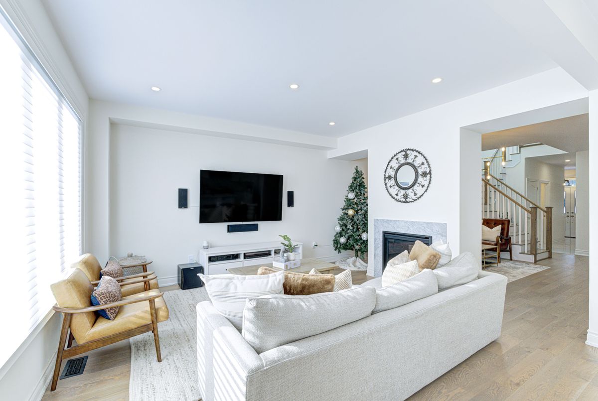 Welcome to 3 Mussle White Road, a beautifully upgraded 5-bedroom detached home in the prestigious Bram West community featuring 9 ft ceilings on both the main and second floor, upgraded hardwood floors, upgraded stairs/railings, custom window coverings throughout the home, and a stunning 48x48 skylight above the staircase for natural flowing light. The beautifully designed main level features an upgraded hardwood floor library, LED pot lights, a gas fireplace, and a spacious gourmet kitchen with a built-in Bosch fridge, Bosch speed oven/microwave, Bosch dishwasher, a professional 36" Bluestar gas stove, quartz countertops, a full quartz backsplash, shaker cabinets, an extra-wide Blanco Silgranit sink, and an upgraded oversized kitchen island. The spacious and bright second floor offers five large bedrooms, including a luxurious primary suite with an upgraded walk-in closet, raised vanity height, his and hers sinks, upgraded glass shower, and quartz countertops in all bathrooms with upgraded tile. Exterior upgrades include a double-door entrance, interlock stone in the front that connects to the premium paved backyard patio area, a stone-surrounded tree, a backyard deck, and a basement side door offering excellent future potential. Additional features include an extended driveway, garage door opener, Ring home security, rear security camera, doorbell camera, 200-amp electrical service for EV charger potential, CAT6 Ethernet cabling to the library, great room, and second bedroom, HVAC humidifier, Electrolux washer/dryer, gas fireplace, LED pot lights on the main floor, and window coverings throughout. Located minutes from Lionhead Golf Club, parks, schools, shops, transit, and major highways, this impeccably maintained 2017 Great Gulf-built home offers luxury, comfort, and exceptional value in one of Brampton's most sought-after neighbourhoods.