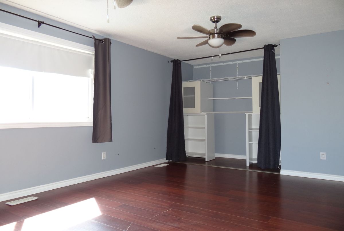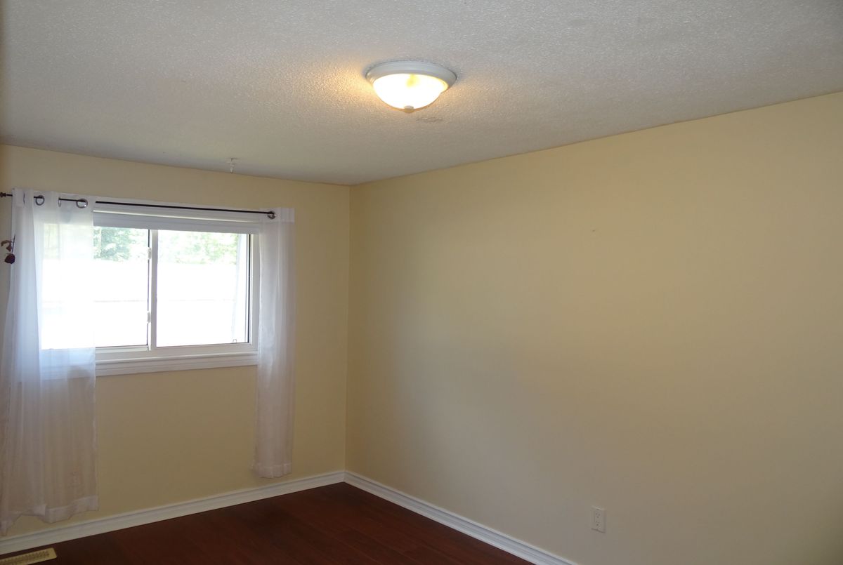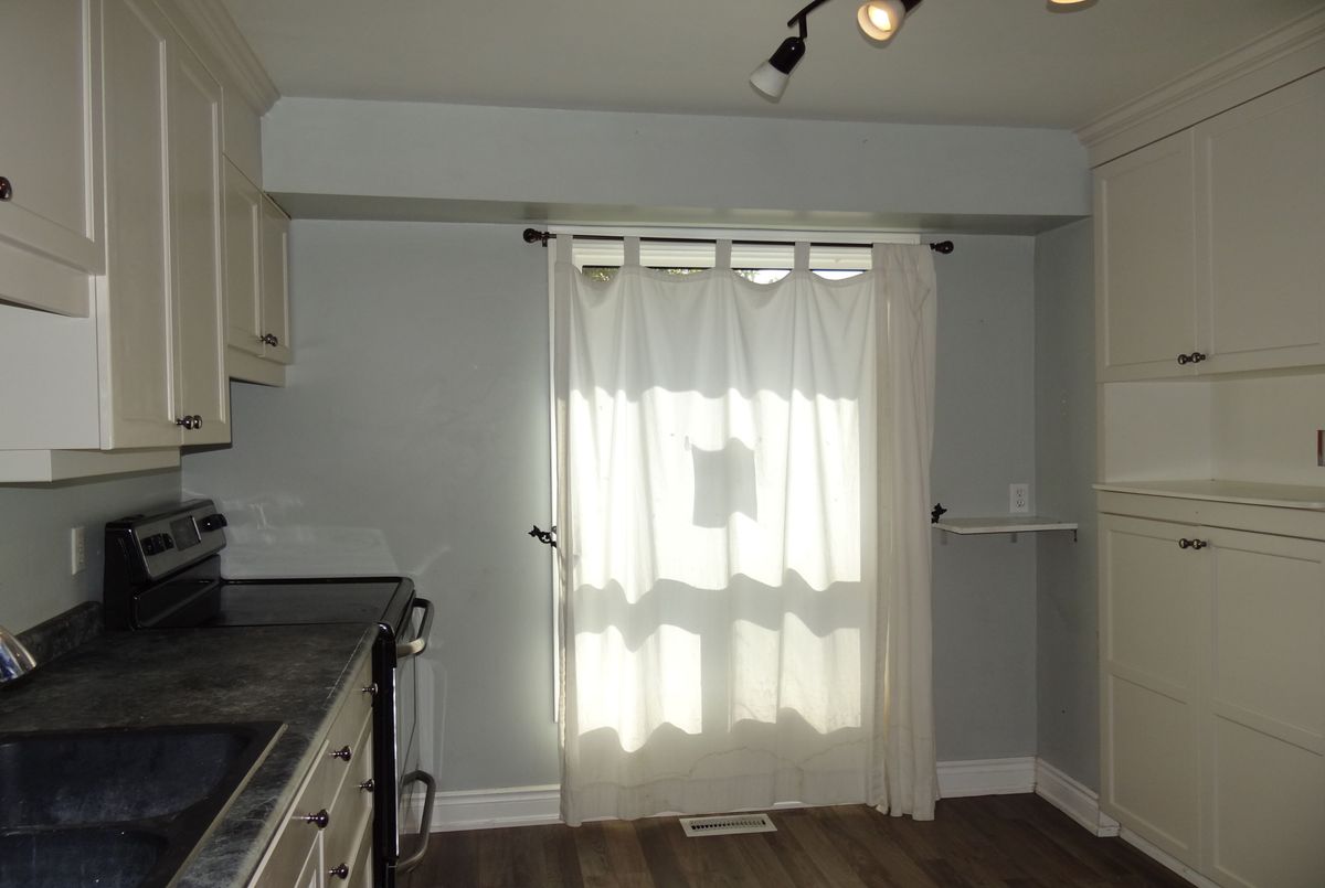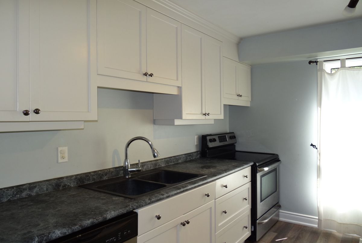 Great end unit Townhome with larger yard, private parking in front of Unit. Foyer has 2pc washroom, crown moldings and higher baseboards. Living Room/Dining Rm is a large open concept room that walks out to deck & fenced yard. Spacious bedrooms, windows replaced, forced air gas furnace and central air. Walk to park, schools, shopping & lake.