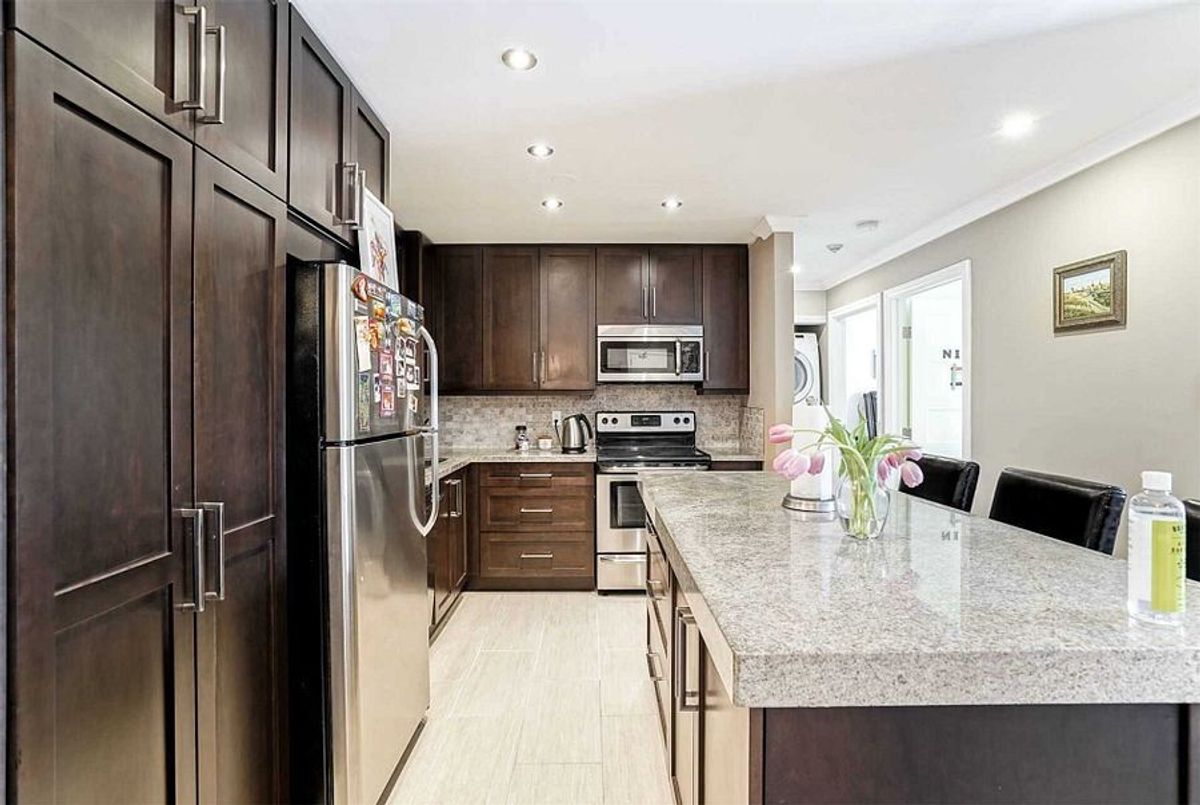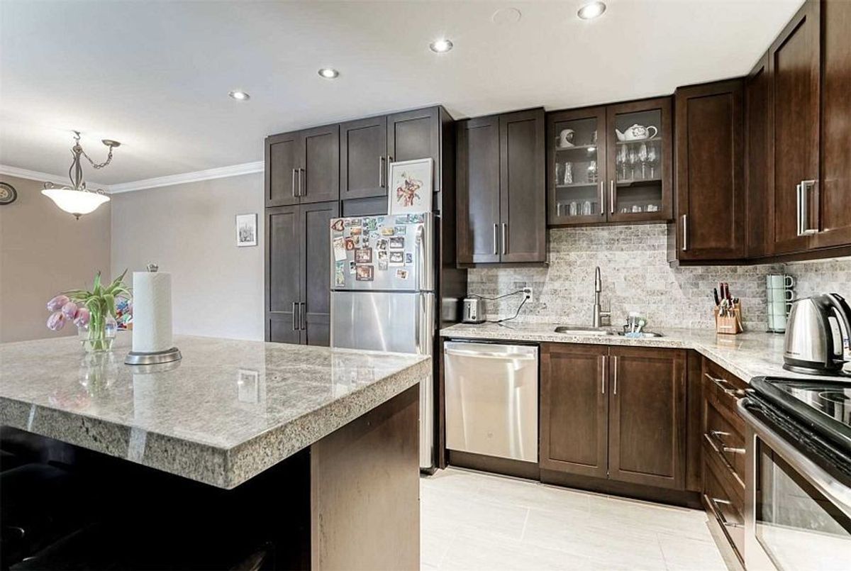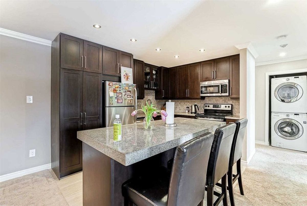 Welcome to this beautifully renovated top-floor 2-bedroom condo offering a bright and functional open-concept layout. The modern kitchen is thoughtfully designed with custom cabinetry, granite countertops, and stainless steel appliances, seamlessly connecting to the spacious living and dining area. A cozy wood-burning fireplace adds character, while the walk-out to the private balcony extends your living space outdoors. The primary bedroom features a generous walk-in closet and a fully renovated ensuite bathroom, while the second bedroom offers excellent versatility for guests, a home office, or family living. Ideally located close to one of the best high schools, parks, shopping, and with easy access to the QEW, plus Oakville's scenic trails just steps away. A well-maintained, move-in-ready home in a highly desirable Oakville location.
