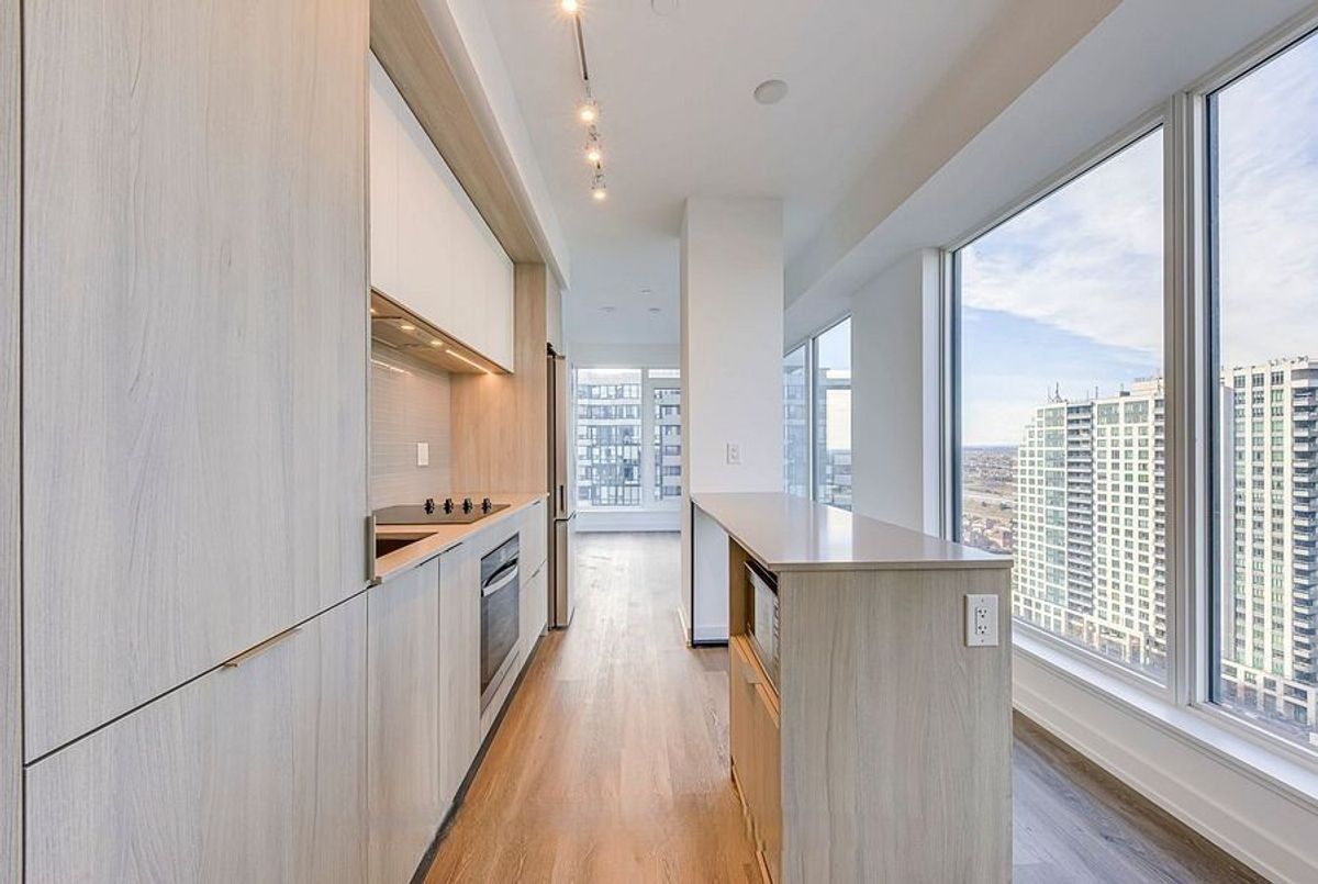 JUST FABULOUS. A rare opportunity to lease a sun-drenched corner 2-bedroom, 2-bath residence in the highly coveted Daniels-built Square One District, located in the heart of Mississauga's most vibrant and cosmopolitan neighbourhood. This impeccably designed suite offers approximately 830 sq. ft. of elegant living space with 9-foot ceilings, thoughtfully positioned to maximize privacy and natural light. A refined, contemporary colour palette enhances the sophisticated ambiance throughout. The designer, chef-inspired kitchen anchors the open-concept great room, featuring a statement island, quartz countertops, premium stainless steel appliances, and sleek soft-close cabinetry-ideal for elevated everyday living and stylish entertaining. Step onto the private balcony and enjoy captivating views and stunning sunsets, providing a serene retreat above the city energy. Residents enjoy access to an exceptional suite of resort-style amenities, including a basketball court, state-of-the-art fitness centre, rooftop terrace, and beautifully appointed co-working spaces. A grand modern lobby with concierge service completes the upscale living experience. Ideally located just steps from Square One Shopping Centre, Transit Terminal, Sheridan College, major highways, fine dining, and entertainment-offering unmatched convenience and urban luxury.