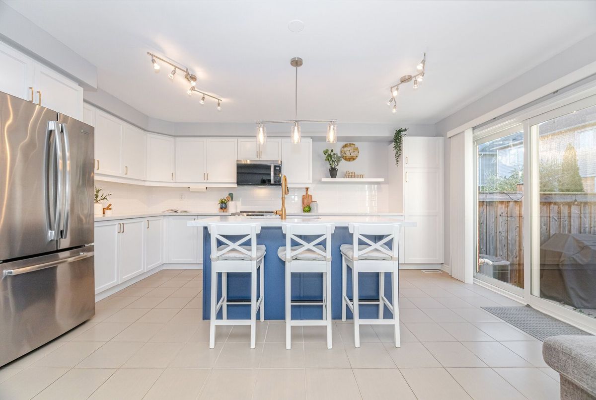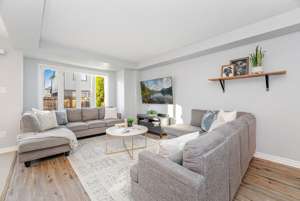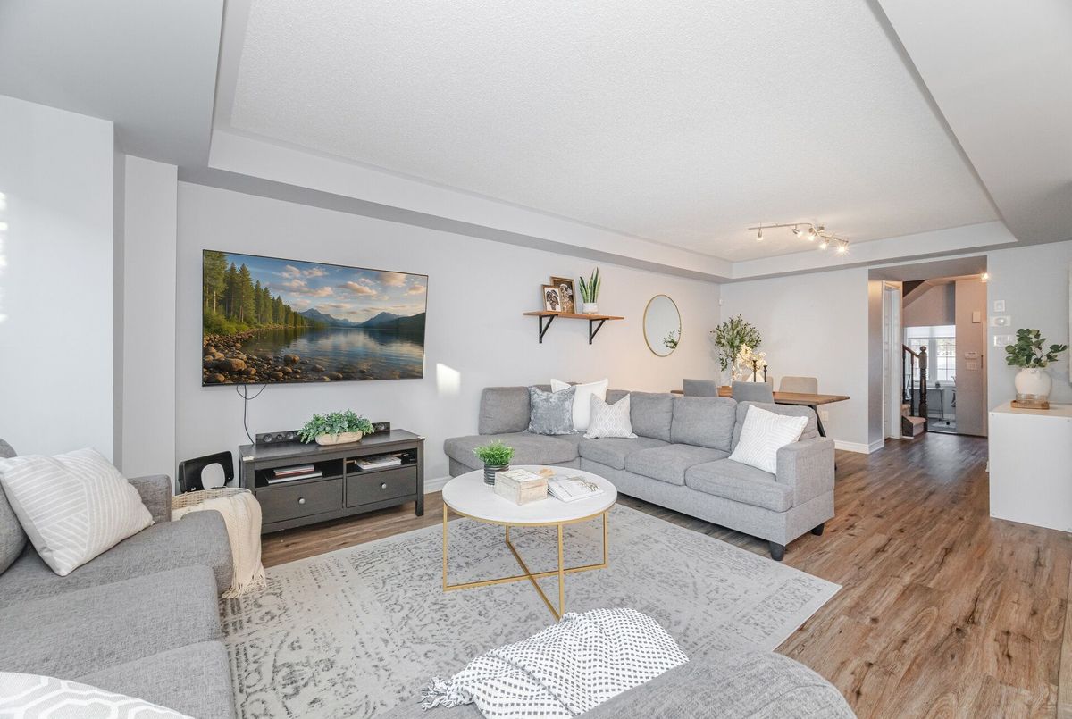 Welcome to this stunning freehold townhome offering nearly 1900 sq. ft. of spacious living, plus an additional 500 sq. ft. in the beautifully finished basement. Perfectly situated steps from three scenic parks, elementary and high schools, both public and catholic and a major shopping centre, this home combines comfort, convenience, and style in one ideal package. The main floor features a bright open layout with durable vinyl flooring, a large living and dining area, perfect for family gatherings and entertaining. There's also a versatile office/den, ideal for working from home. The gorgeous renovated kitchen is the heart of the home, boasting a large centre island, quartz countertops, newer stainless steel appliances and ample cabinetry - a dream for any cook! Upstairs, you'll find three generous bedrooms and two bathrooms, including a huge primary suite with plenty of closet space and a 4 piece ensuite and convenient 2nd level laundry room. The finished basement adds even more living space, offering a cozy recreation room with fireplace, perfect for movie nights, a home gym, or a play area. This home truly has it all - modern finishes, a functional layout, and a fantastic location close to everything you need.