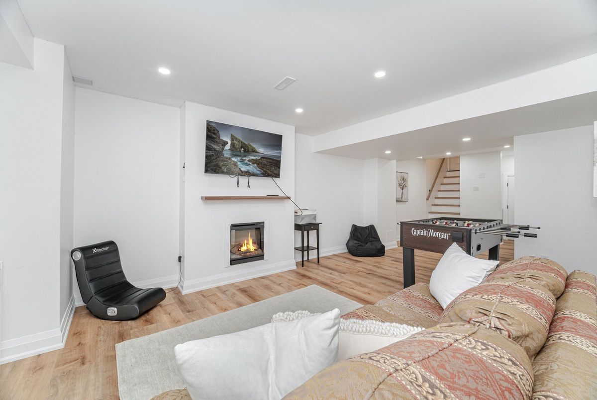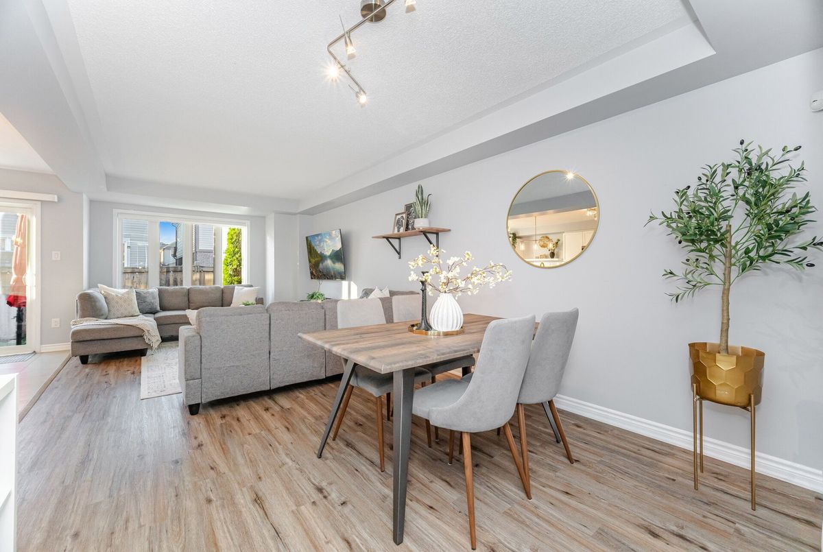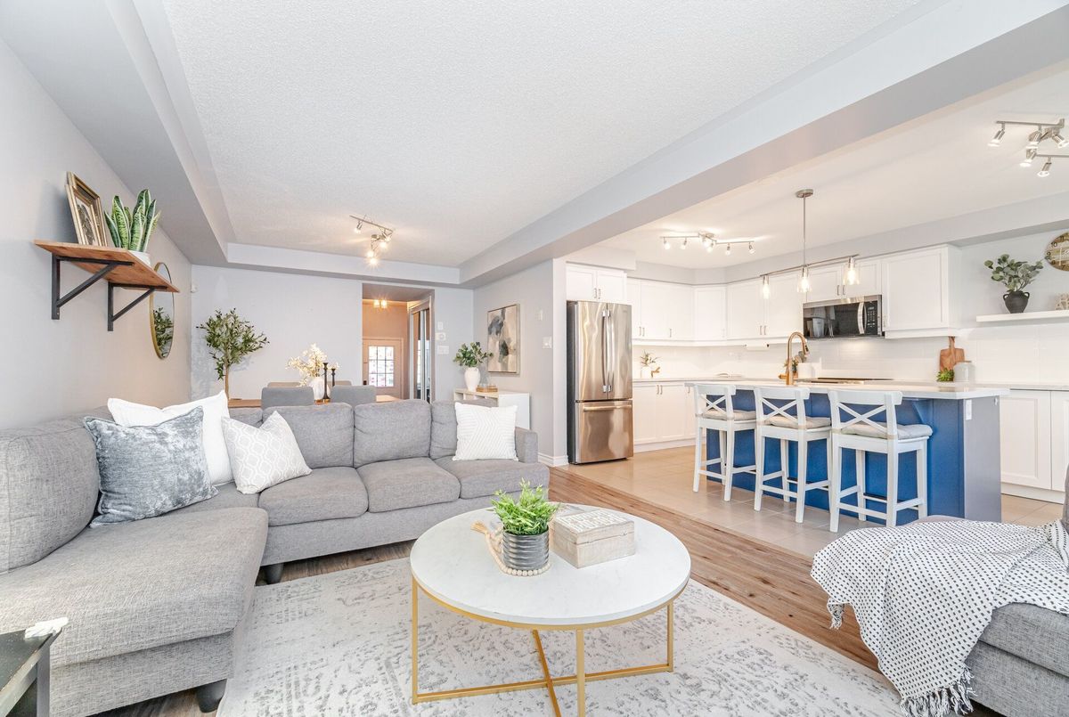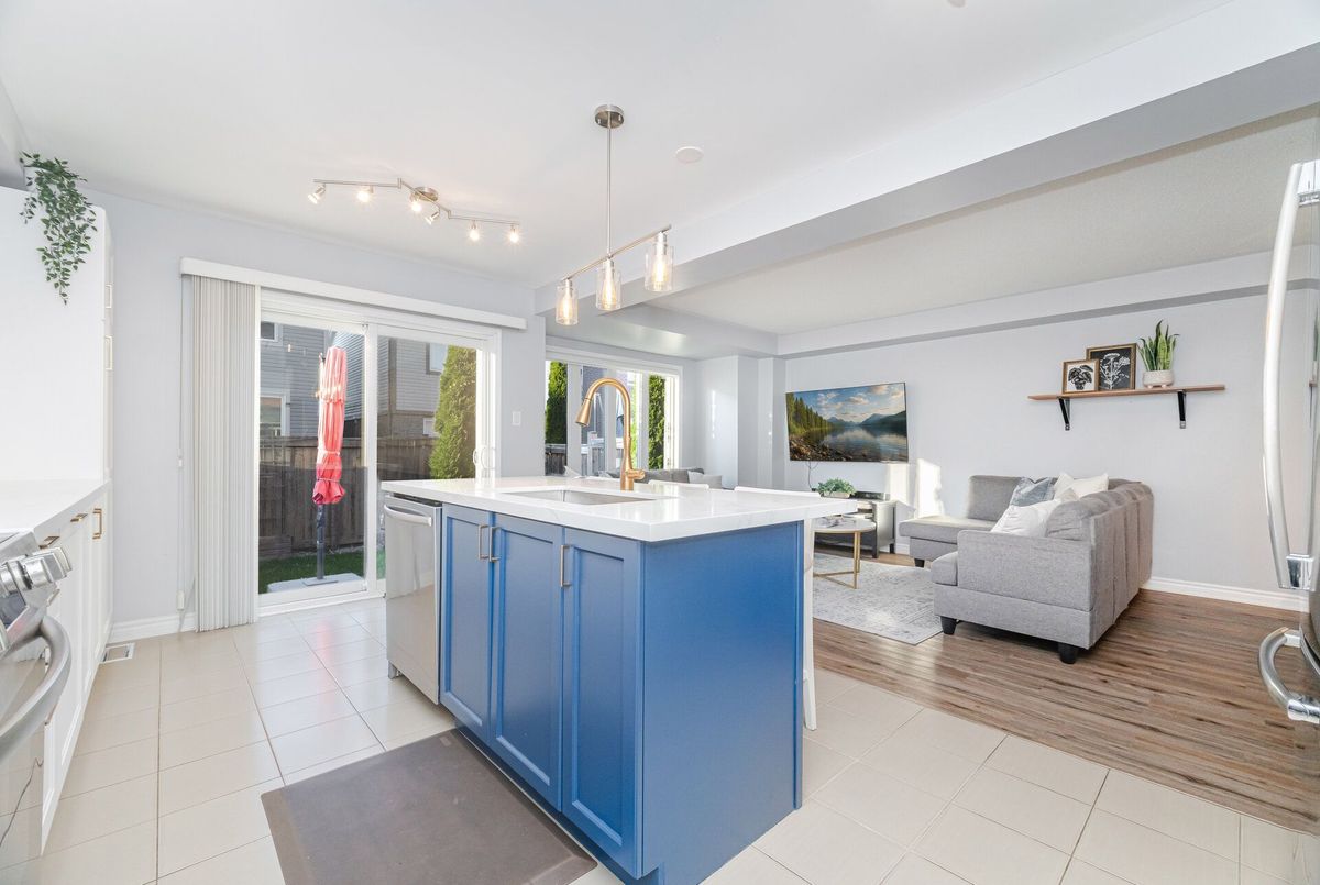 Welcome to this stunning freehold townhome offering nearly 1900 sq. ft. of spacious living, plus an additional 500 sq. ft. in the beautifully finished basement. Perfectly situated steps from three scenic parks, elementary and high schools, both public and catholic and a major shopping centre, this home combines comfort, convenience, and style in one ideal package. The main floor features a bright open layout with durable vinyl flooring, a large living and dining area, perfect for family gatherings and entertaining. There's also a versatile office/den, ideal for working from home. The gorgeous renovated kitchen is the heart of the home, boasting a large centre island, quartz countertops, newer stainless steel appliances and ample cabinetry - a dream for any cook! Upstairs, you'll find three generous bedrooms and two bathrooms, including a huge primary suite with plenty of closet space and a 4 piece ensuite and convenient 2nd level laundry room. The finished basement adds even more living space, offering a cozy recreation room with fireplace, perfect for movie nights, a home gym, or a play area. This home truly has it all - modern finishes, a functional layout, and a fantastic location close to everything you need.