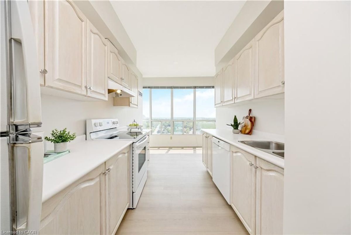 RARE "SKY SUITE" SOUTH FACING CONDO ... it's HIGHER than the PENTHOUSE! Breathtaking unobstructed Escarpment views - see the CN Tower on a clear day! We never see these units offered for sale. This highly sought-after condo has it all: 2 BEDROOMS + DEN, 3 BATHROOMS (Jack n Jill updated to large walk-in shower), HIGH 9' CEILINGS, 2 UNDERGROUND PARKING SPOTS (1 owned, 1 exclusive use), 2 OWNED LOCKERS, UTILITY ROOM in suite and it boasts a whopping 1625 SF ... one of the LARGEST condos in the building. Enjoy the spacious and bright living area w/ massive windows all around to highlight the most spectacular views. The kitchen offers a breakfast area, some updated Samsung and Bosch appliances and a convenient pantry. The combined open concept living and dining room is large enough for extended family celebrations and has loads of massive windows to highlight the stunning views. There are 2 generous bedrooms, one of which is the primary bedroom with walk-in closet and convenient 5-pc ensuite. The den is large enough to be used as a THIRD BEDROOM. Additional features include: $30,000+ in recent upgrades (2025): entire unit has been professionally painted throughout in a neutral tone (Benjamin Moore paint), upgraded lighting, new blinds in bedrooms and new flooring with higher-end sound insulation than required. The unit is also CARPET-FREE, there is in-suite laundry with in-suite walk-in utility room. The building includes a renovated lobby, indoor pool, sauna, fitness area, party room, car wash, community BBQ area and plenty of visitor parking. This is an exceptionally well-run complex in an excellent school district and is centrally located. It is a short walk to restaurants, shops, summer Farmers Market, schools, parks, beautiful Mill Pond and Milton's vibrant downtown. Condo Fees Include Heat, Hydro, Water, Bell Bulk TV & Internet, Parking, Building Insurance and Maintenance of Common Areas. MOVE IN and ENJOY ... Simplify Your Life! *Some photos virtually staged