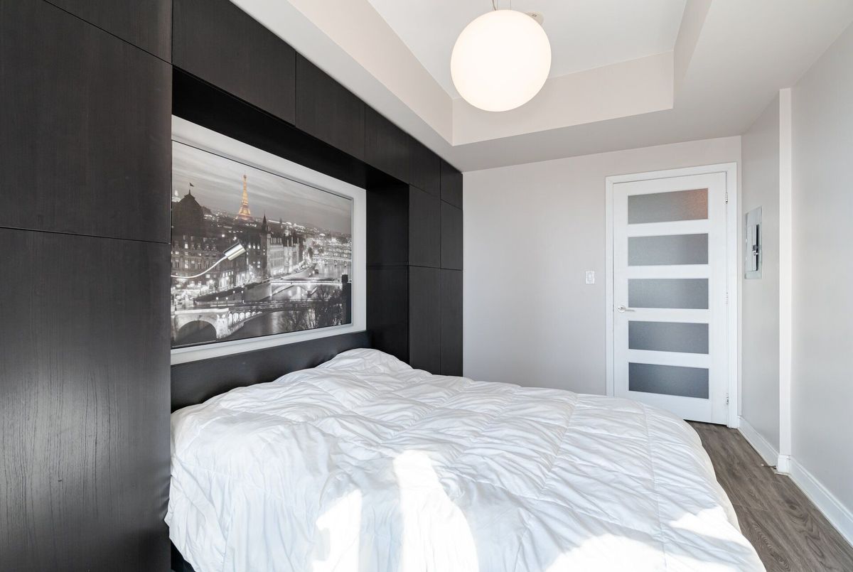 Absolutely Stunning 1-bedroom plus den condo in the heart of Mississauga's premier Absolute Towers. This luxury unit features high-end upgrades and finishes, including wood floors, stainless steel appliances, and contemporary cabinetry. The open-concept layout provides ample living and dining space, while the den offers a versatile area for a home office or additional living space. Floor-to-ceiling windows flood the unit with natural light and showcase breathtaking city and lake views. Building amenities include a 24-hour concierge, state-of-the-art fitness center, indoor pool, and lounge areas. Ideally situated near major transit, shopping, dining, and entertainment, this is the perfect urban oasis. Walking distance to Square 1 and upcoming LRT