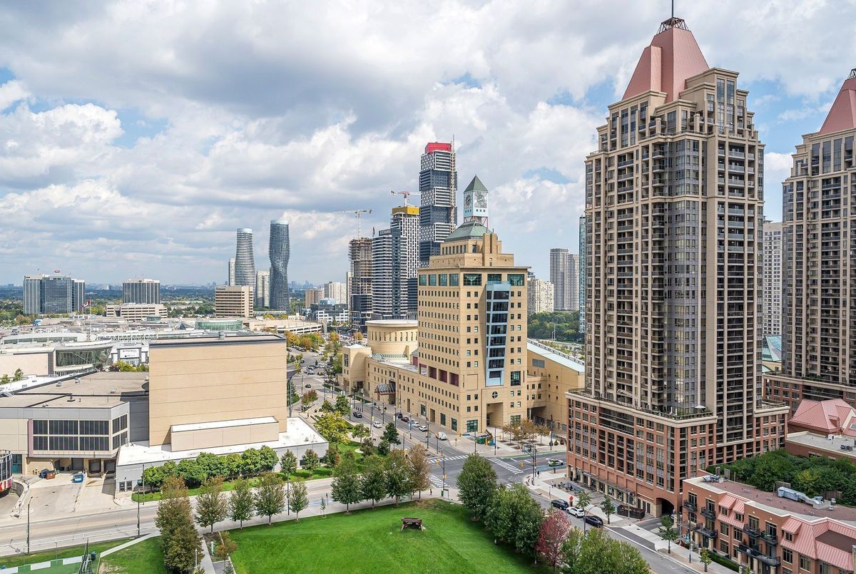 Location, Location, Location! Stunning One Bedroom plus Den (perfect as a second bedroom) with 2 full washrooms, located in the heart of Square One / Mississauga City Centre. This luxury condo features a bright, open-concept layout with 9' ceilings, floor-to-ceiling windows, granite countertops, stainless steel appliances, and a walk-out balcony from the living area. Enjoy a grand lobby with concierge, fully equipped gym, swimming pool, hot tub, steam room, rooftop garden, party room, BBQ area, and more. Steps to Square One Shopping Centre, restaurants, transit, Sheridan College, YMCA, Living Arts Centre, and library-urban living at its best.