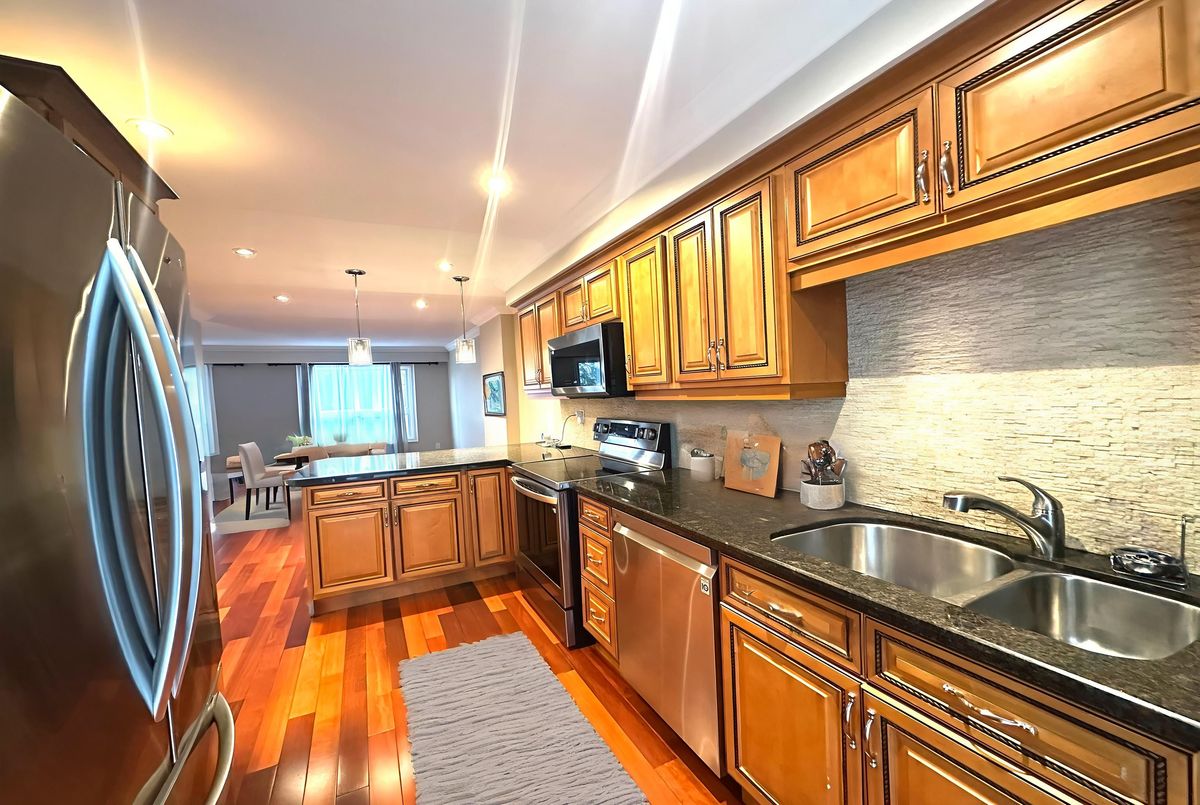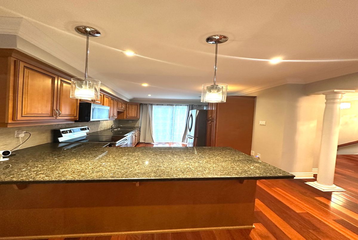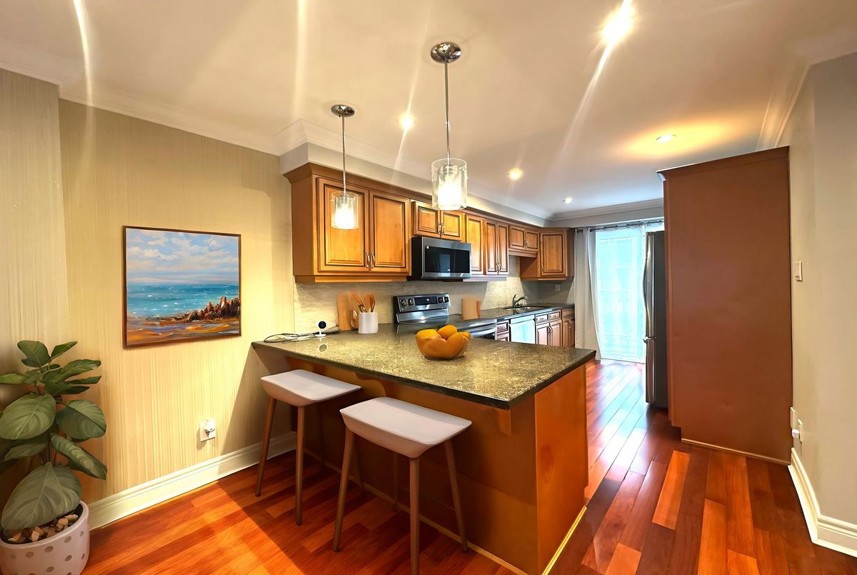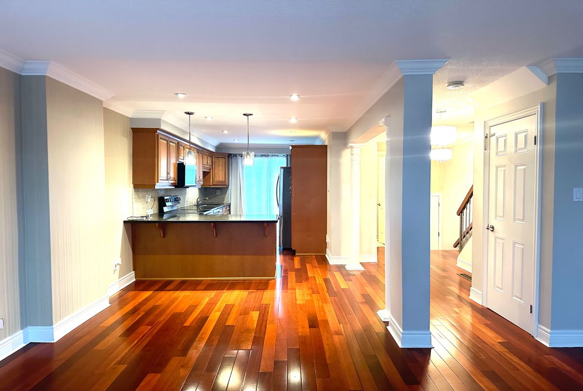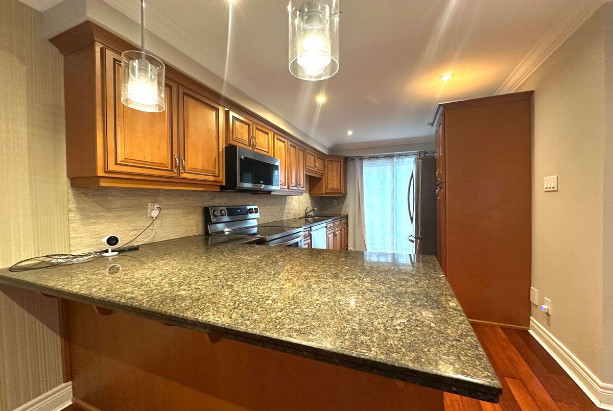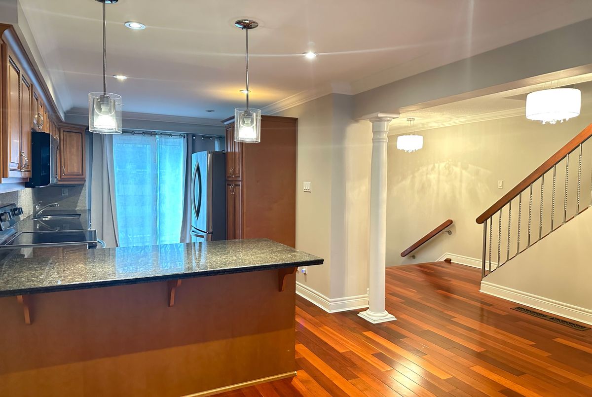 Absolutely gorgeous Townhome! Located at Cul-de-sac, Fully updated from top to bottom. Luxury finishes Living. Features include a luxury kitchen with custom cabinetry and granite countertops, Jatoba hardwood flooring on the main and second floors, Hardwood staircase, 4 bathrooms. Walk-out Finished Basement for added more comfort & Convenience. Located in the best spot in the complex, backing onto a park, playground, with beautiful mature trees. Close to Square One, GO Station, schools, and public transit. *Some Photos Are Virtually Staged.