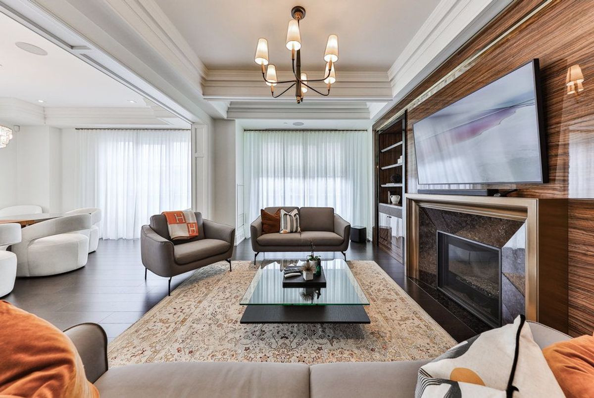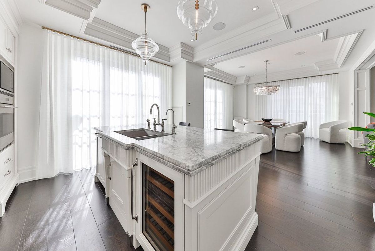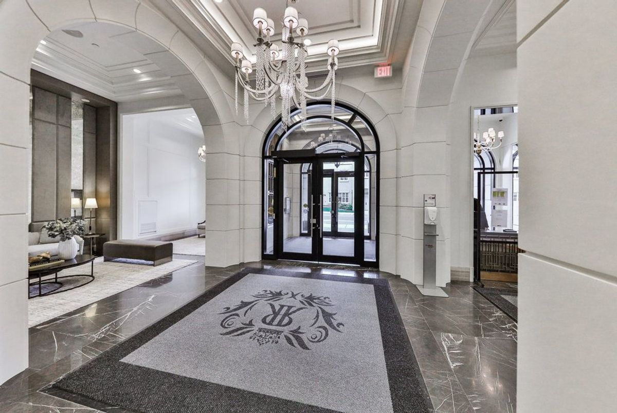 Welcome to The Randall Residences - Oakville's most prestigious address, where luxury meets timeless elegance in the heart of downtown. This exceptional corner suite offers sun-drenched south and west exposure with windows in every principal room. The grand primary retreat features two full ensuites, two walk-in closets, a spacious sleeping area, and walk-out to a private balcony. The open-concept kitchen flows seamlessly into the formal dining and expansive living room with fireplace. A marble-clad foyer and exquisite millwork throughout speak to unmatched quality. The second bedroom offers a private ensuite and custom closets. Enjoy a walk-in laundry room with sink and storage, powder room, two premium parking spots, and locker. Impeccably maintained building with 24/7 concierge, security, and rooftop terrace. Just steps to fine dining, boutiques, and the lake. A rare opportunity to live amongst an exclusive, refined community in Oakville's most coveted location.