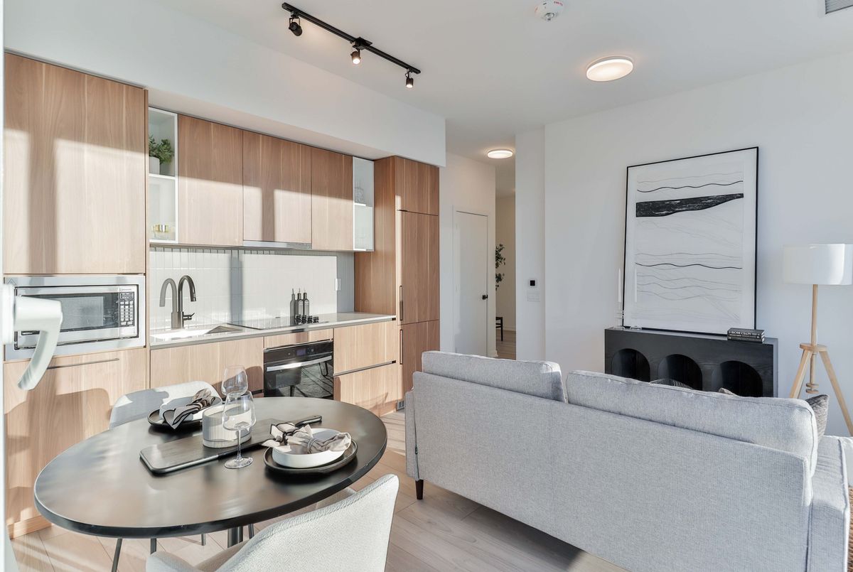 Welcome to this beautifully designed 1-bedroom + media suite! Offering 626 sq. ft. of thoughtfully planned interior space plus a 73 sq. ft. west-facing balcony, this home combines functionality with elevated modern design. Enjoy floor-to-ceiling windows, wide-plank laminate flooring throughout, and a sleek contemporary kitchen featuring integrated, panelled appliances. Residents have access to over 22,000 sq. ft. of world-class amenities, including a rooftop pool, 24-hour concierge, state-of-the-art fitness centre, kids' playroom, co-working lounge, theatre room, BBQ stations, fire pits, and so much more. Nestled within a vibrant, one-of-a-kind master-planned community, you'll be surrounded by over 300,000 sq. ft. of brand new retail and commercial space, a new 8-acre park, and a 90,000+ sq. ft. community centre currently under construction. Enjoy the convenience of multiple TTC stops, easy access to grocery stores, and the lively restaurants and bars along Geary Avenue, all while being moments from Bloor Street, The Junction, The Annex, and Ossington.