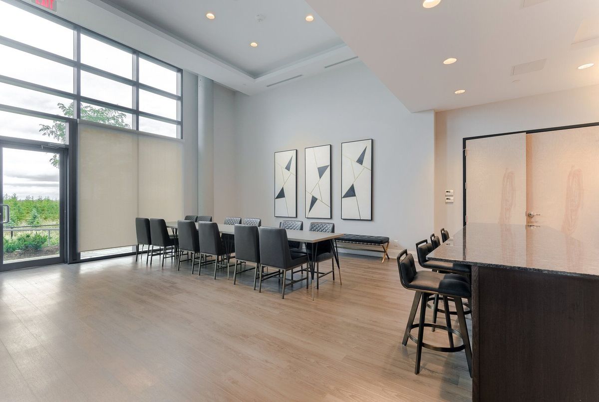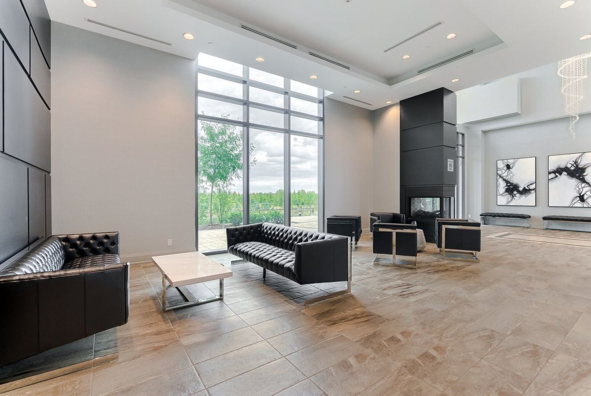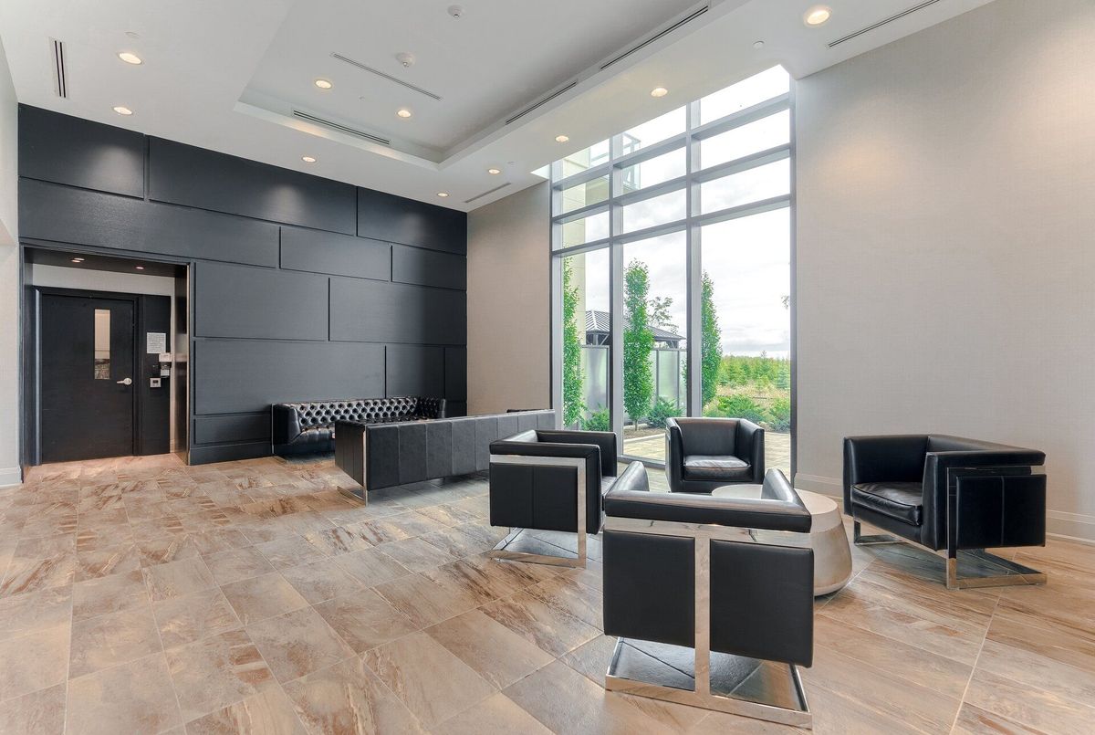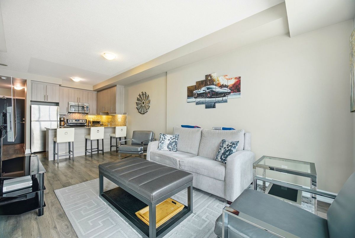 Absolutely stunning condo backing onto the Clairville Conservation Area with 800 acres of protected green space. This contemporary 1 bedroom + den, 2 bathroom residence features a walk-out to a large balcony with unobstructed views. The open-concept living and dining area is enhanced by floor-to-ceiling windows, allowing an abundance of natural light to fill the space. The entertainment-sized kitchen is equipped with stainless steel appliances and quartz countertops, perfect for both everyday living and hosting guests. The spacious primary bedroom offers a large walk-in closet and a 3-piece ensuite with a glass-enclosed shower. A generously sized den can be used as a home office or potential second bedroom, complemented by a main 3-piece bathroom. Residents are treated to an impressive collection of amenities, featuring two fitness centers, two elegant party rooms, two guest suites, and a dedicated pet spa. Set in a highly sought-after location, the building offers quick access to major highways, essential conveniences, and picturesque conservation trails. Additional features include no carpeting throughout, 1 underground parking space with direct access, and 1 storage locker. Don't miss your opportunity to call this beautiful condo home.