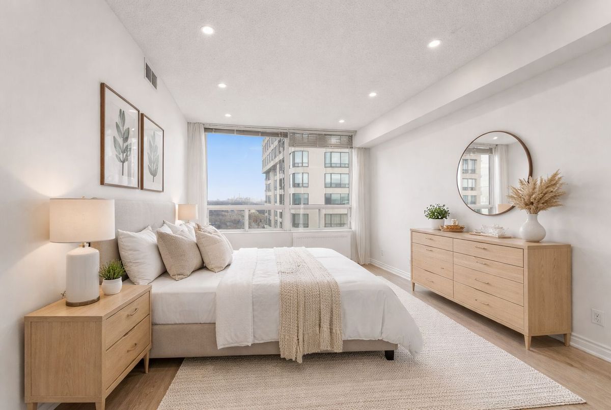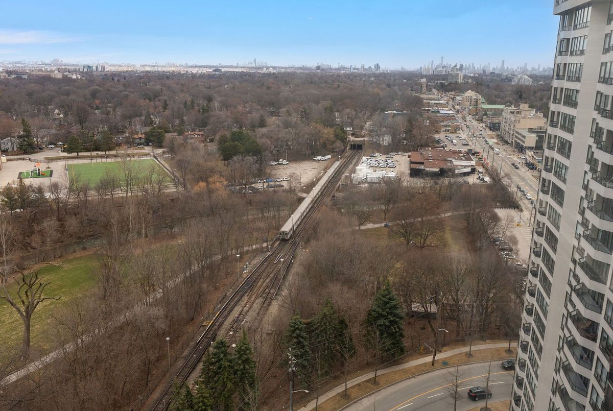 Discover refined living at the prestigious One Aberfoyle Crescent, known as "The Kingsway On-The-Park". This beautiful residence offers an elegant lifestyle highly regarded for its exceptional convenience, comfort and sophistication. Waiting for your personal touch, suite 2112 features 1103 sqft of open-concept living, functional and bright 2 bedroom split layout design, a large primary suite with a 4pc ensuite bath, and panoramic west facing views of the city, Tom Riley Park, and the Lake in the distance. Convenience is out of this world offering direct interior access to Bloor/Islington Subway, Sobeys, Service Ontario, Medical and Dental service, Dry Cleaners, Nail Salon, Goodlife fitness, Restaurants & fast food-Tim Hortons, Real Fruit Bubble Tea, A&W to name a few! No need to step outside during the colder months! This well-managed building was tastefully renovated in 2023 offering outstanding amenities including 24-hour concierge and security, an indoor pool, gym, sauna, whirlpool, tennis court, billiards room, car wash, library, party room, and guest suites. Perfectly positioned in a vibrant community with easy access to downtown Toronto, major highways, the airport, Sherway Gardens, and a diverse array of shops and restaurants. A remarkable opportunity awaits! *Some photos have been virtually staged to illustrate design ideas