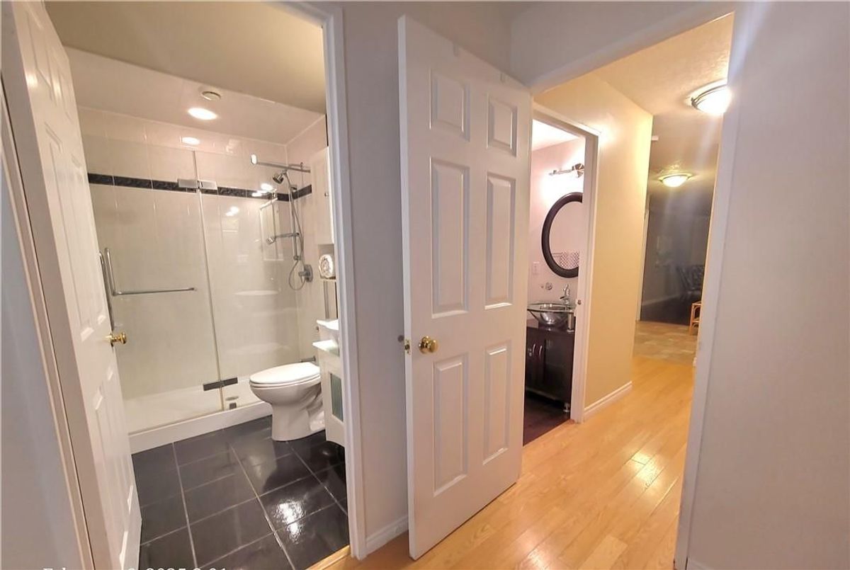 Wow, what a stunning building for those wanting to downsize and enjoy Life! AAA+, Spacious, Carpet-Free Corner Suite in Prime Waterloo Location 2 Bed, 2 Bath, 2 Parking! This stunning 2-bedroom, 2-bathroom corner suite offers 1250 sq. ft. of modern living space, featuring two underground parking spots, a huge covered balcony with southwest views, and a bright, open layout. Sorry but Condo doesn't allow pets however you will be so busy with this prime Waterloo location, you're close to both universities, Uptown Waterloos shops, restaurants, entertainment, and Waterloo Park! Inside, youll find a beautifully updated, carpet-free interior with a well-designed quality kitchen featuring quartz countertops, custom cabinetry with pull-out drawers and glass accents, plus a cozy dinette area. The spacious living and dining area is flooded with natural light from large windows and two patio doors leading to the oversized covered balcony. The primary bedroom includes a walk-in closet and private en-suite, both bathrooms have been stylishly updated with modern finishes. Enjoy the convenience of in-suite laundry and a smart floor plan that maximizes space and privacy. This well-maintained mid-rise building offers fantastic amenities, including a party room, exercise room, visitor parking, and a car wash station. Plus, no long elevator waits! Whether you're looking for a beautiful home or a fantastic investment, this move-in-ready suite has it all!
