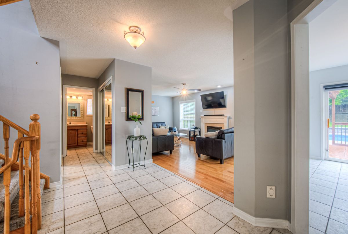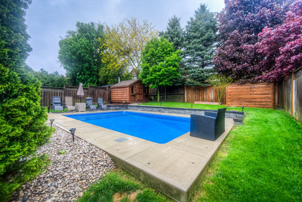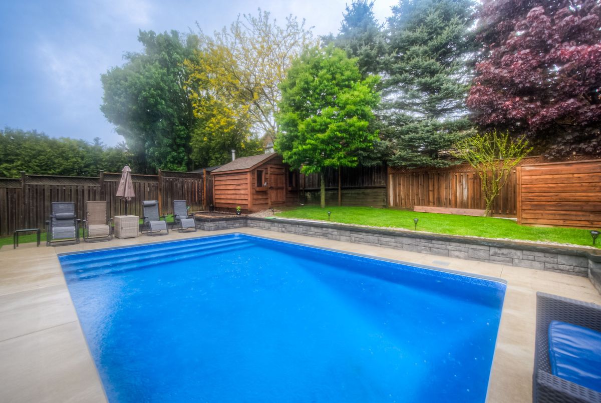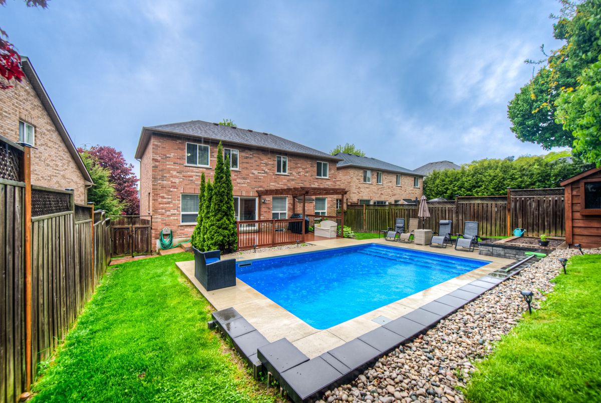 Beautiful custom built home for original owners in 2002 in Parkview-Foxwood, Ancaster by Empire Homes. Lovingly upgraded and updated. All brick, 4 bedroom plus main floor den, 3.5 baths with spectacular inground saltwater pool. (4 years new by Pioneer Pools). Quiet court location amongst other high quality homes. Features beautifully landscaped oversize lot with fully fenced backyard, long 6 car driveway plus 2 car garage with inside entry. All spacious oversize principal rooms are tastefully decorated. Priced way below replacement cost. Don't miss this great Ancaster home. All sizes approximate and irregular. Some of the updates include: Shingles replaced with 35 year premium in 2016, Attic insulation upgraded to R50 in 2014, Gas Hot Water Heater in 2022(owned), Kitchen remodel in 2019, Stainless steel kitchen appliances including gas stove in 2019, High Efficiency furnace and AC new in Nov. 2019, Insulated garage doors and openers in Jan 2020,frontbdoor system replaced, washer and dryer new in 2022, real hardwood floors in bedrooms in 2024, automated irrigation system in 2016 with updates in 2021, solid pine custom garden shed, PIONEER POOLS inground saltwater pool, heater, creepy crawler, heavy duty winter safety cover for winter, and all equipment completed in September 2021. Extra features: excavated cold room under front porch and steps, huge bench window in dining room/living room, long driveway for up to 6 cars and no sidewalks on this side of street so no extra snow shovelling, custom landscaped and fully fenced extra deep 118 foot lot, spacious fenced backyard with, deck, gazebo, concrete patio and still room for 2 large sodded areas and beautiful perennial gardens.