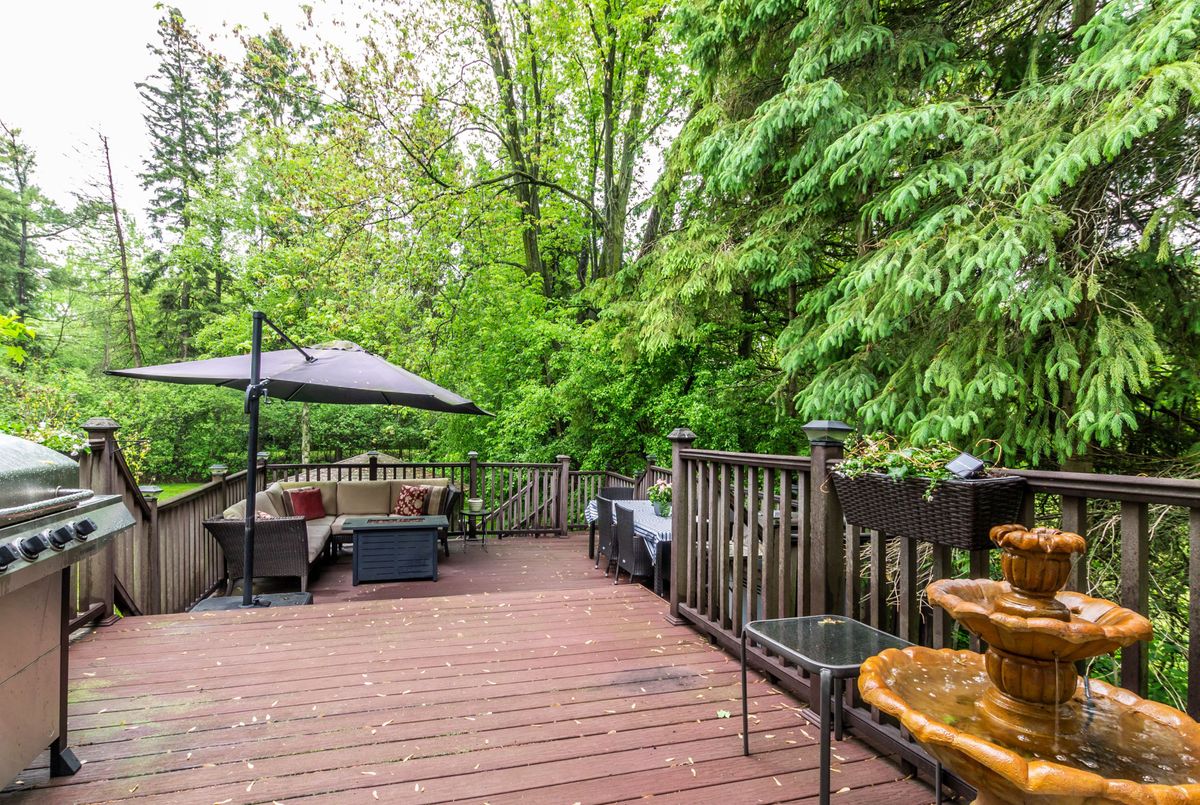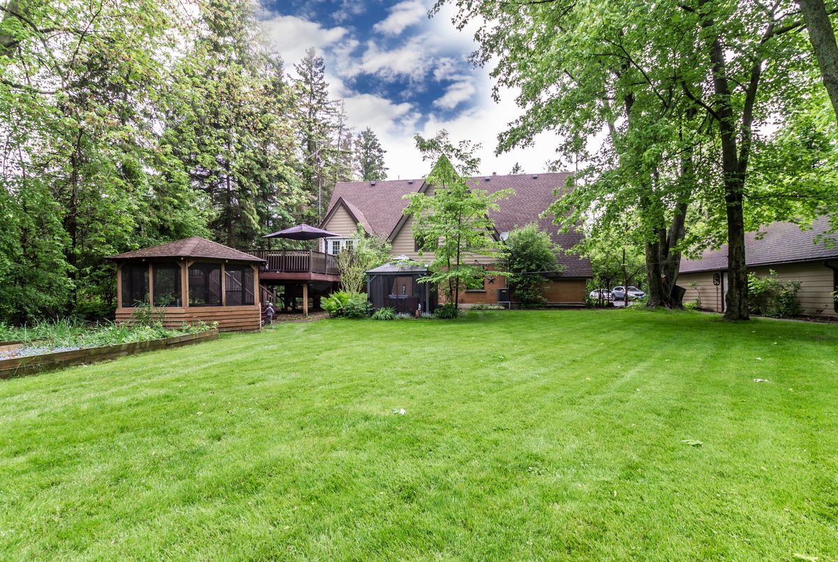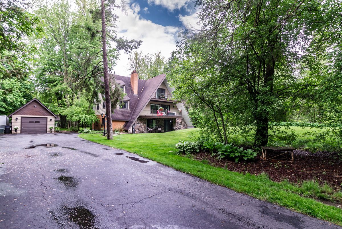 Nestled on a picturesque 0.7-acre lot surrounded by mature trees, this stunning A-frame home is a peaceful escape with the charm of a countryside lodge and the modern touches of a thoughtfully updated retreat. Located just minutes from Puslinch Lake, and a network of conservation trails, its a rare opportunity to enjoy the privacy of rural living with city convenience nearby. The home offers 6 bedrooms and 3 full bathrooms across three above grade levels, including the fully self-contained, 2-bedroom in-law suite on the main level perfect for extended family, guests or a young adult craving their own private space. A custom walnut-encased spiral staircase winds through the heart of the home, connecting each level with architectural flair. Upstairs, cathedral ceilings, wood-burning fireplace and exposed beams give the living areas warmth and character. The updated kitchen features Corian countertops, stainless steel appliances, and overlooks the backyard oasis. Step out onto the two-tiered composite deck with sleek glass panel railings to take in views of vegetable gardens, a horseshoe pit, firepit, gazebos and 2 sheds for additional storage. It is the perfect space for year round entertaining. The expansive detached garage includes a workshop, and driveway offers 8 additional parking spaces to accommodate all of your guests. The second-floor balcony and third-floor terrace offer quiet spaces to sip your morning coffee or wind down with a book. With its welcoming charm and storybook setting, this property captures that cozy, timeless feeling like it belongs in a Hallmark movie.