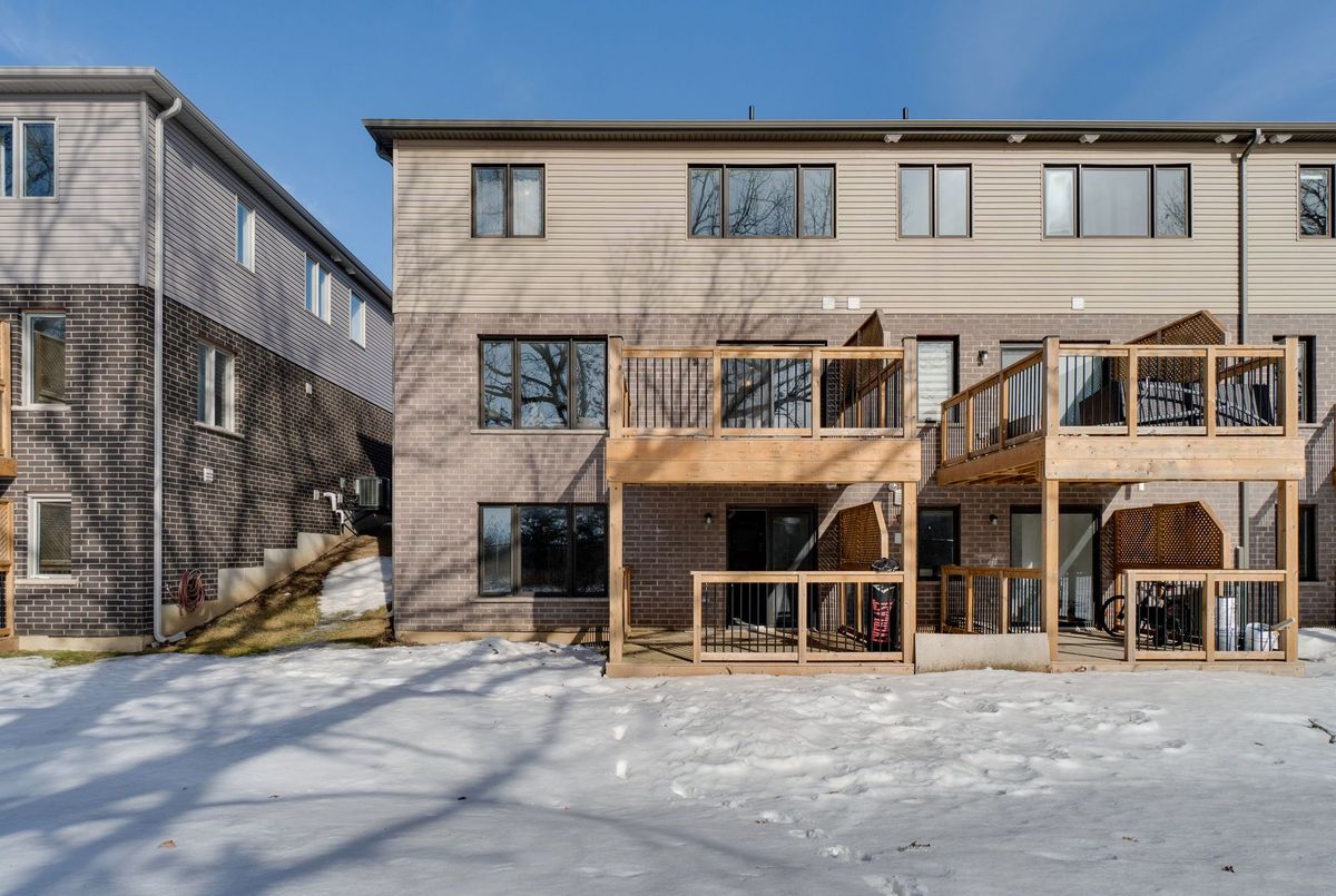 **RARE FIND** No Rear Neighbours + Huge 2,170 sqft Layout + Double Car Garage + Walk-Out Basement w/ 2nd Unit Potential! This beautiful end-unit townhouse, built in 2020, offers 2,170 square feet of modern living space, including 4 spacious bedrooms and 3 full bathrooms. With a unique walk-out basement that is ideal for an in-law suite or rental unit, this home is perfect for a growing family or anyone looking for additional living space. The 925-square-foot basement, complete with a covered deck, offers privacy with no rear neighbors, providing a peaceful and serene environment. The main floor features 8-foot ceilings, creating an open and airy atmosphere that is filled with natural light. The elegant kitchen showcases premium stone countertops, a stylish backsplash, and a large breakfast bar. The separate dining area leads out to a sunny deck, offering stunning views of the surrounding trees - perfect for outdoor entertaining. The sunlit family room offers a relaxing space with beautiful views, making it an ideal spot to unwind after a long day. The primary bedroom is a true retreat, complete with a 3-piece ensuite bathroom with a walk-in shower and a large walk-in closet. The upper floor also features a convenient laundry room with a separate tub. Additional highlights include a double car garage, upgraded kitchen cabinets, pot lights, and a main floor office - ideal for working from home. This thoughtfully designed townhouse is located in a vibrant neighborhood with easy access to schools, parks, grocery stores, the LCBO, and other amenities. It's just minutes from the Gaslight District, offering a variety of great restaurants, the Hamilton Theatre, the Grand River, the Pedestrian Bridge, coffee shops, Reids Chocolates, the Farmers Market, and more. With everything you need just around the corner, this home offers the perfect balance of comfort, convenience, and modern living.