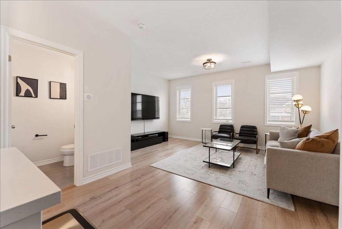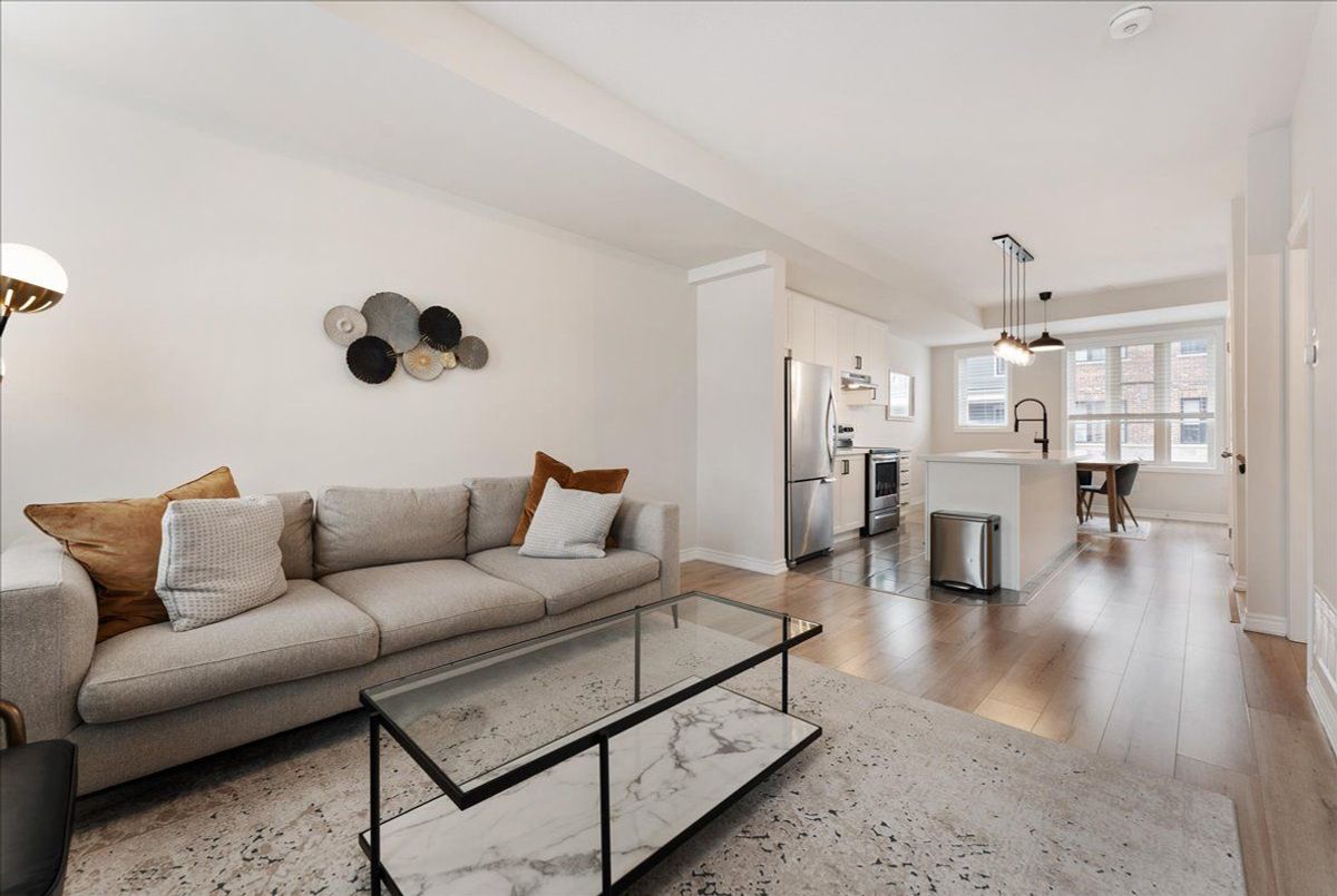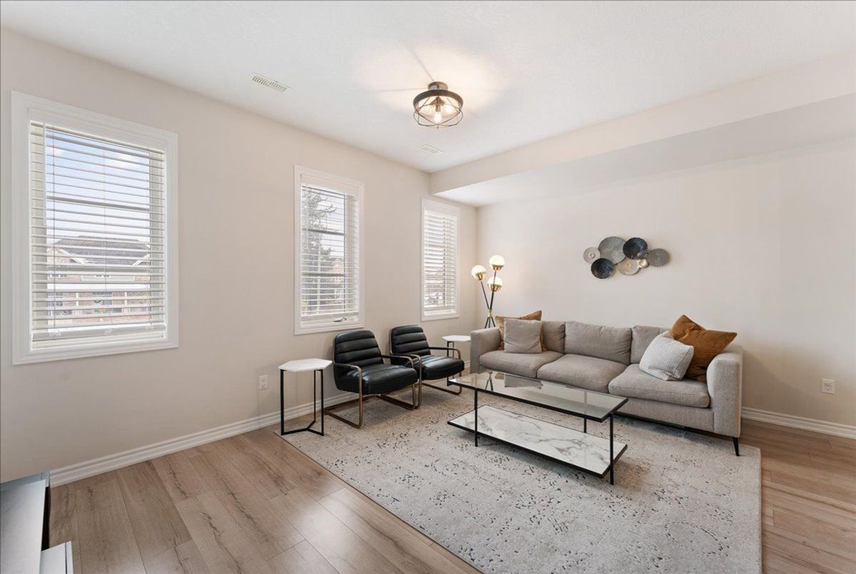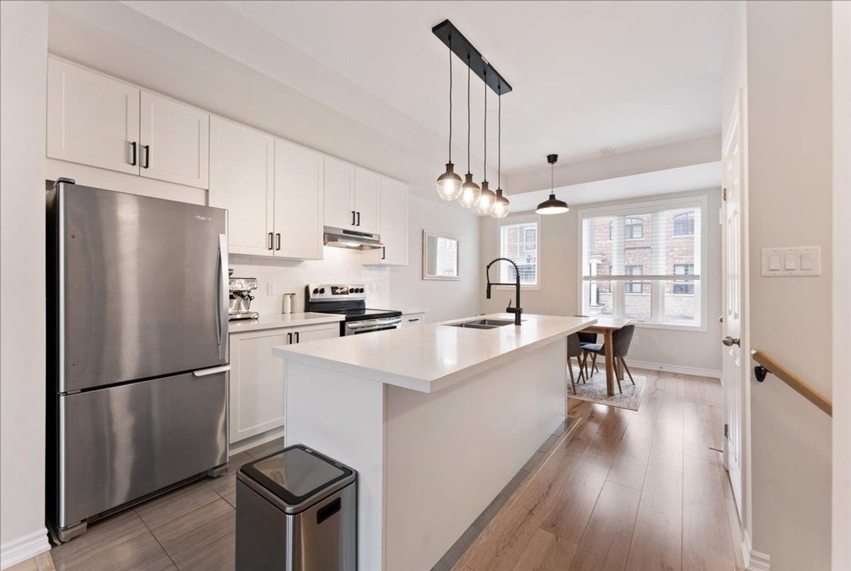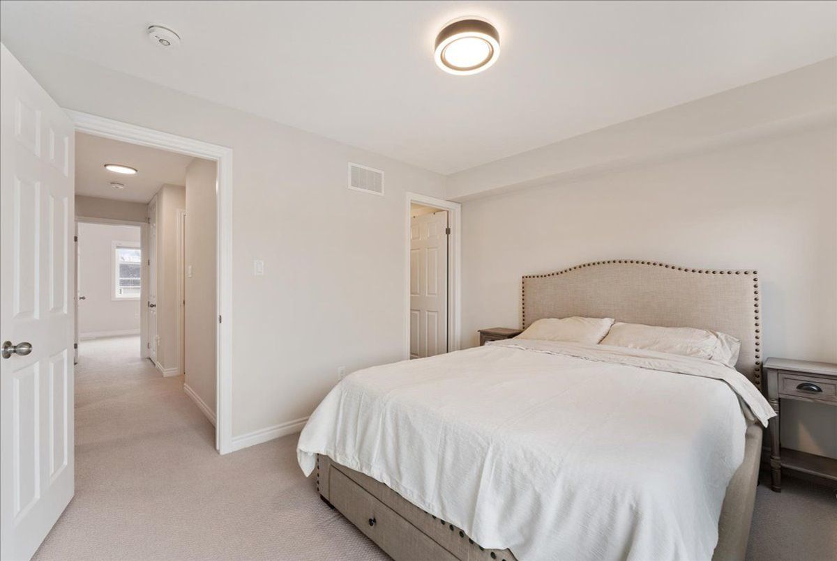 Immaculate and an absolute show stopper 2 Beds and 3 Baths townhouse in a great location of promising Waterdown. **2018 Built. 1496 Square Feet**. Comes with a large **private rooftop terrace (Covered and open) offering unobstructive northerly 180 degree view**. Main floor boats **9Ft. Ceiling**. As you enter, on the left you'll find the elegant and grand square shaped living room having 3 tall windows offering an open southerly view. The gorgeous formal dining room with large windows sits on the opposite side of the living room. In between is located an elegant**open concept gourmet kitchen** that boasts quartz counters, Centre Island/breakfast bar, backsplash, pendant light, stainless steel appliances, tons of cabinets. This main floor also is complemented by a large Pantry and a powder room. The **two beautiful and large bedrooms** are located on the third level. The master bed has its **own 4 pc ensuite**, walk-in closet and also opens to a **Juliette balcony**. The other room is also stunning with a walk-in closet and 3 windows offering beautiful southerly view. Laundry is also located besides the bedrooms. Isn't it a great feature? Just to add one more mega star to its shoulder, this gem also comes with a large private rooftop oasis having both ***covered and open terrace*** offering an unobstructed northerly view. Isn't it nice? This terrace is a real great place for chilling, barbequing, having tea/coffee/drink and entertaining your friends in rain or shine. The whole house has tons of windows opening to both north and south side. It's painted in a beautiful neutral color and shows extremely well. Upgraded blinds and light fixtures. Your clients will really like it. Great complex in an excellent location close to schools, walmart, Sobey's, Harvey's, Swiss Chalet, TD Bank, Shoppers, Pizza Pizza, and much more. 3 minutes to HWY 6, seven minutes to 403, One minute drive to Rockcliffe Trail. Shows A+++++.