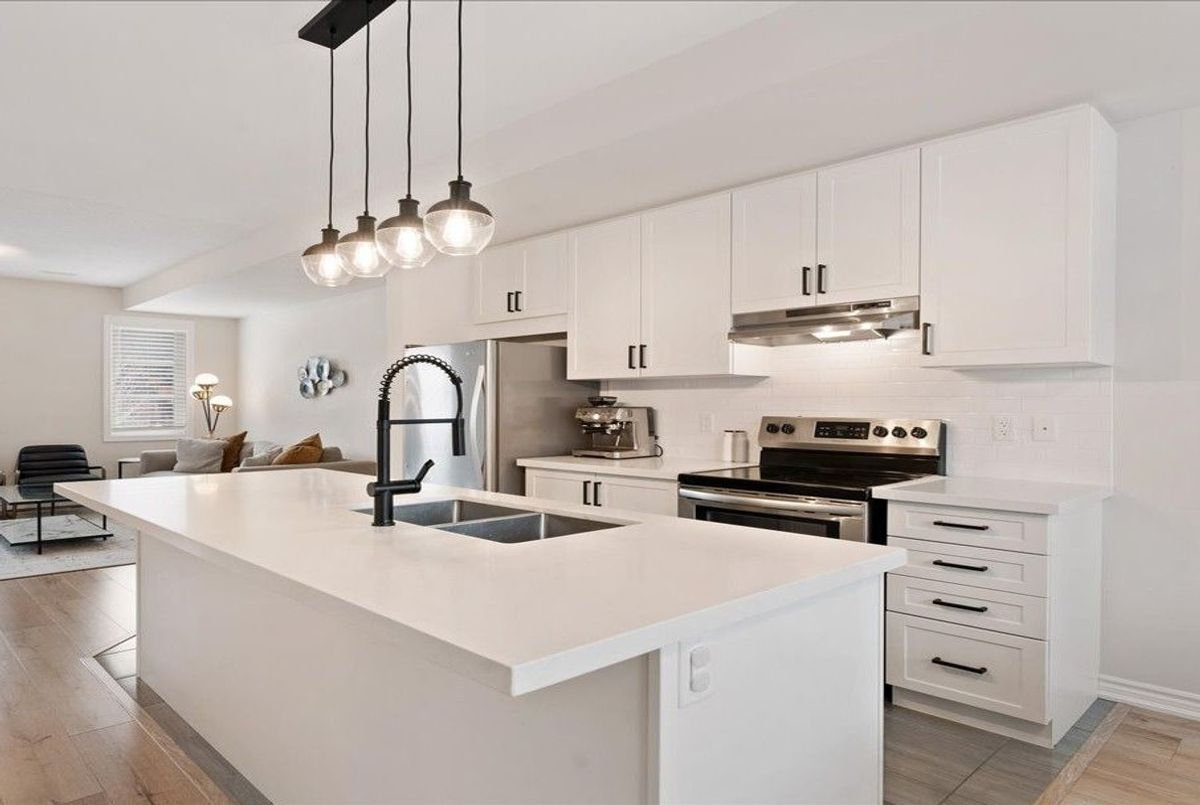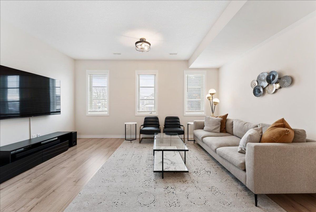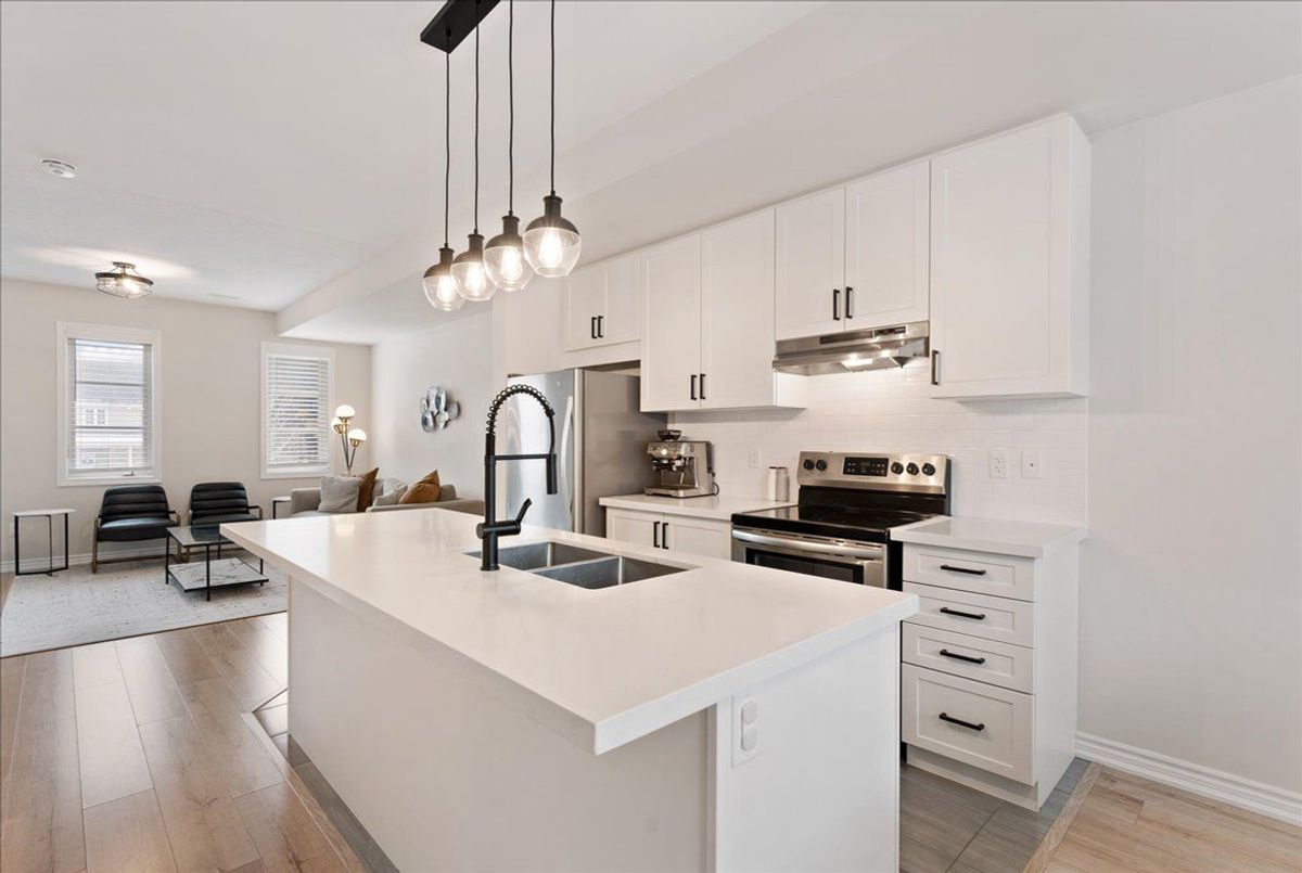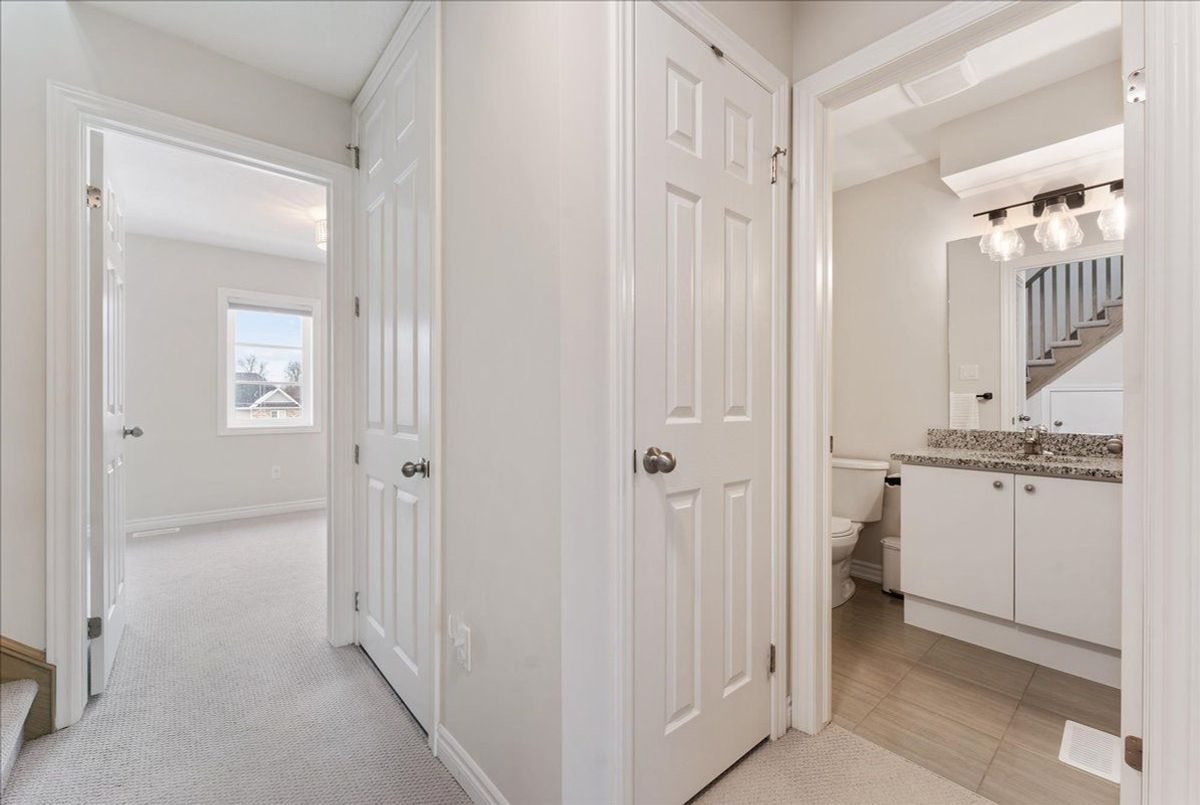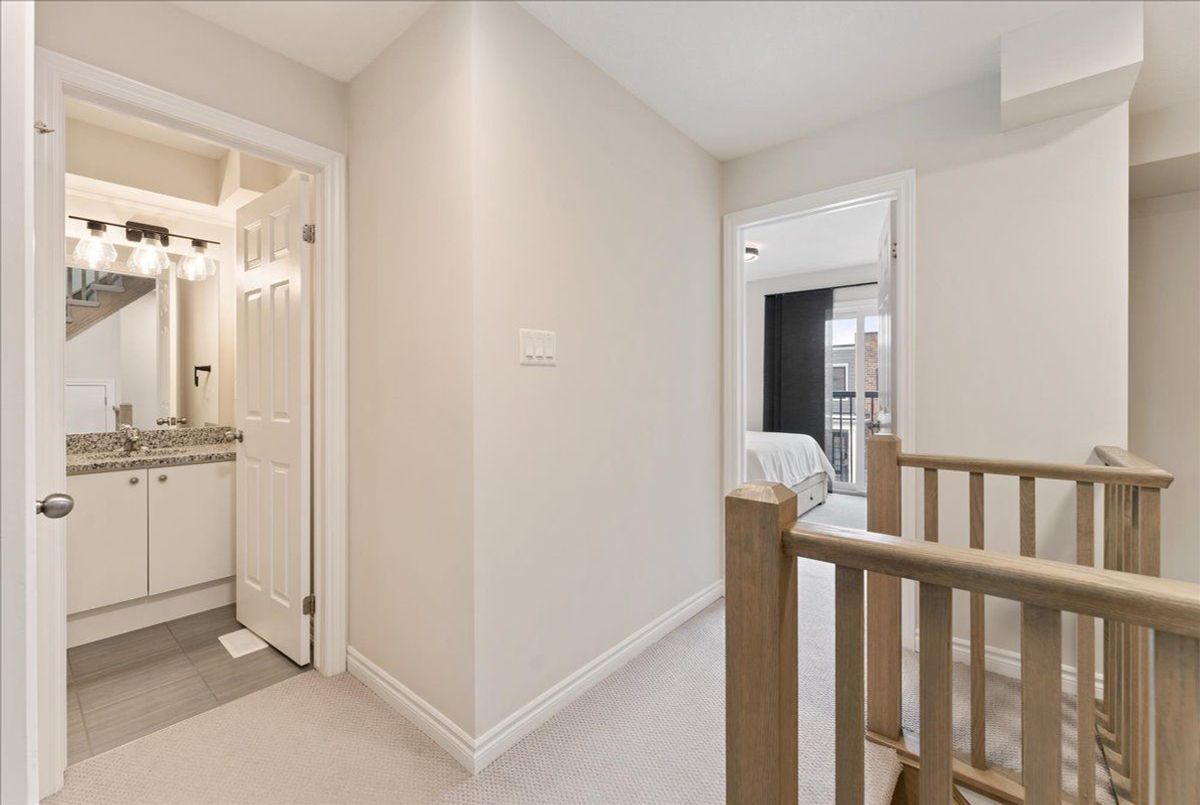 Immaculate and an absolute show stopper 2 Beds and 3 Baths townhouse in a great location of promising Waterdown. **2018 Built. 1496 Square Feet**. Comes with a large **private rooftop terrace (Covered and open) offering unobstructive northerly 180 degree view**. Main floor boats **9Ft. Ceiling**. As you enter, on the left you'll find the elegant and grand square shaped living room having 3 tall windows offering an open southerly view. The gorgeous formal dining room with large windows sits on the opposite side of the living room. In between is located an elegant**open concept gourmet kitchen** that boasts quartz counters, Centre Island/breakfast bar, backsplash, pendant light, stainless steel appliances, tons of cabinets. This main floor also is complemented by a large Pantry and a powder room. The **two beautiful and large bedrooms** are located on the third level. The master bed has its **own 4 pc ensuite**, walk-in closet and also opens to a **Juliette balcony**. The other room is also stunning with a walk-in closet and 3 windows offering beautiful southerly view. Laundry is also located besides the bedrooms. Isn't it a great feature? Just to add one more mega star to its shoulder, this gem also comes with a large private rooftop oasis having both ***covered and open terrace*** offering an unobstructed northerly view. Isn't it nice? This terrace is a real great place for chilling, barbequing, having tea/coffee/drink and entertaining your friends in rain or shine. The whole house has tons of windows opening to both north and south side. It's painted in a beautiful neutral color and shows extremely well. Upgraded blinds and light fixtures. Your clients will really like it. Great complex in an excellent location close to schools, walmart, Sobey's, Harvey's, Swiss Chalet, TD Bank, Shoppers, Pizza Pizza, and much more. 3 minutes to HWY 6, seven minutes to 403, One minute drive to Rockcliffe Trail. Shows A+++++.