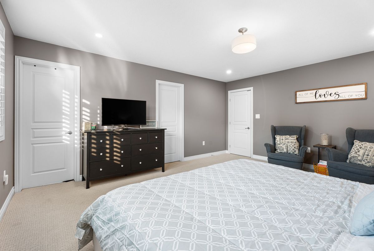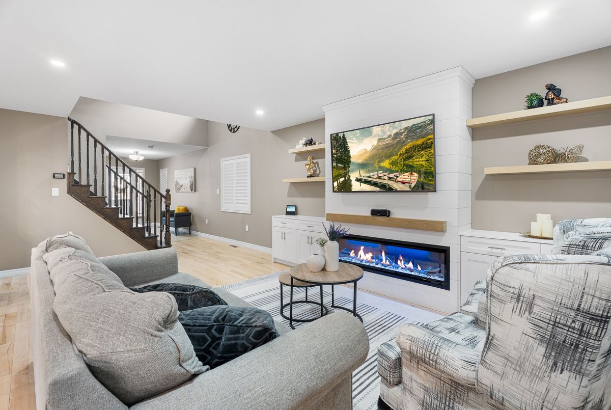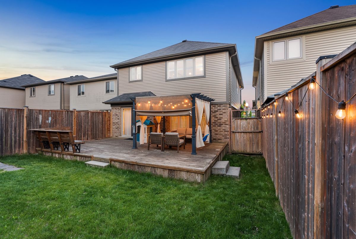 Welcome to 22 Creek Ridge Street a beautifully upgraded, move-in-ready family home tucked away on a quiet, family-friendly street in the highly desirable Doon South neighborhood of Kitchener. From the moment you step inside the spacious, sunlit foyer, you'll feel the warmth and charm this home offers. The open-concept main floor is completely carpet-free and ideal for everyday living or entertaining, featuring a modern kitchen with stainless steel appliances, gas line hookup behind stove, a brand new dishwasher (2025), stylish light fixtures, and a large island perfect for casual meals or catching up with family. Relax in the cozy family room, highlighted by a stunning new fireplace and accent wall (2024), or step outside to your private backyard oasis featuring a pergola, gas line hookup on the deck for your BBQ, and a brand new deck (2017) perfect for summer cookouts, morning coffee, or entertaining guests. The storage shed adds extra space for your outdoor tools and gear. Upstairs, you'll find a spacious primary suite with a huge walk-in closet and private ensuite, along with two more generous bedrooms, a full 4-piece bath, and a convenient upper-level laundry room with extended storage underneath to keep everything organized. The fully finished basement expands your living space with a large rec room, fourth bedroom, and third full bathroom ideal for guests, a home office, or cozy movie nights. Thoughtful upgrades include a driveway extension (2021), California shutters throughout (2019), new furnace and whole-home humidifier (2024), new A/C unit (2023), reverse osmosis system (2023), and owned water softener. Located just a short walk to J.W. Gerth Public School, YMCA daycare, scenic trails, and with quick access to Highway 401, this is the home your family has been waiting for. Dont miss your opportunity to live in one of Kitchener's most sought-after neighborhoods.