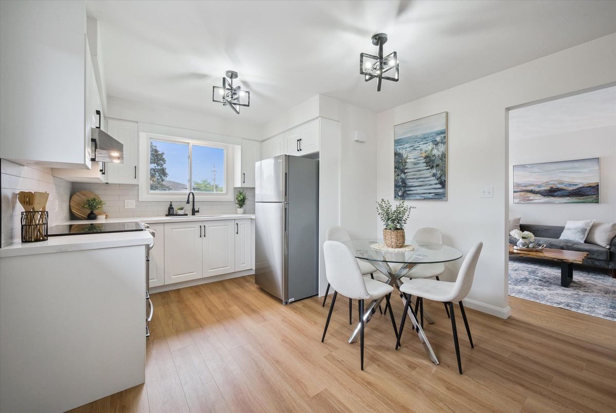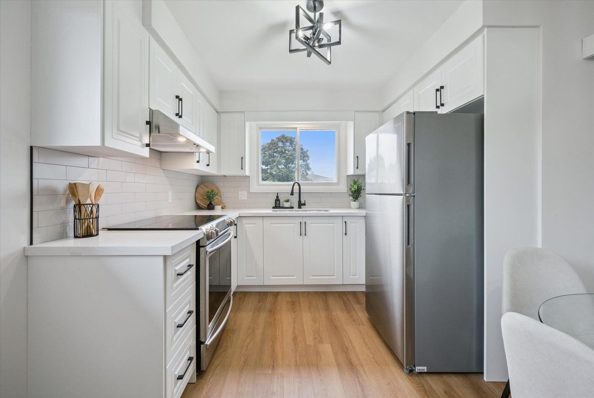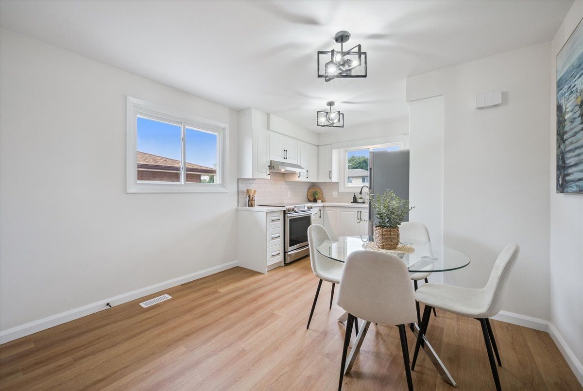 A well-maintained home nestled in a quiet, established pocket of Cambridge. This three-bedroom property blends classic charm with many recent updates. Refinished hardwood flooring flows through the living room and bedrooms, complemented by updated lighting and a fresh, cohesive paint palette. The kitchen has been fully redone with modern cabinetry and finishes, and the bathroom has been updated with a clean, timeless style. Downstairs, the partially finished basement includes a rough-in for a bathroom and laundry, along with a separate side entrance offering flexibility for multigenerational living or future income potential. Additional updates include vinyl flooring, (2025), new soffits (2024), a 100-amp electrical panel with ESA certificate, shingles (2021), central air (June 2020), and furnace (2005). Located within the school zones for Moffat Creek Public School, St. Margaret Catholic Elementary, Glenview Park Secondary, and Monsignor Doyle Catholic Secondary. A solid home with room to grow and a neighbourhood that makes it easy to stay.