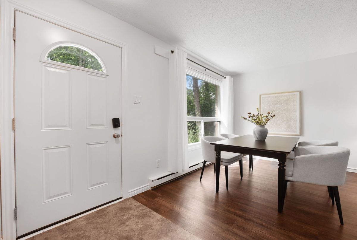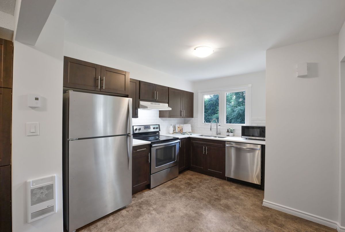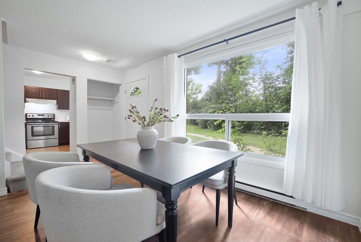 This charming and RARE 3-Bedroom, 2-bathroom condo townhouse offers the ideal blend of privacy, space, and natural beauty. As a rare END-UNIT with a separate entrance, this home is surrounded by lush greenery and fronts onto a tranquil wooded area perfect for morning coffee or evening strolls. Inside, you'll find a bright and modern layout featuring large windows that fill the space with natural light, a stylish kitchen with stainless steel appliances and sleek dark cabinetry, and warm, updated flooring throughout. The open-concept living and dining areas are ideal for both entertaining and everyday comfort.Upstairs, a RARE three spacious bedrooms offer peaceful views and generous closet space. With two full bathrooms, tasteful finishes, and a clean, contemporary design, this home checks every box. Whether you're a first-time buyer, young family, or investor looking for a quiet setting with easy condo living this one is not to be missed! EXCELLENT LOCATION: 5 Minutes to University of Waterloo, 5 Mins to Laurier University, Steps away from Light rail transit access to University and other location, bike paths, Waterloo Park and 7 Minutes from Conestoga Mall, and so much more! You cannot beat the convenience of this location!