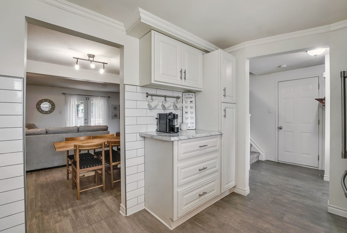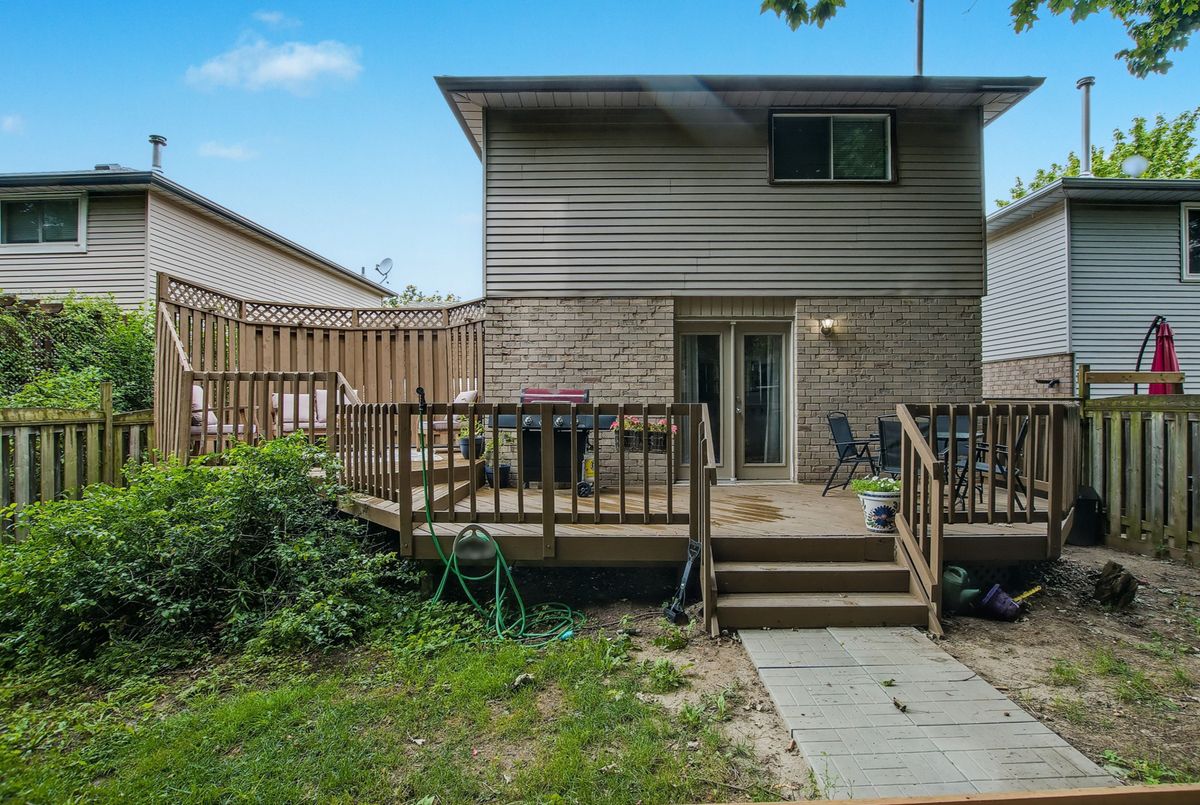 This well maintained and move-in ready home is located in a quiet, family-friendly neighbourhood. The main level features a practical open layout with a kitchen, dining area, and living room with garden doors providing direct access to the backyard which is fully fenced with a two-tier deck, ideal for entertaining, relaxing and giving kids and pets a safe place to play. Upstairs youll find three bedrooms and a full bathroom. The finished basement includes a rec room and a convenient 2 piece bathroom. Roof was just re-shingled in July 2025, allowing for piece of mind for many years to come. Included are 5 appliances and all window coverings. Attached garage with inside entry, garage door opener and a double driveway for extra parking. Great home in an established area close to schools, parks an everyday amenities.