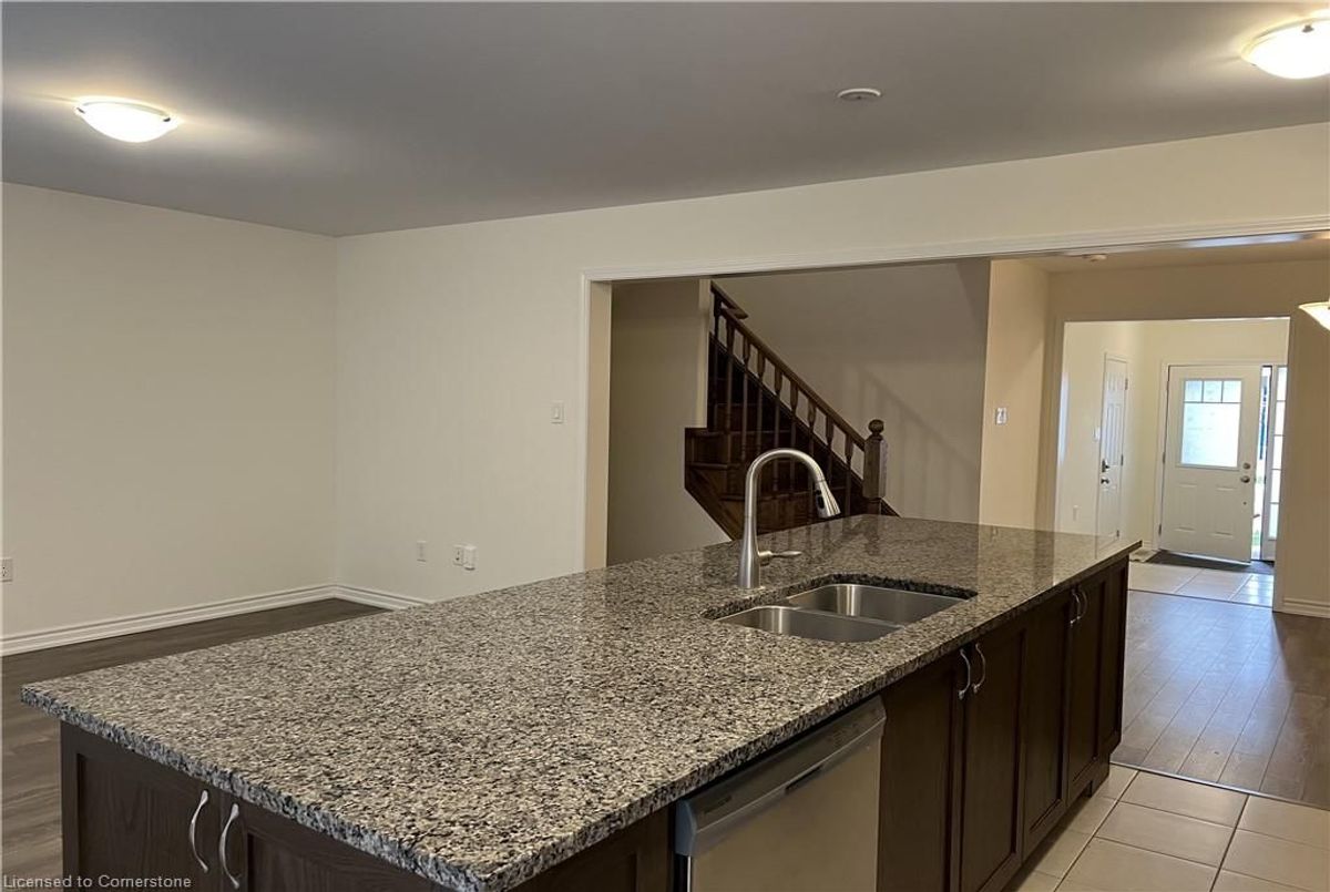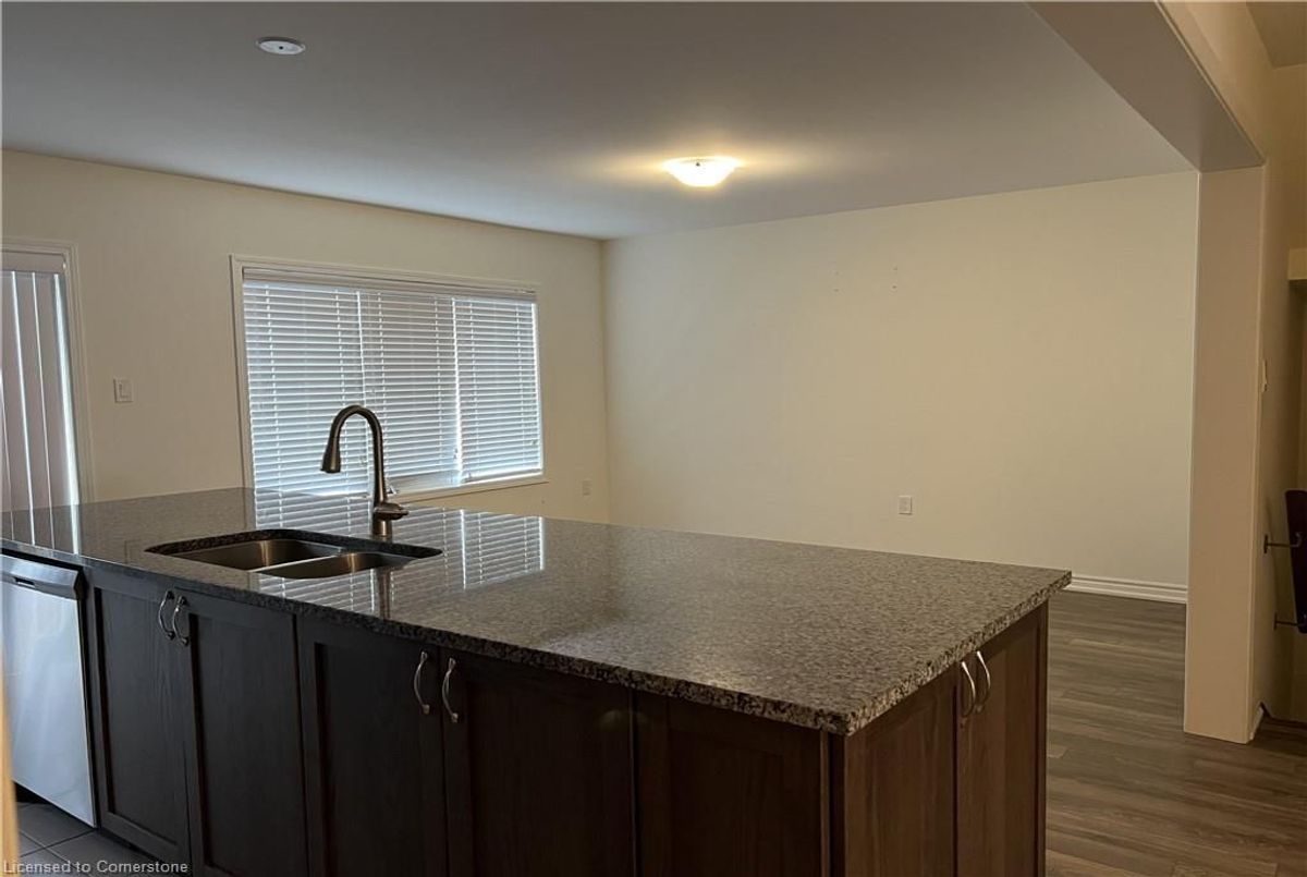 Welcome to 226 Waterbrook Lane, Kitchener for Lease-Spacious townhome with single Garage Nestled in the Quiet and Great Doon-Wyldwoods Neighborhood comes with 3 Bedroom and 2 full washrooms, spacious main floor having Big and bright Living room with laminate floors, open concept Kitchen with lots of cabinets, granite countertop and huge center island, charming backsplash, and sliders to deck with panoramic view of green space with an extra deep lot and many more. This property Conveniently located near schools, parks, walking trails, and with easy access to Highway 401 and Costco. Basement is not finished and Tenant can use the basement. Don't wait, get your appointment today to lease this awesome home.