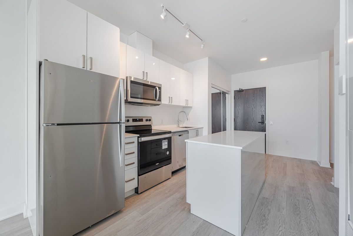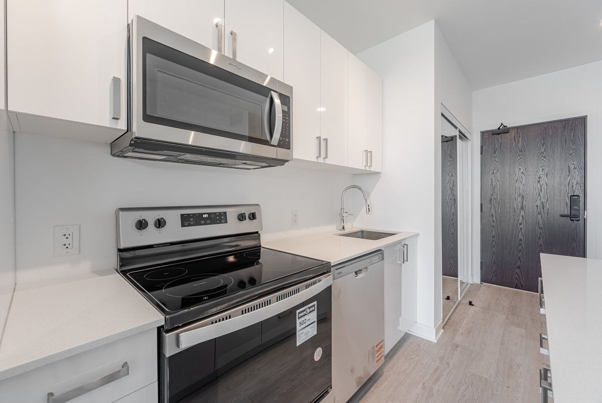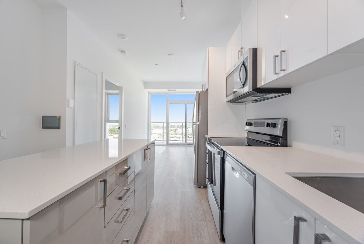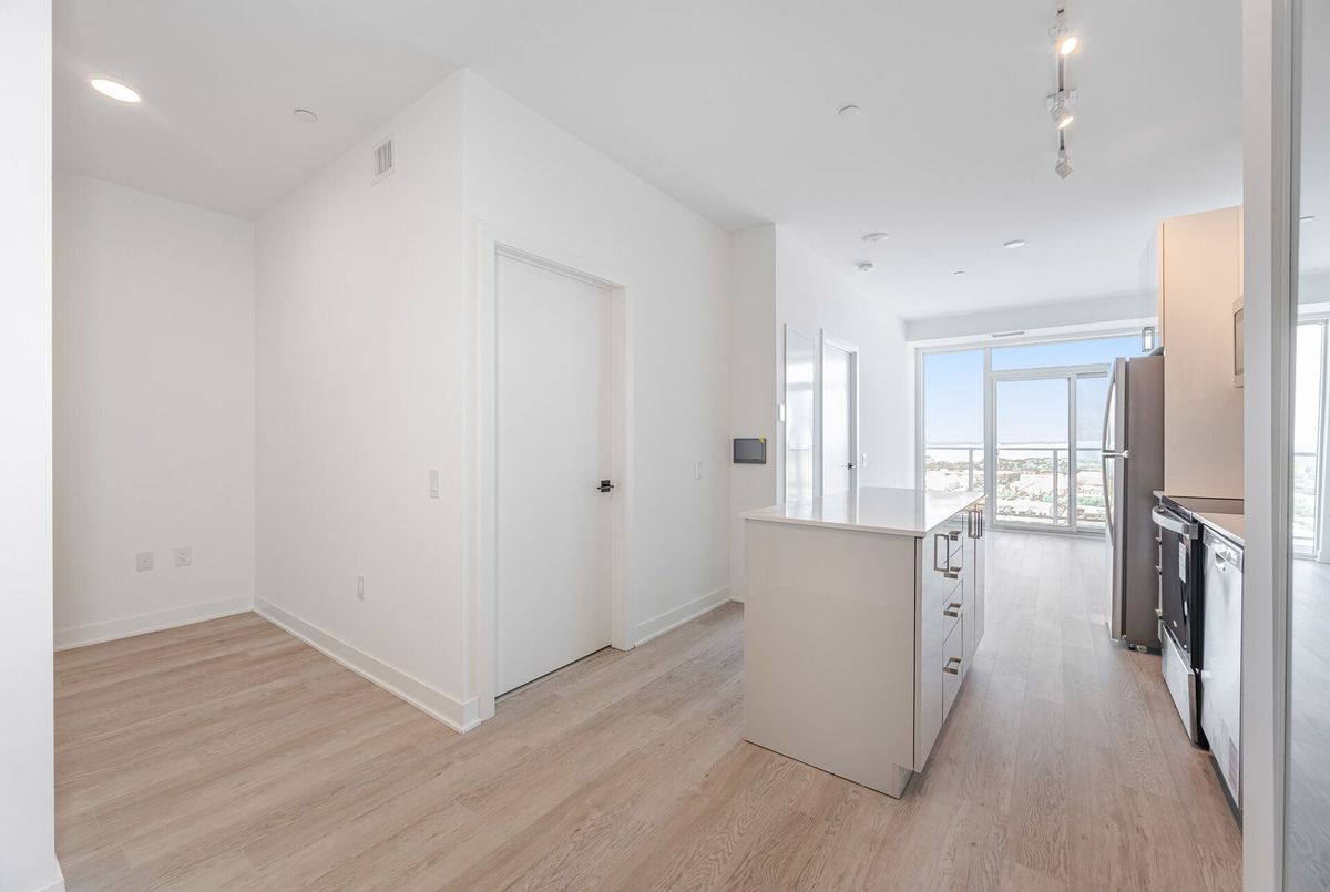 Unobstructed Lake Ontario View!!!!Oppurtunity to lease this brand new, never lived in 1 Bedroom + Den condo in the newest LJM towers. With a blend of Comfort & Convenience this functional apartment welcomes you with neutral finishes and laminate floorings throuhghout. Inviting kitchen features central island and stainless steel appliances with built-in microwave. Open concept living room leads to lake facing balcony to wind down your ady. Bright and spacious primary bedroom offers ample natural light and privacy with extra den that is ideal for a home office, guest room, or kids space. Full 4-piece bath & in-suite laundry, Premium building amenities, including keyless entry, a state-of-the-art fitness centre, outdoor BBQ area, elegant party room, and secure bicycle storage. Located in a prime transit-friendly area, with quick access to the QEW, GO Transit, shopping, dining, scenic trails, and green spaces.