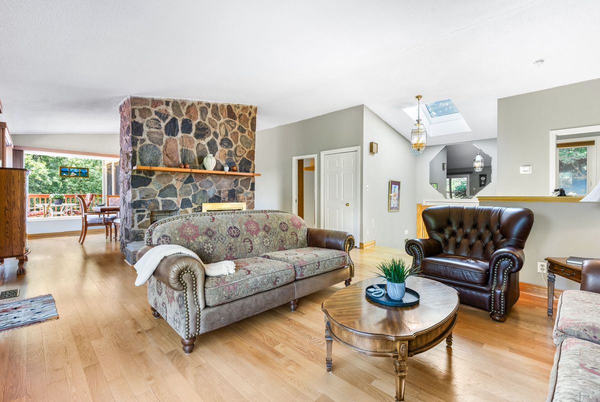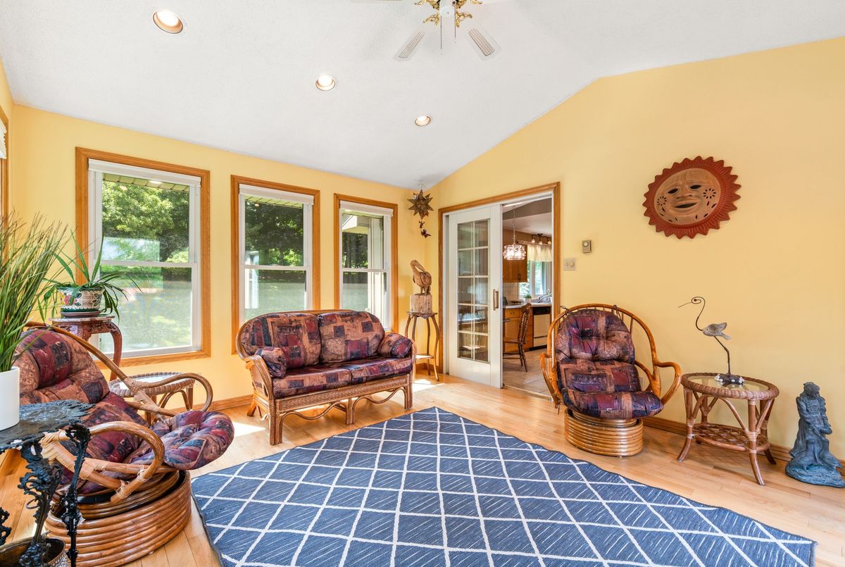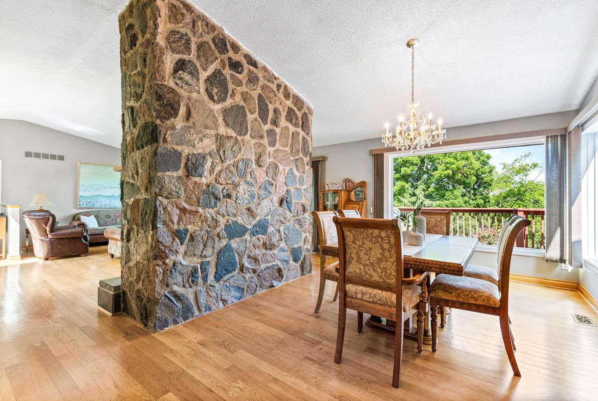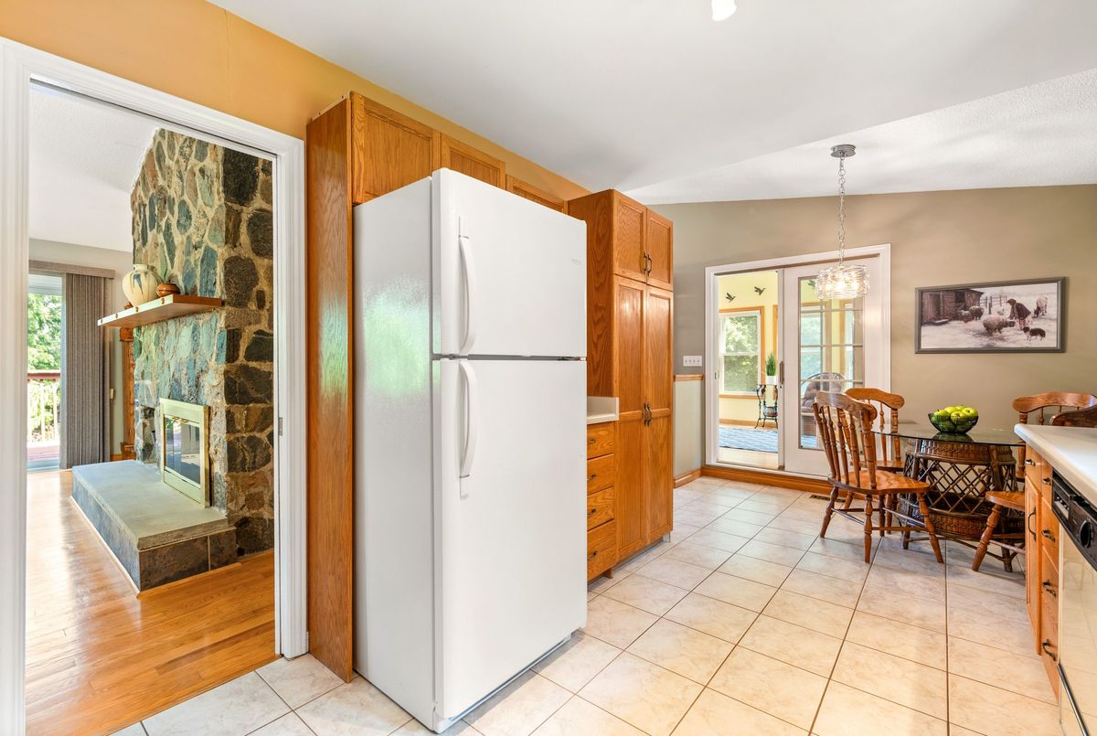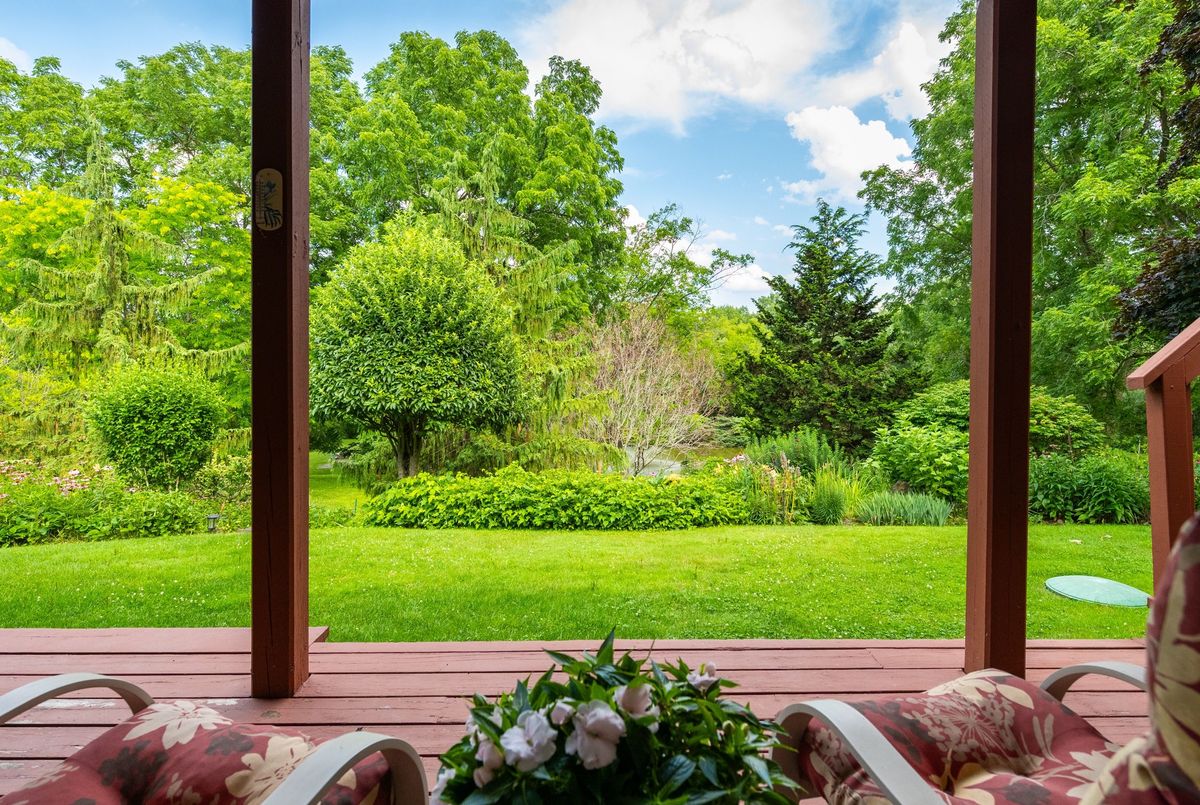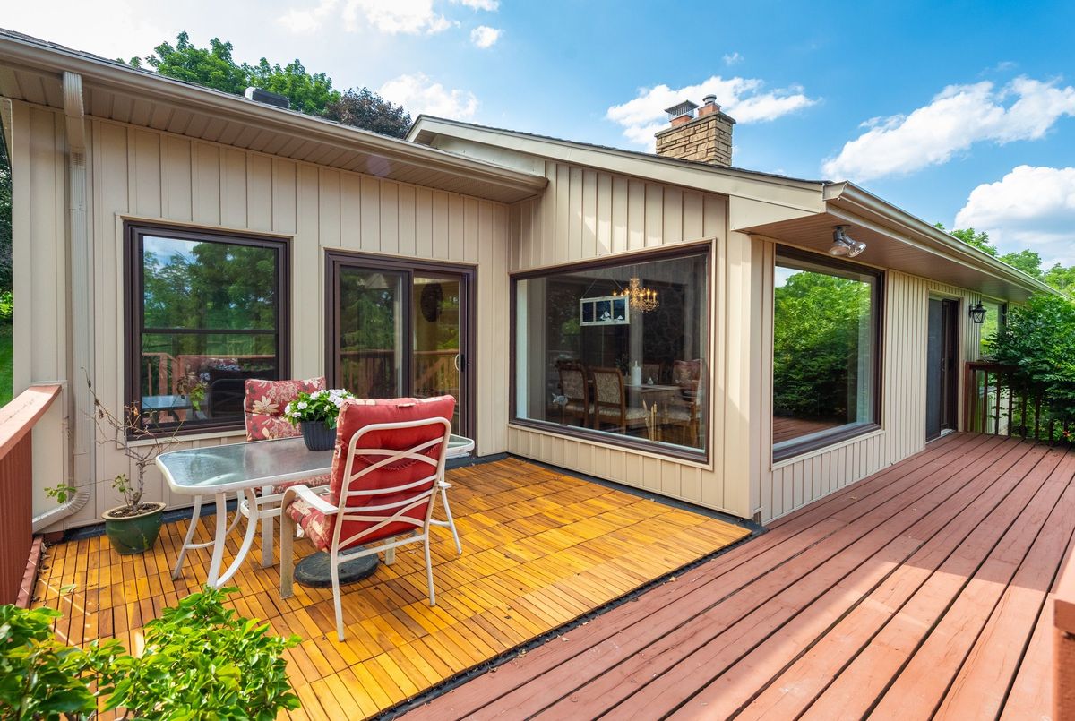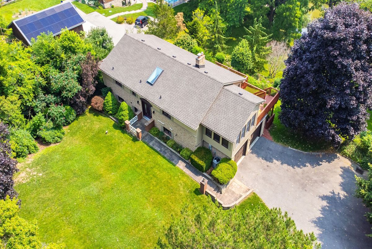 LOCATION...LOCATION...LOCATION This lovely home is situated on 1.2 acres of gorgeous land, backing onto greenspace that has direct access to the Grand River. Immerse yourself in the tranquil beauty of nature while just moments from shops, restaurants and schools. Outdoor enthusiasts will love the forested trails and access along the river, ideal for fishing & kayaking. This lovely home has a great unique layout and design with spacious rooms and wall to wall windows capturing spectacular views of the property of lush greenery and the river (in the Winter). An amazing spring fed pond that has koi fish. Its perfect for playing hockey & ice skating. The grounds are beautiful with mature trees and easy to maintain perennials. This raised bungalow is designed for adult living and entertaining with primary bedroom suite separate from the other bedrooms. The living room/great room features vaulted ceilings, hardwood floors and floor to ceiling stone fireplace. The large dining room also has vaulted ceilings and massive windows capturing the stunning views. The sunroom off the eat-in kitchens is a great space and can be used all year. The primary bedroom has a nice sized walk in closet, sliders to a small private deck and a newly renovated 5 piece ensuite, that features double sinks, soaker tub and separate walk-in shower. The lower level is a walk-out basement, so its nice and bright. Sliders to a deck from the rec. room, which has a gas fireplace. There are 2 spacious bedroom (ideal for teenagers and or guests) both with large windows and nice sized closets. Updated lower level 3 piece bathroom. The garage is an oversized 2 car garage with inside entry. Lots of parking too. Updates: roof shingles 2020, siding 2020, eaves troughs 2020, front door 2020; Gas forced air furnace & A/C 2020; water heater (2020); water softener (1 year), most windows have been replaced. Homes on this kind of land don't come around very often. Book your showing and check out the beauty.