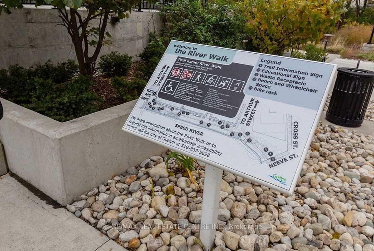 Welcome to 63 Arthur Street #304 at The Studio at Metalworks. Located in one of downtown Guelph's most sought after area with direct access to the Speed River Trail. This chic spacious 1-bed, 1-bath & 1 Parking condo offers an Open Concept layout that's great for Entertaining! Enjoy our modern open concept kitchen with quartz countertops and Stainless Steel appliances. Walkout to your private balcony that overlooks beautiful landscaped grounds! Bright and carpet-free condo that Wheelchair accessible. Enjoy great amenities that include a fully equipped fitness centre, pet spa, games room, party lounge with chef's kitchen , guest suite, library, outdoor fire pit, BBQs, games deck, underground bicycle racks, ample underground visitor parking, EV Chargers and concierge service. Located next to the Speed River walkway and just minutes from vibrant Downtown Guelph's dining, shops, transit, parks, trails, Spring Mill Distillery and University of Guelph.