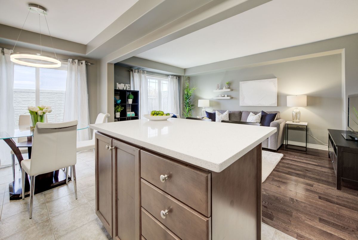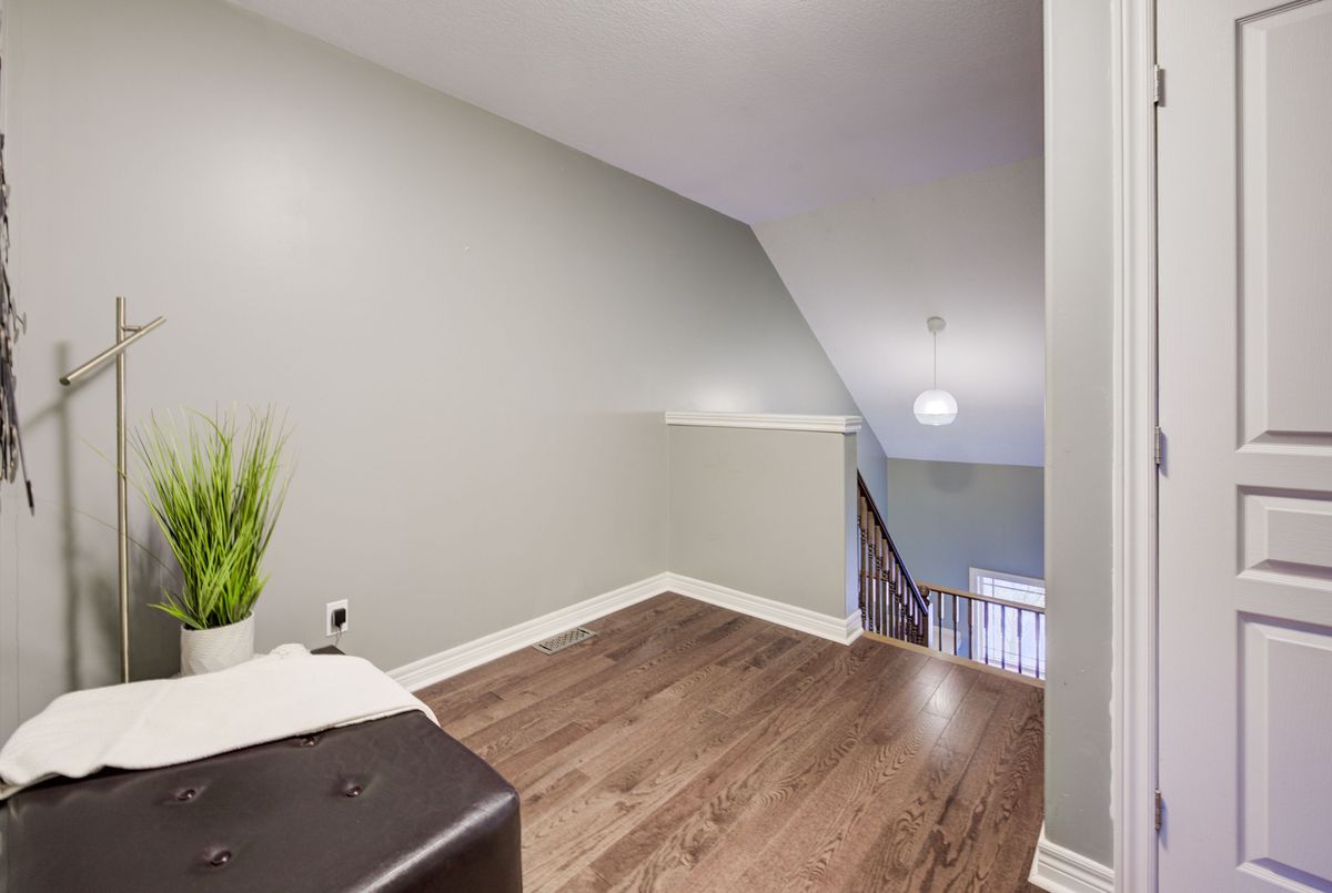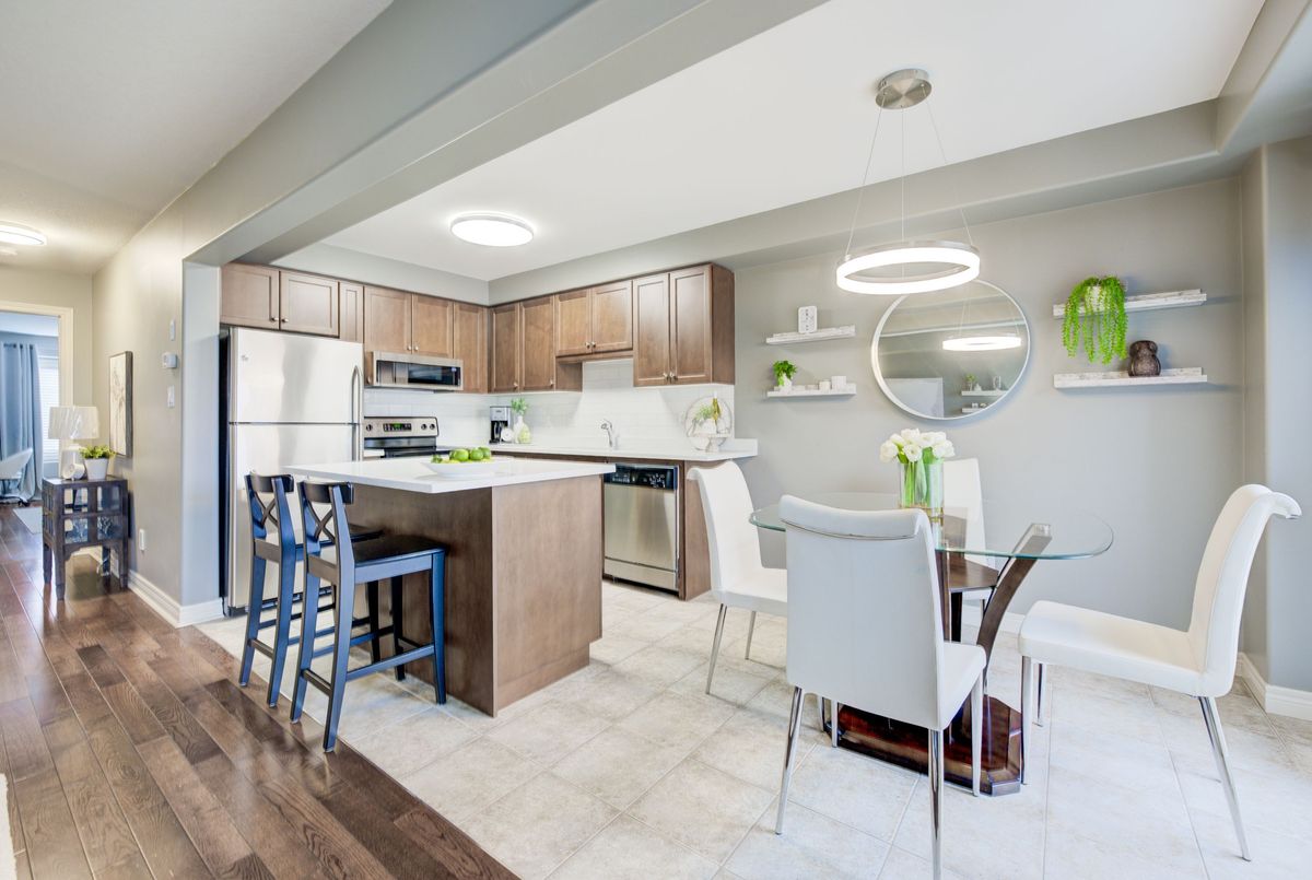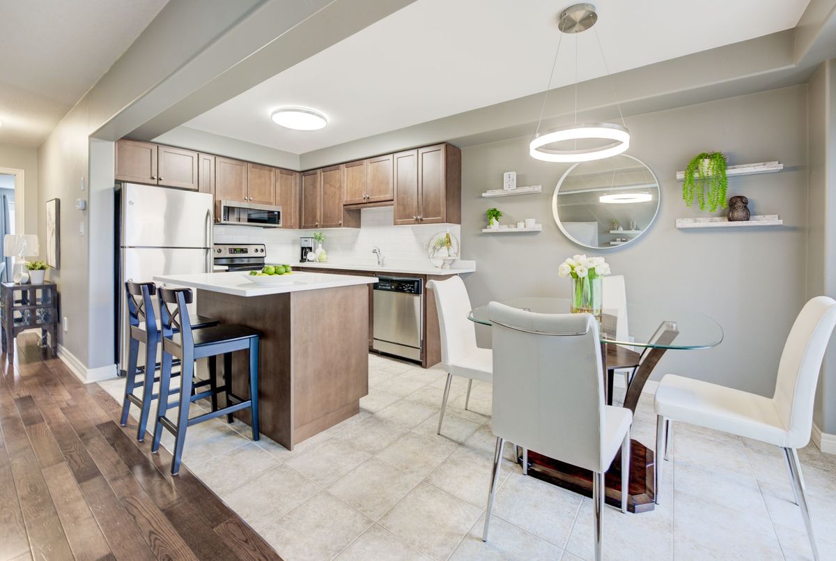 Immaculate two-Story freehold 3-bedroom townhome. Stoney Creek near Linc/Red Hill. Located conveniently near shopping, highway access, schools and public transit. 1561 sq ft as per MPAC. The main floor consists of open concept living rm w hardwood floors & eat in kitchen w. island breakfast bar which provides ample cupboards & counterspace. Tons of natural light. The yard is just beyond your dinette, perfect for the BBQ. Main floor primary bedroom, his/her closets & a 4pc ensuite. 2nd floor has a loft; it's the ideal area for an office/den. 2 spacious bedrooms with double closets, a 4pc bath and a handy bedroom level laundry. The basement has been finished with a rec rm ready for your entertainment. This level is completed with a walkout to the garage for quick access outside. This home is a must see!