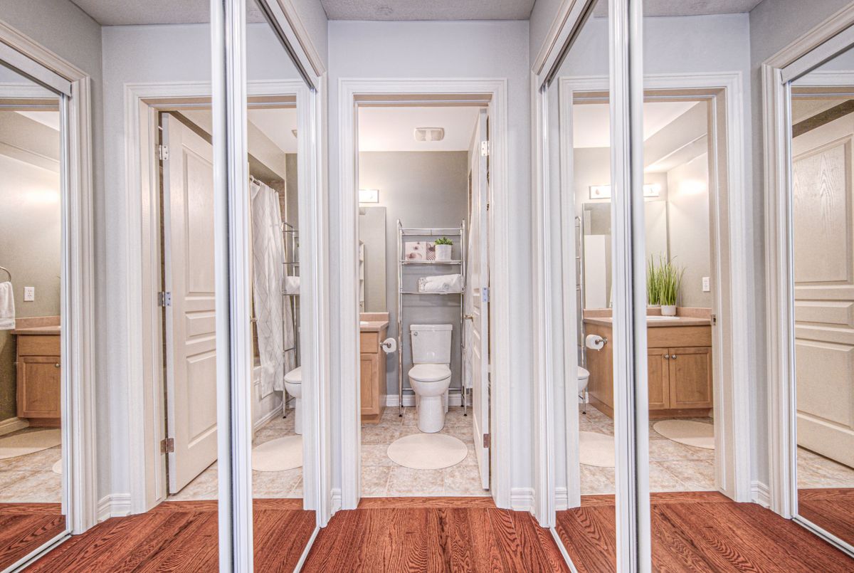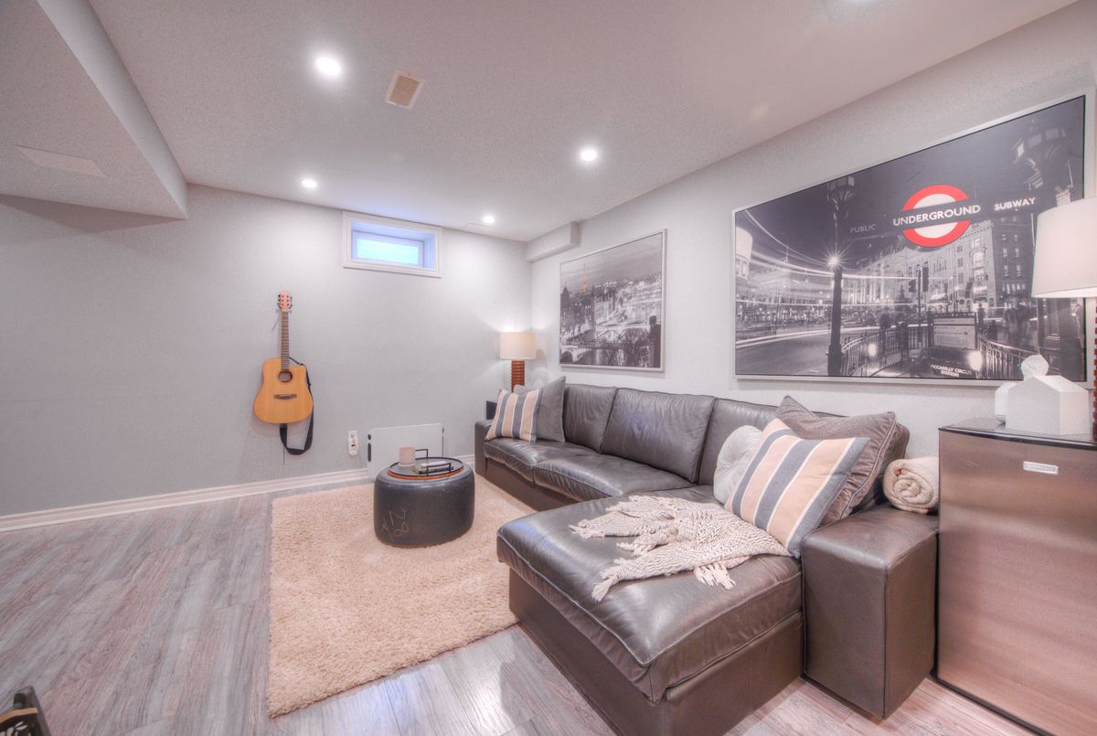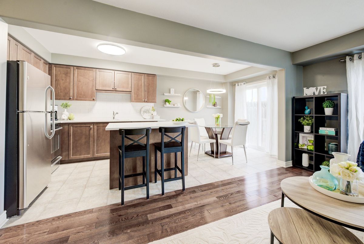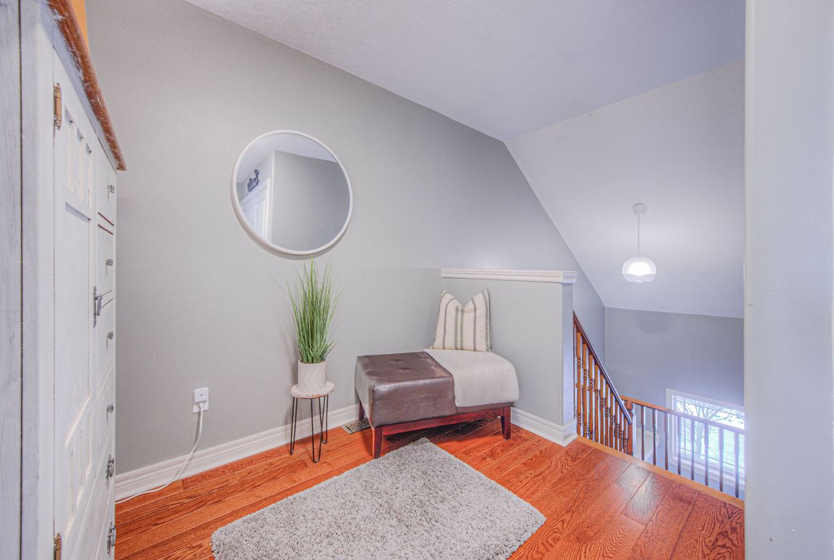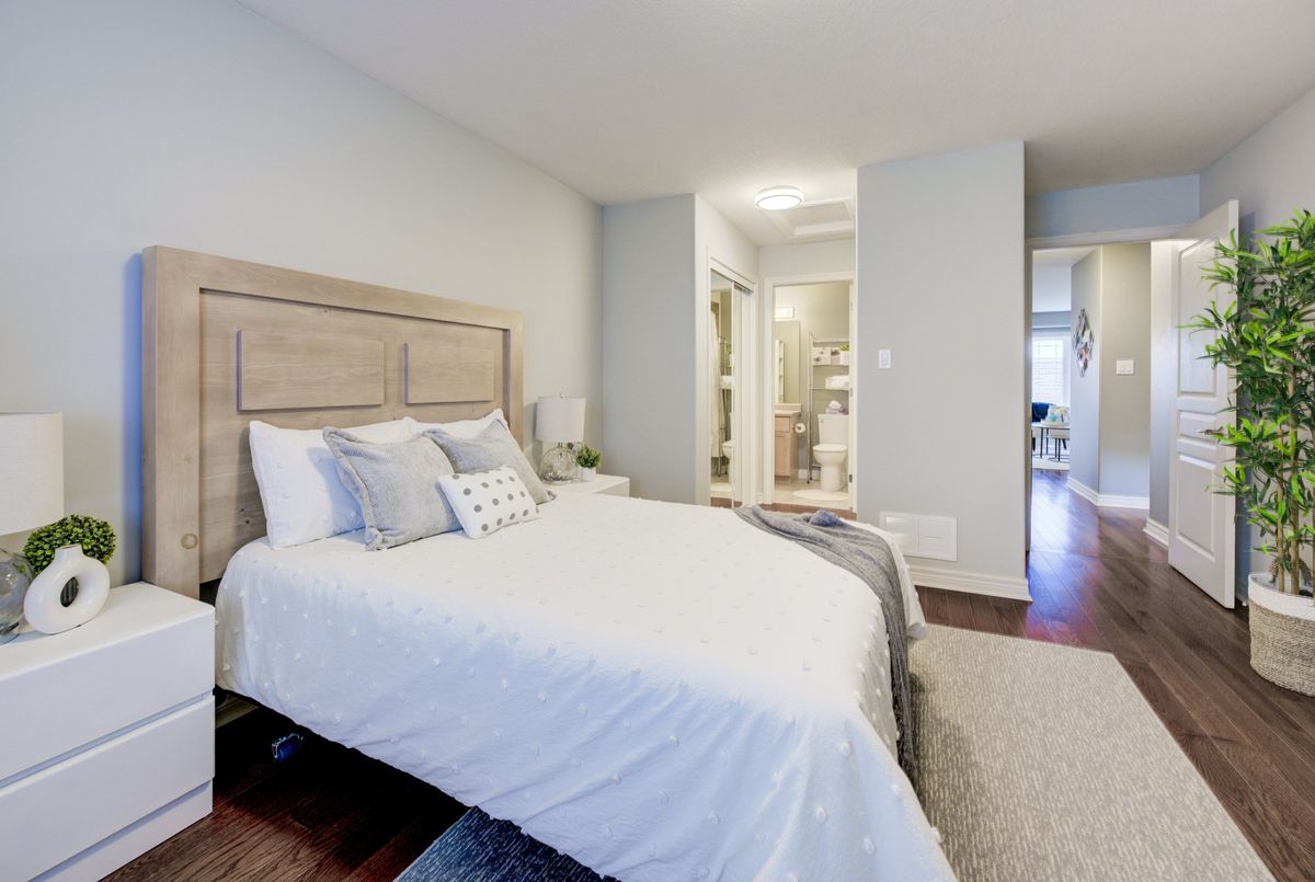Immaculate two-Story freehold 3-bedroom townhome. Stoney Creek near Linc/Red Hill. Located conveniently near shopping, highway access, schools and public transit. 1561 sq ft as per MPAC. The main floor consists of open concept living rm w hardwood floors & eat in kitchen w. island breakfast bar which provides ample cupboards & counterspace. Tons of natural light. The yard is just beyond your dinette, perfect for the BBQ. Main floor primary bedroom, his/her closets & a 4pc ensuite. 2nd floor has a loft; it's the ideal area for an office/den. 2 spacious bedrooms with double closets, a 4pc bath and a handy bedroom level laundry. The basement has been finished with a rec rm ready for your entertainment. This level is completed with a walkout to the garage for quick access outside. This home is a must see!