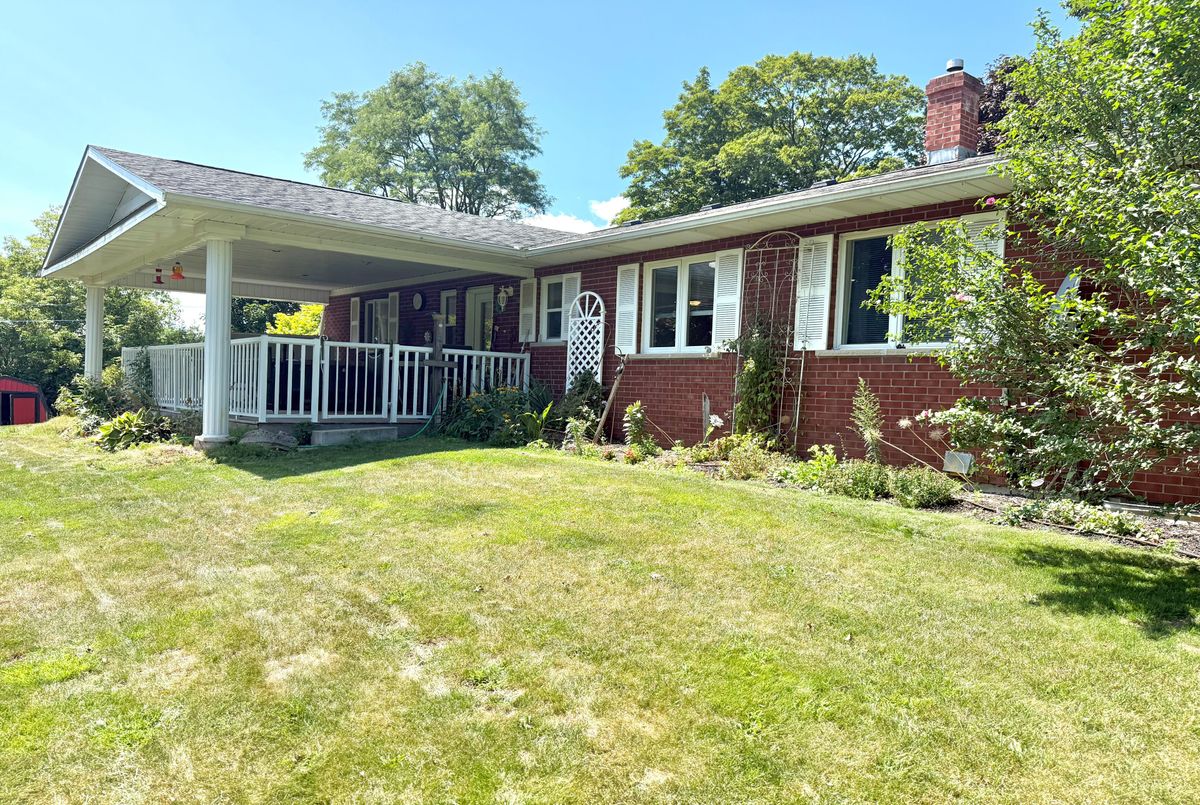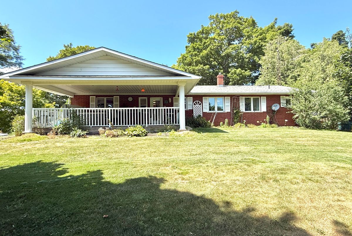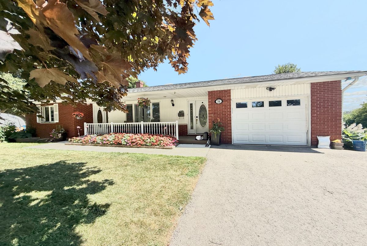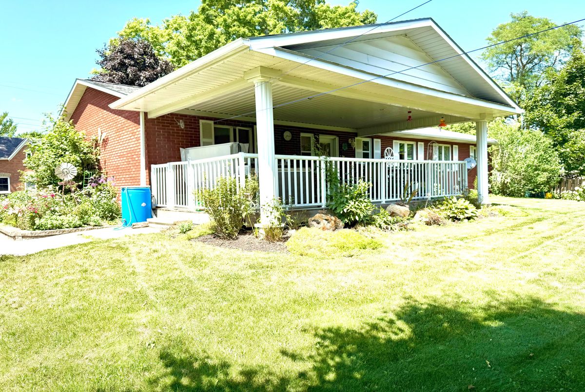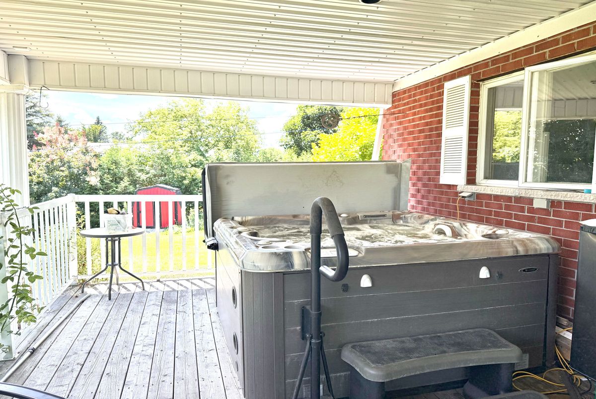 Charming All-Brick Bungalow in a Desired Neighbourhood. Welcome to 75 Ellen Street, Flesherton. This beautiful 2+1 bedroom, 1+1 bath all-brick bungalow offers timeless appeal and modern comfort. Step inside to find gleaming hardwood floors, a bright eat-in kitchen, and classic oak stairs leading to a spacious rec room perfect for entertaining or relaxing. Enjoy the outdoors with a walkout to a covered 12 x 24 rear porch featuring a hot tub, overlooking a gorgeous backyard filled with mature trees and vibrant flowerbeds. The covered front porch provides a welcoming entrance, while the double-wide driveway offers ample parking. Nestled on a tree-lined street in a sought-after neighbourhood, this home combines charm, functionality, and an unbeatable location.