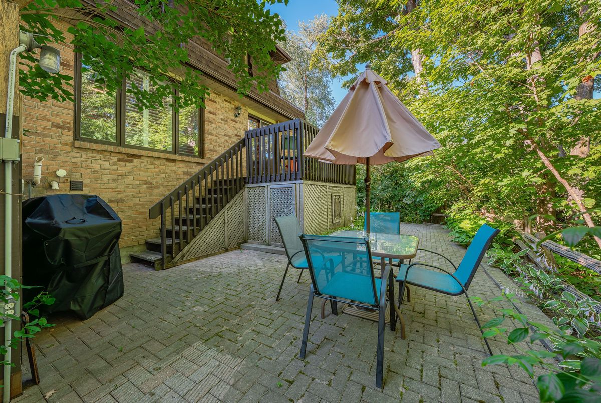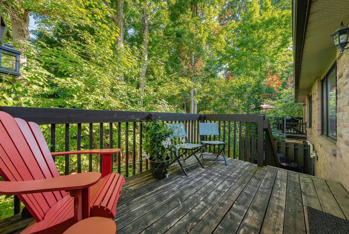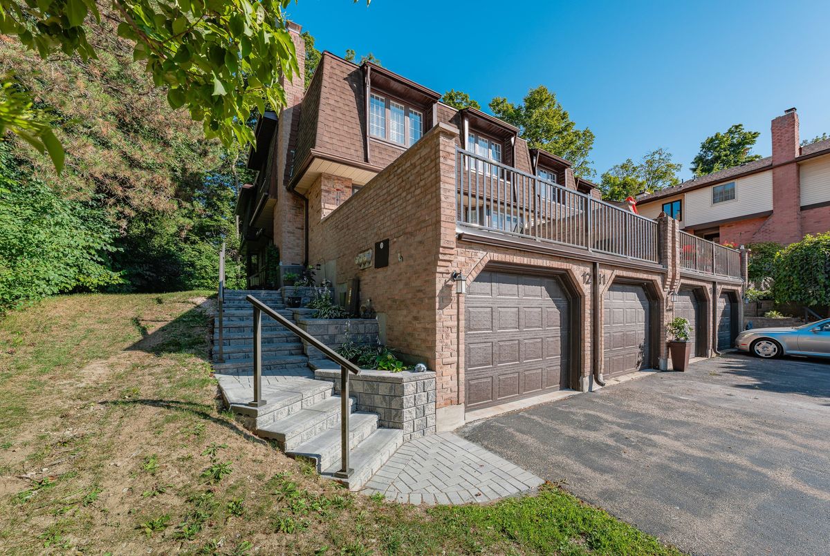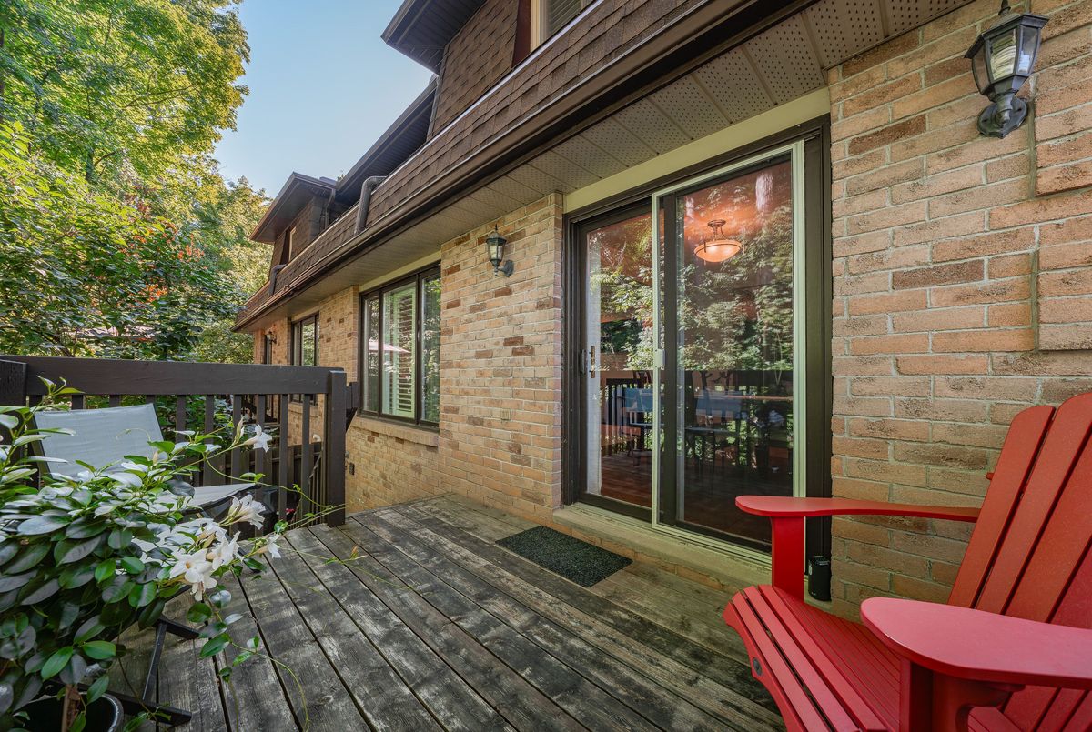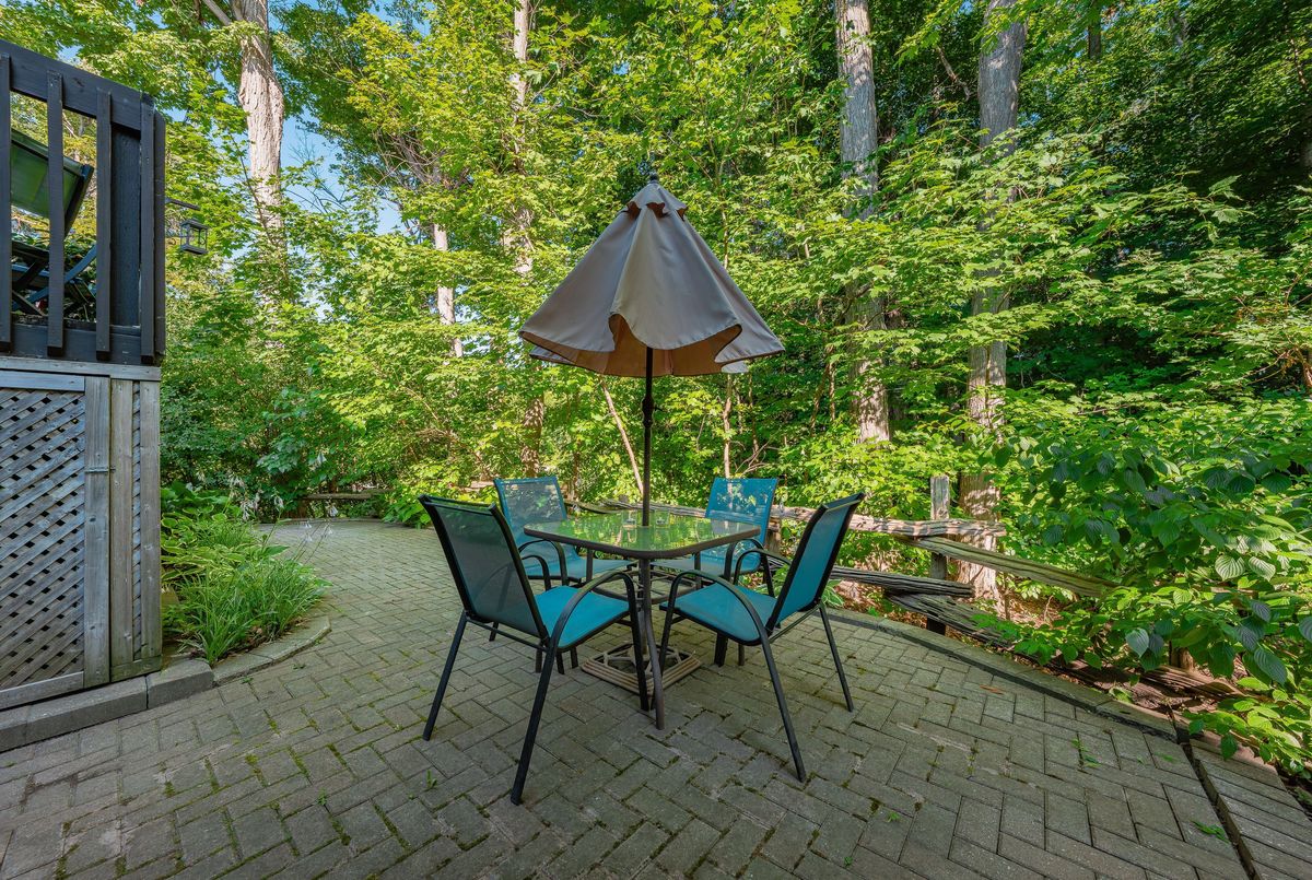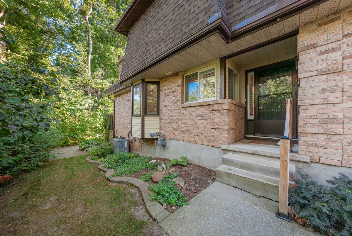 Welcome to this beautifully updated and meticulously maintained 2-bedroom, 4-bathroom end-unit townhome nestled in a quiet, well-managed 12-unit complex. From the moment you step inside, youll be impressed by the modern finishes, fresh paint, and spacious, carpet-free layout that blends comfort with contemporary style. Enjoy low maintenance living with condo fees that include water, exterior maintenance, landscaping, snow removal, and more, giving you more time to relax and enjoy your home. The main floor features a bright and airy living room with a newer gas fireplace and a separate dining area overlooking the private greenspace, ideal for hosting guests or enjoying quiet meals at home. The eat-in kitchen offers ample cabinetry and comes equipped with modern appliances, including a newer fridge, gas stove, dishwasher, and microwave. A stylish 2-piece bathroom completes the main level. Upstairs, you'll find a spacious primary suite with a walk-in closet and a 3-piece ensuite, a generous second bedroom, and an additional 4-piece bath. California ceilings and California shutters add a polished touch throughout the home. The fully finished basement includes a large rec room with a second gas fireplace, updated flooring, and a 3-piece bathroom, plus convenient direct access from the garage and a separate entrance for added privacy or in-law potential. Step outside to your private backyard, featuring a raised deck and interlocking patio, perfect for morning coffee or summer BBQs with a gas BBQ hookup and serene views of nature. Additional features include- Single-car garage with private driveway, Newer central air conditioning, Washer & dryer included & Visitor parking available. Steps to schools, parks, trails, Walking distance to Zehrs, Tim Hortons, Lowes, plus quick access to the expressway and Highway 401. Don't miss your chance to own this stunning home in a highly desirable location. Schedule your private showing today, this one won't last long!