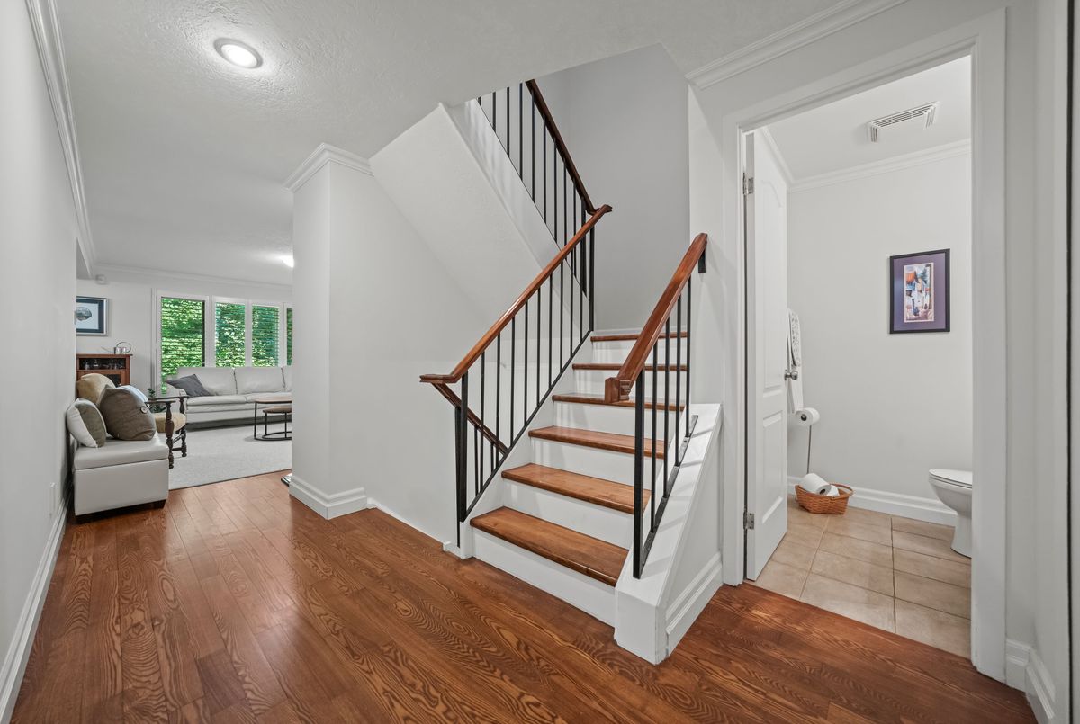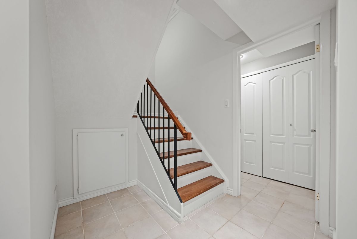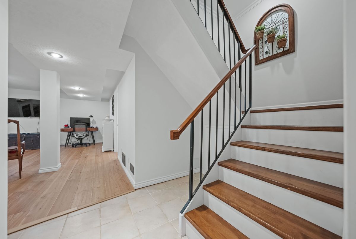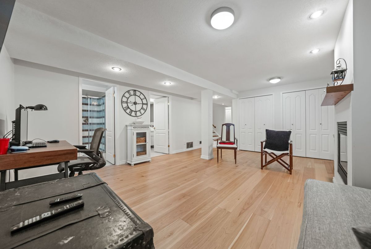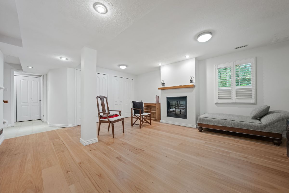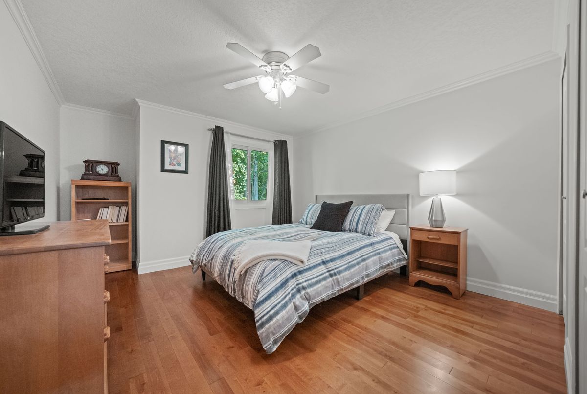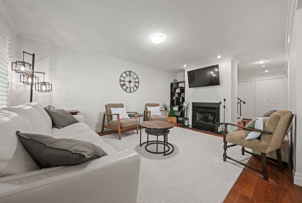 Welcome to this beautifully updated and meticulously maintained 2-bedroom, 4-bathroom end-unit townhome nestled in a quiet, well-managed 12-unit complex. From the moment you step inside, youll be impressed by the modern finishes, fresh paint, and spacious, carpet-free layout that blends comfort with contemporary style. Enjoy low maintenance living with condo fees that include water, exterior maintenance, landscaping, snow removal, and more, giving you more time to relax and enjoy your home. The main floor features a bright and airy living room with a newer gas fireplace and a separate dining area overlooking the private greenspace, ideal for hosting guests or enjoying quiet meals at home. The eat-in kitchen offers ample cabinetry and comes equipped with modern appliances, including a newer fridge, gas stove, dishwasher, and microwave. A stylish 2-piece bathroom completes the main level. Upstairs, you'll find a spacious primary suite with a walk-in closet and a 3-piece ensuite, a generous second bedroom, and an additional 4-piece bath. California ceilings and California shutters add a polished touch throughout the home. The fully finished basement includes a large rec room with a second gas fireplace, updated flooring, and a 3-piece bathroom, plus convenient direct access from the garage and a separate entrance for added privacy or in-law potential. Step outside to your private backyard, featuring a raised deck and interlocking patio, perfect for morning coffee or summer BBQs with a gas BBQ hookup and serene views of nature. Additional features include- Single-car garage with private driveway, Newer central air conditioning, Washer & dryer included & Visitor parking available. Steps to schools, parks, trails, Walking distance to Zehrs, Tim Hortons, Lowes, plus quick access to the expressway and Highway 401. Don't miss your chance to own this stunning home in a highly desirable location. Schedule your private showing today, this one won't last long!