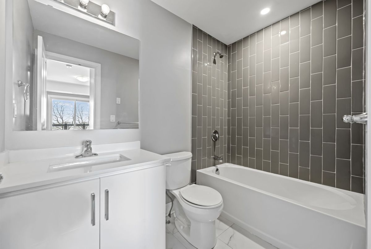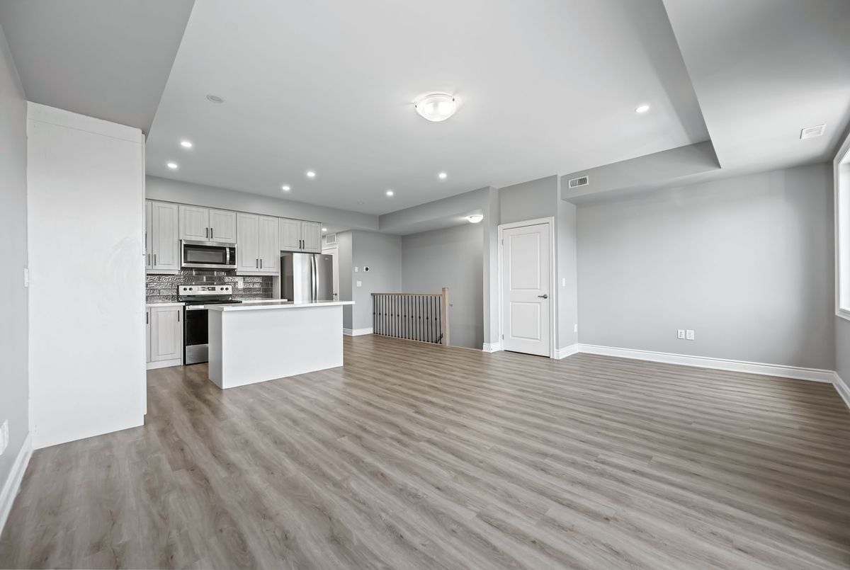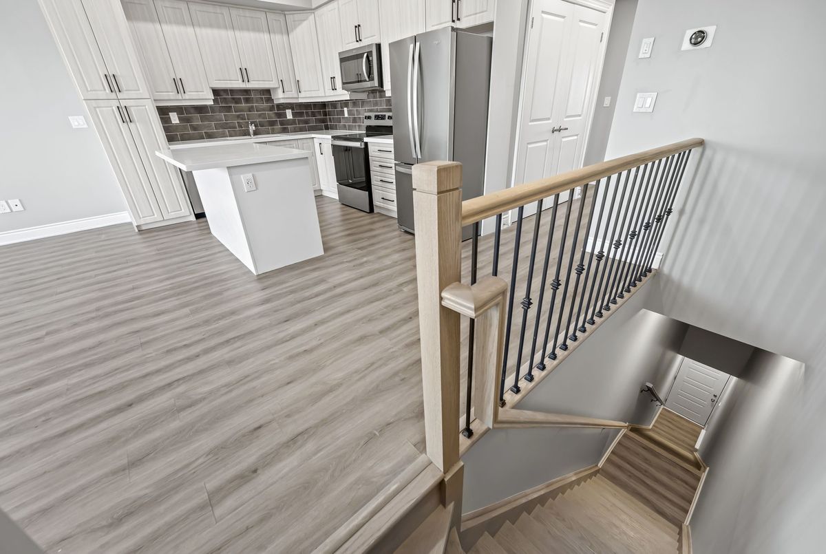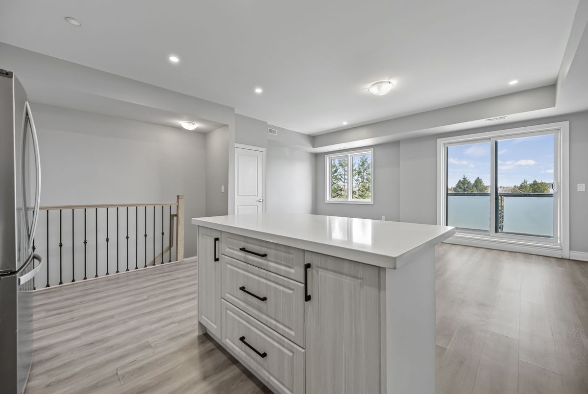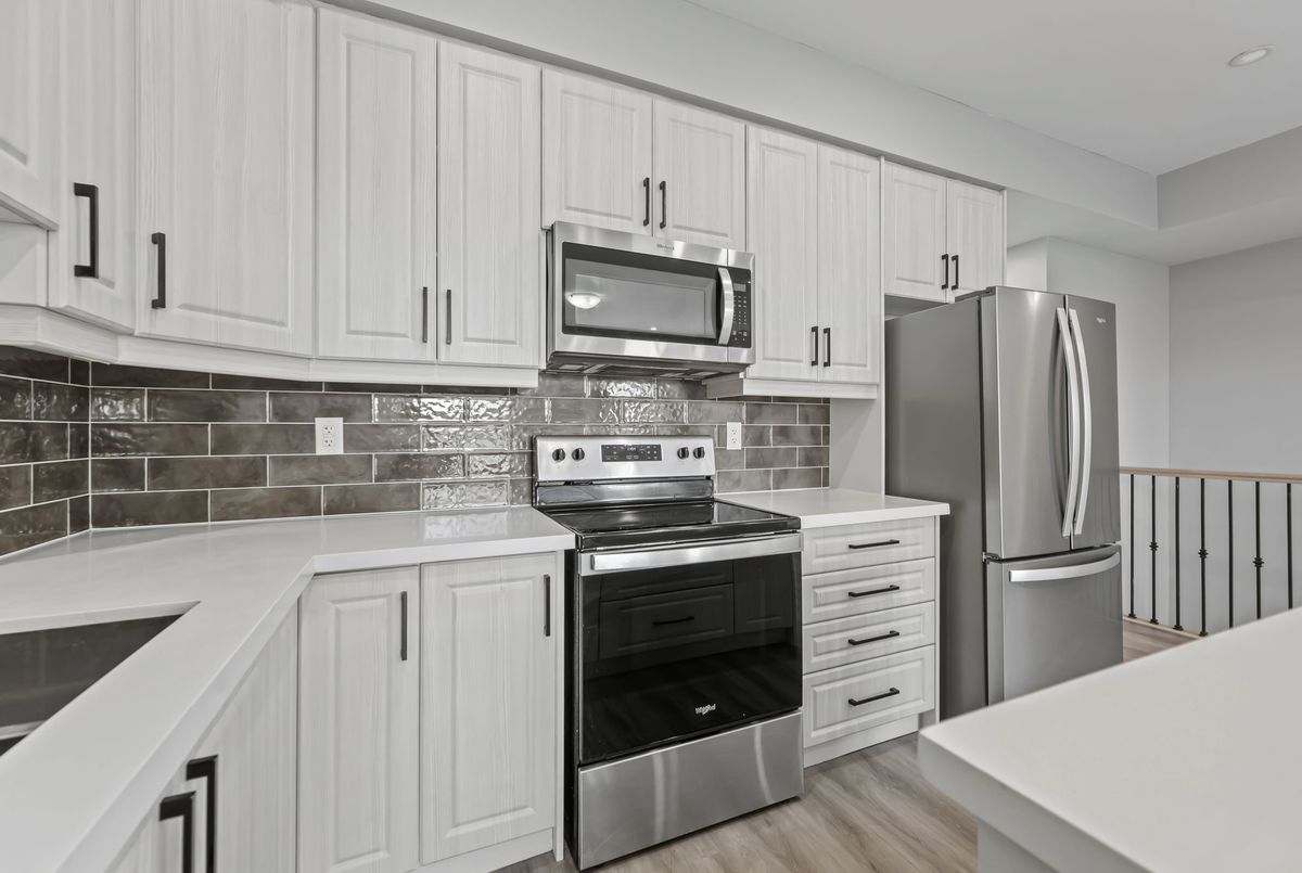 Available immediately! 2 Bedroom 2 Bathroom Stacked townhouse ideally situated within walking distance of various amenities including shops, bus stops, schools and more. As you step into this modern living space, you'll immediately notice the attention to detail and contemporary design. The kitchen boasts elegant quartz countertops, a convenient central island, stylish backsplash, and all-new appliances, making it a chef's delight. The spacious living room is illuminated by natural light streaming through two large windows, creating a bright and inviting atmosphere. Step out onto the balcony to soak in the fresh air and enjoy your morning coffee or tea. The primary bedroom offers a retreat-like ambiance with a walk-in closet, an ensuite washroom for added privacy, and its own balcony, perfect for unwinding after a long day. The second bedroom is generously sized and features a substantial closet, providing ample storage space for your belongings. Convenience is key with an in-unit laundry, allowing you to take care of chores with ease.