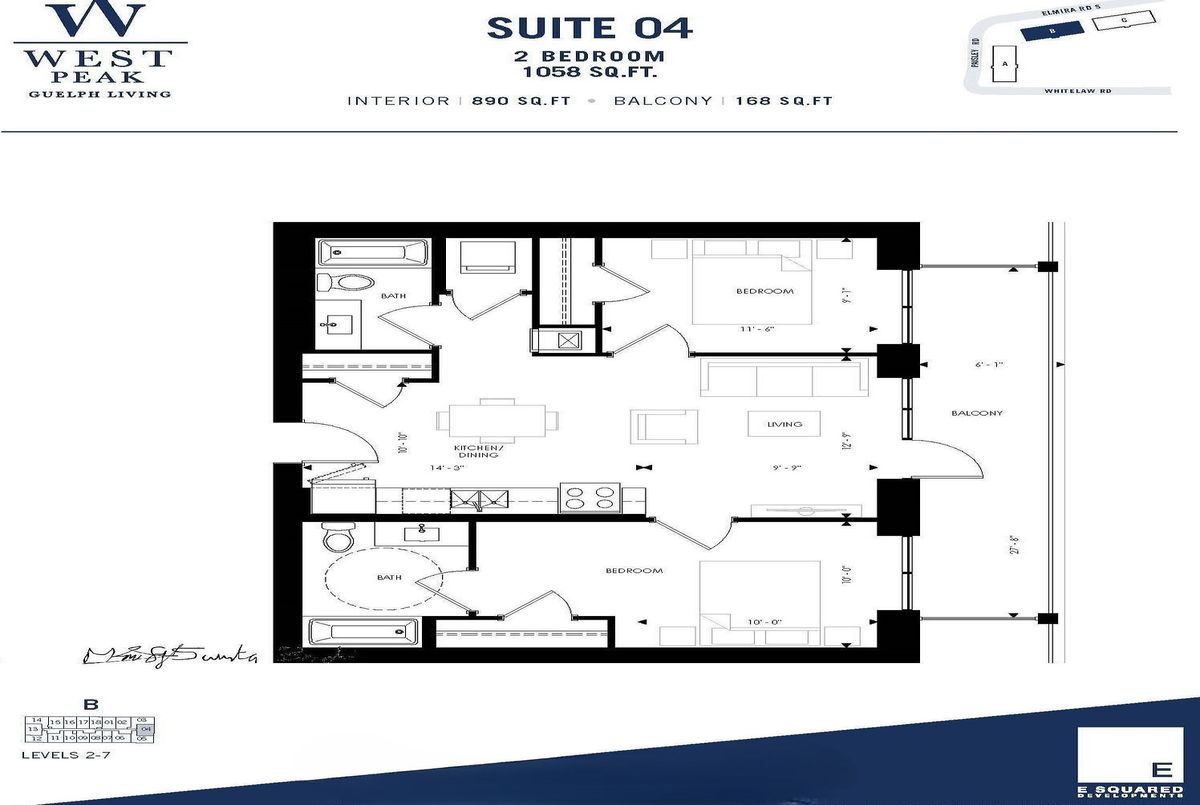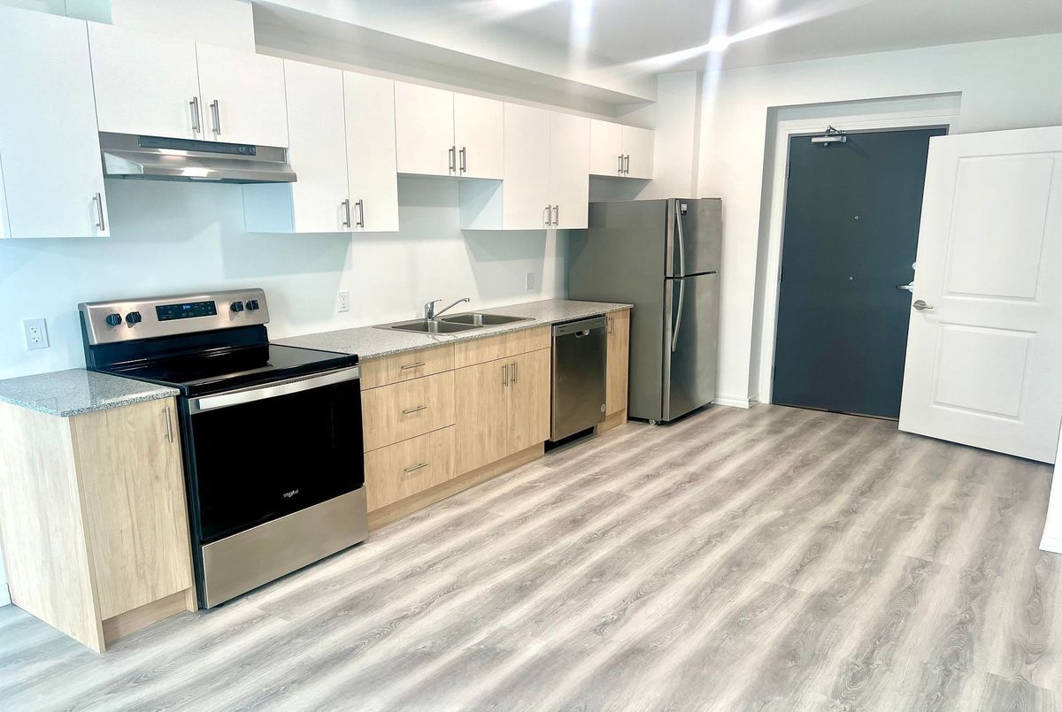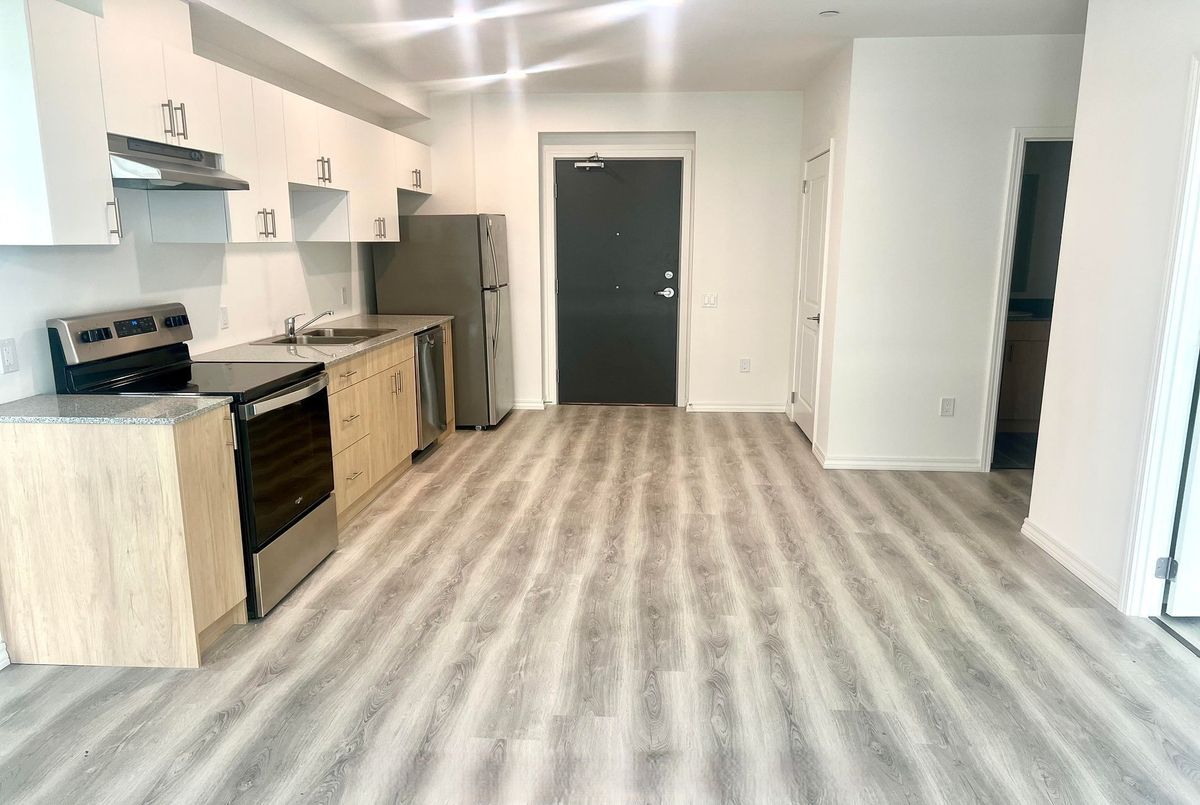Welcome to this Beautiful, Spacious and Bright 2 Bedroom, 2 Baths Unit at West Peak Condos in Guelph. Spacious 1058 Sq ft Unit with all Modern Finishes in Guelph's Vibrant West End Pocket. Open Concept Layout with Laminate Floor Throughout, Stainless Steel Appliances, Quartz Countertops Throughout the Unit, Neutral Paint throghout, LED Lighting, and Rare Find Large 168 Sq Ft Balcony. 2 Spacious Bedrooms with Large Windows and Closets. Enjoy access to a range of upscale amenities, including fitness facilities, outdoor swimming pool, park and rooftop patio. Close to Shopping, Dining, and Entertainment options, Transportation links, Highway 6, Highway 7, Highway 24, and all Other Amenities. Steps to Costco and Zehrs.