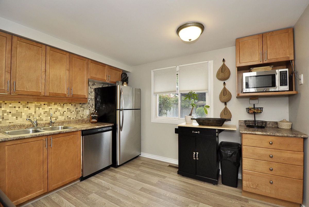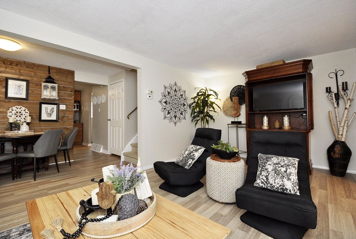 Welcome to this well-maintained 3 bedroom, 3 bathroom townhouse offering a functional layout and great features for comfortable living. The main floor conveniently consists of a 2-piece powder room, along with a bright living space and a kitchen equipped with newer stainless steel appliances. A second entrance leads to a private covered patioperfect for relaxing or entertaining outdoors. The large family room window is an additional bonus, rare to have with condo living. Upstairs youll find three generous bedrooms, including a primary bedroom with his-and-her closets, and a 4-piece bathroom. The finished basement provides excellent versatility with an additional full bathroom, office or bedroom space, making it ideal for working from home or hosting guests. Carport parking fits 2 vehicles. This home combines practicality with comfort and is ready for its next owner.