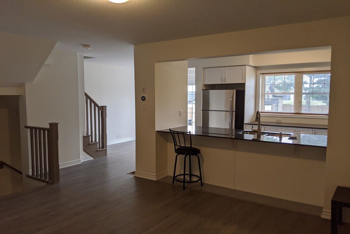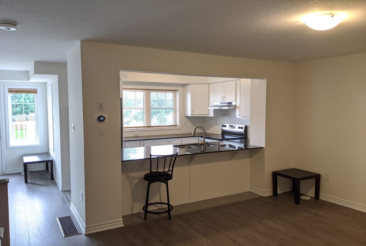 "Town House In A Well Established Huron Village Community In Kitchener freshly paint, Close To The Intersection of Huron Rd And Fisher-Hallman Rd). Approx. k Sq. Ft as a builder plan . Upgrade Features, Laminate Floor For The Second Floor. Main Ground Floor Entrance With Den/Office Space And Access To The Garage, 2 Parking Spots. Close To Access To The 401, All Amenities, Schools, Playgrounds, Community Recreation And Shopping.