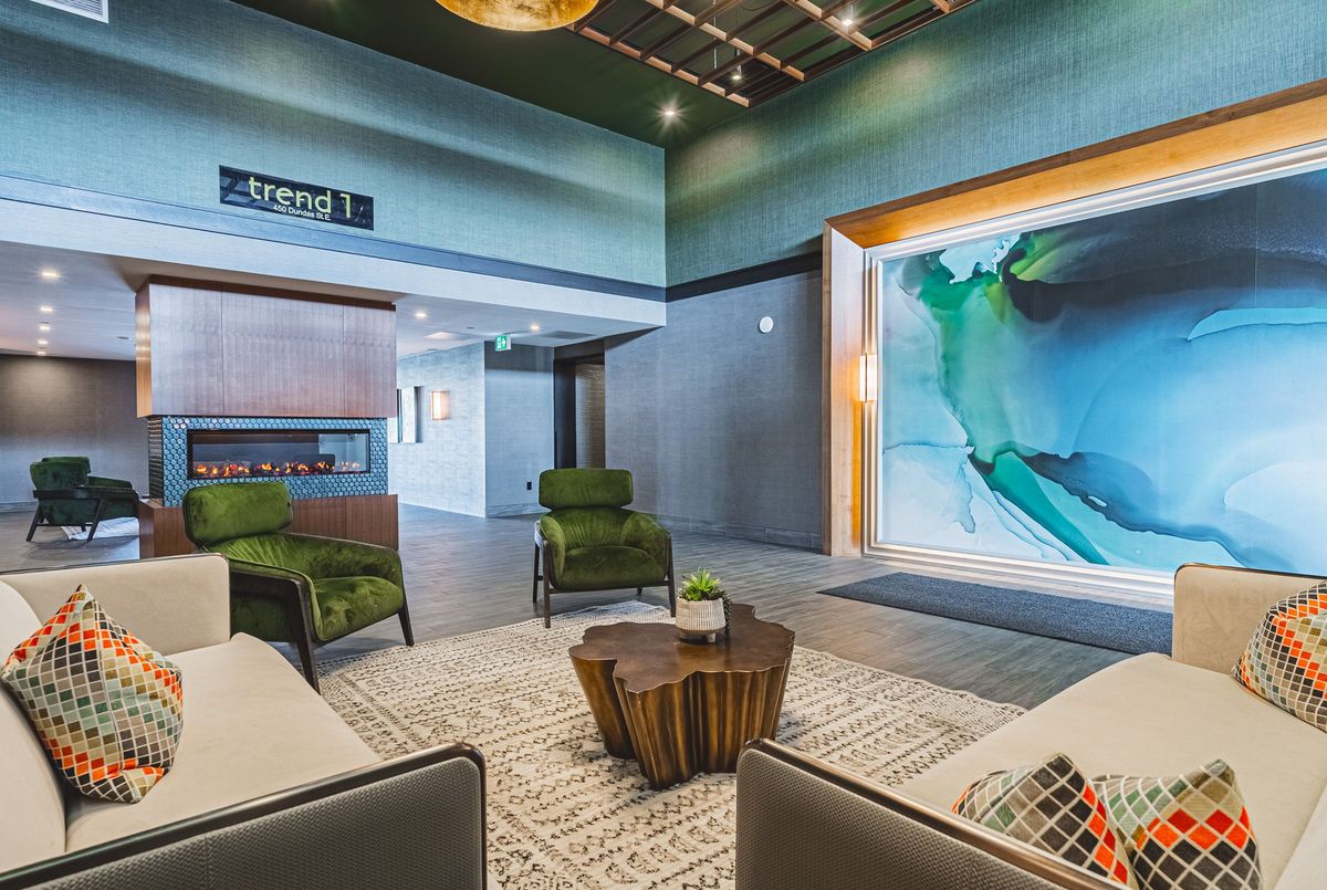 Welcome to Unit 1005 at 470 Dundas Street East, a stunning corner suite in the sought-after Trend Living 3 development in Waterdown. This beautifully designed 2-bedroom, 2-bathroom condo offers approximately 880 square feet of bright, open-concept living space, featuring floor-to-ceiling windows and modern finishes throughout. The kitchen boasts sleek cabinetry, stainless steel appliances, and a functional layout perfect for entertaining or everyday living. Enjoy two generously sized bedrooms, including a primary suite with its own ensuite bath and walk-in closet, plus convenient in-suite laundry. This unit includes one underground parking spaces and access to excellent building amenities such as a fully equipped fitness centre, party room and secure bike storage. Located in a rapidly growing neighbourhood, Trend Living offers easy access to Highways 403 and 407, the Aldershot GO Station, local parks, schools, and shopping. It's ideal for professionals, couples, or downsizers seeking a modern, low-maintenance lifestyle in a vibrant and convenient location.