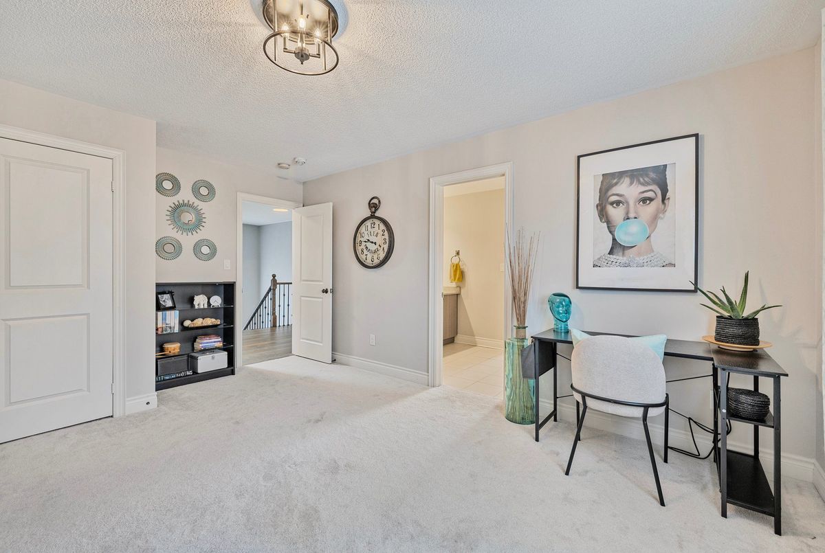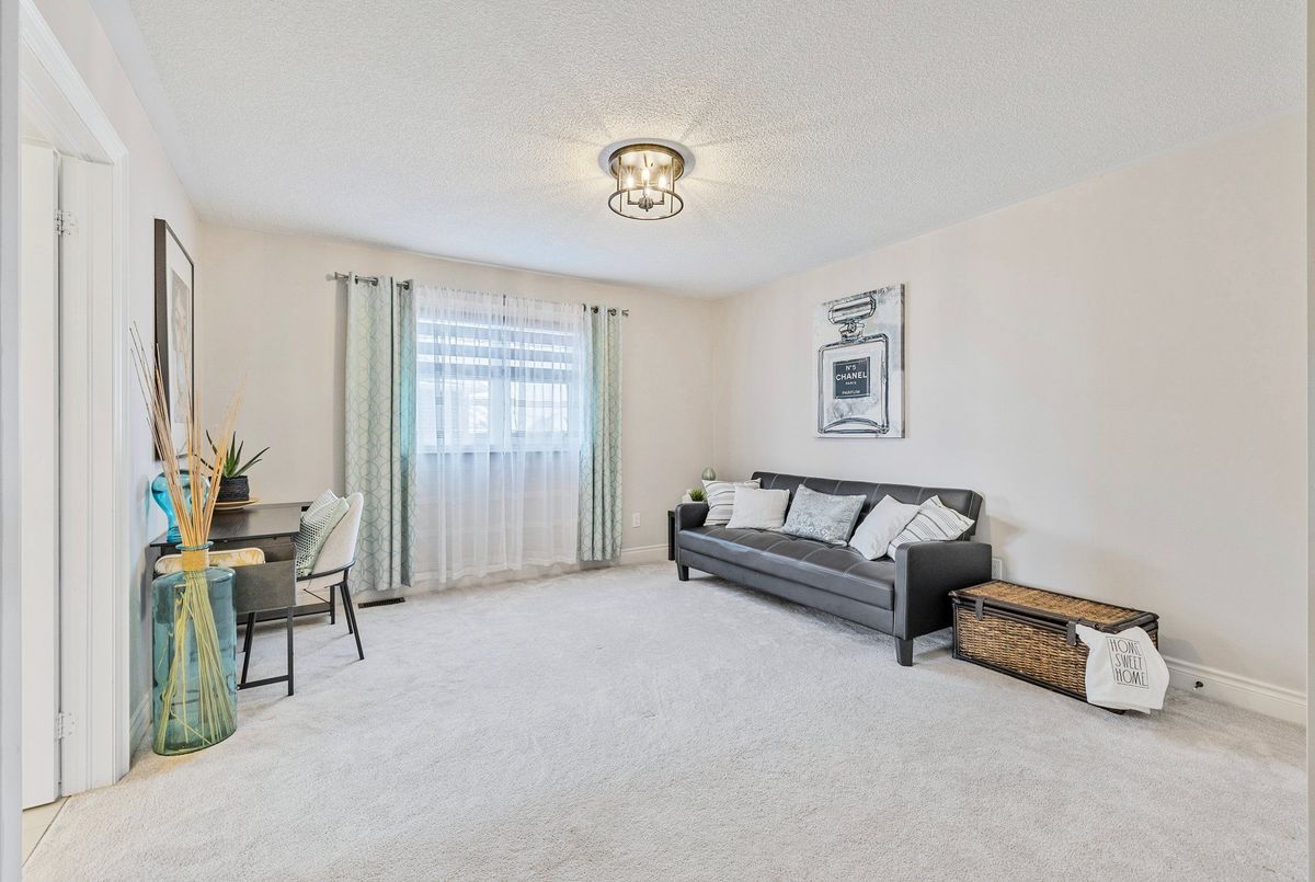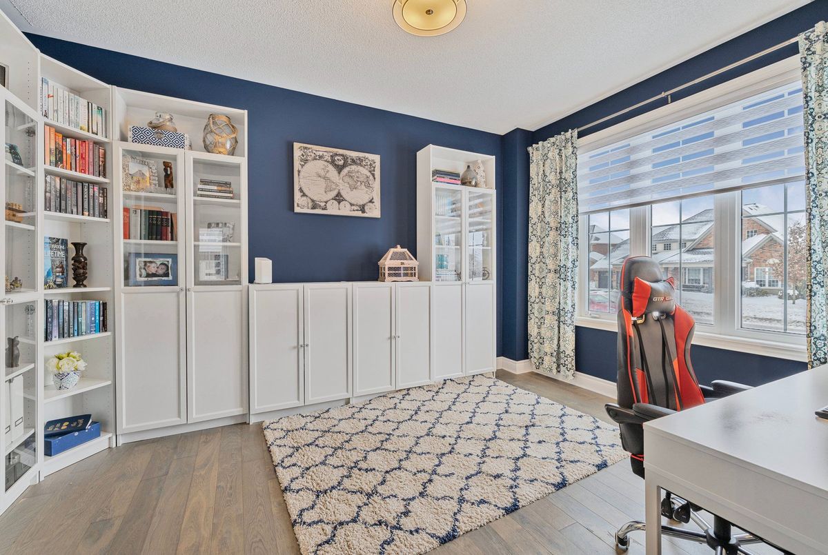 A Very Rare "Cambridge" Model On A Premium Lot. 3-Car Garage With A Unique Porte Cochere Leading Into A Quaint Courtyard & An Additional Direct Side Entrance To Kitchen For Added Privacy. 4 Bedrooms Plus Office, Which Can Be Converted Into A 5th Bedroom. Painted In Neutral Colours. Bright White Kitchen With Quartz Countertops & Modern Backsplash. Open Concept Living/Kitchen/Breakfast Area With Bow Window & Fireplace. Upgraded LED Light Fixtures. Main Floor Laundry With Second Coat Closet, Added Cabinetry, & Separate Entrance To The Garage. Oversized Primary Bedroom With Sitting Area, His & Hers Closets, & 5Pc Ensuite With Frameless Glass Shower & Tub. Lots of Windows Throughout To Enjoy The Sunlight. Large Lot with Back Frontage of 95ft. Located On A Quiet Street With No Sidewalk At The Front. Walking Distance To Park And Island Lake Conservation Area For Fishing, Hiking & Community Events. Close To Hospital, Schools, & All Town Of Orangeville Amenities.