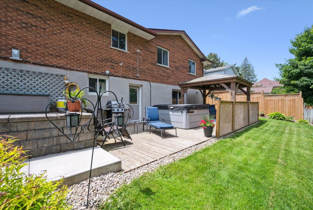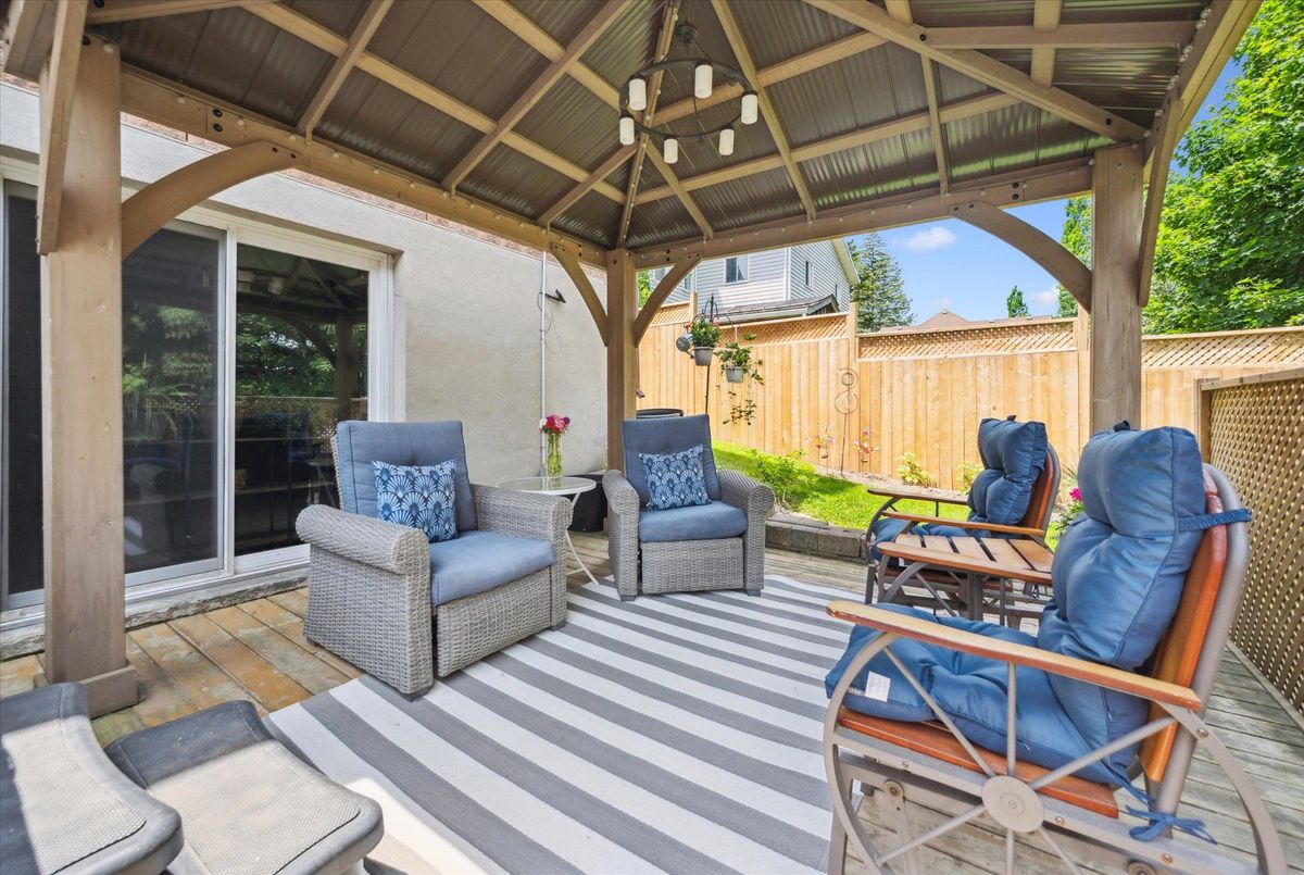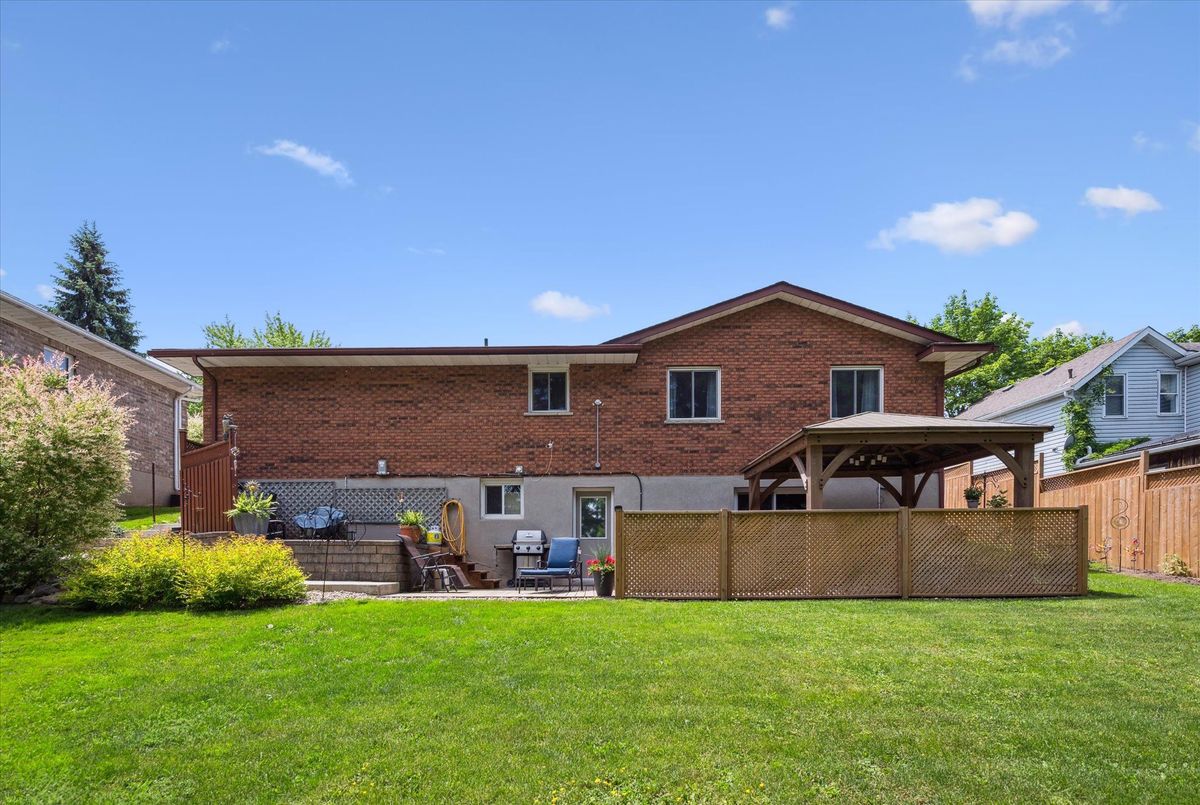 A beautifully renovated bungalow offering the perfect blend of comfort, style, and space for todays families or downsizers who dont want to compromise on quality. From the moment you arrive, the curb appeal sets the tone. The newer concrete double driveway provides parking for up to five vehicles, complemented by an extra-large garage with rear storage. The landscaped gardens and inviting porch welcome you inside, where thoughtful updates shine.The main floor features a bright, open-concept layout. The renovated kitchen with quartz countertops, undermount sink, and modern finishes flows seamlessly into a spacious dining area and sun-filled living room with oversized picture windows. Updated flooring adds warmth throughout. The primary bedroom is generously sized, with two additional bedrooms offering flexibility for family, guests, or a home office. The main bathroom has just been fully renovated with a fresh, spa-like design.The lower level extends your living space with a huge recreation room and cozy fireplace. A bonus room works well as a gym, hobby space, or extra bedroom. The finished laundry room includes a washtub, storage, and a 3-piece bath. With a walkout to the backyard, this level connects indoor and outdoor living.The backyard is a standout. Expansive enough for a future pool, its already landscaped for entertaining and relaxation. Enjoy evenings under the gazebo, unwind in the jacuzzi tub, or gather on the upper deck and patio. Offering privacy, space, and endless opportunities, its ideal for family life or hosting friends.Lovingly maintained and upgraded, this home is move-in ready with stunning updates and a new competitive price. Located in one of Mapletons most family-friendly communities, its perfect whether youre downsizing without compromise or looking for more room to grow. Approximate 35-40 mins to Guelph & Waterloo. Easy access to Elora and Fergus.