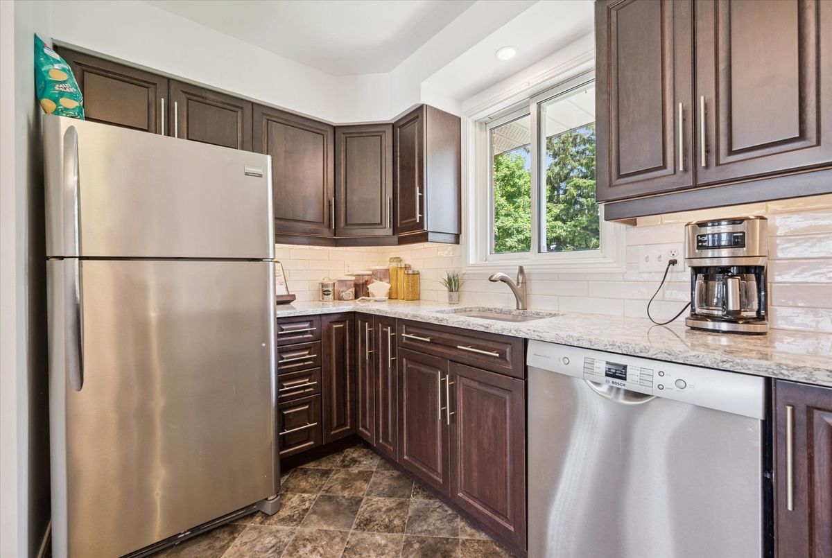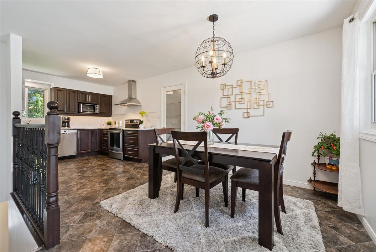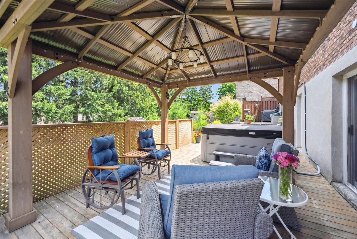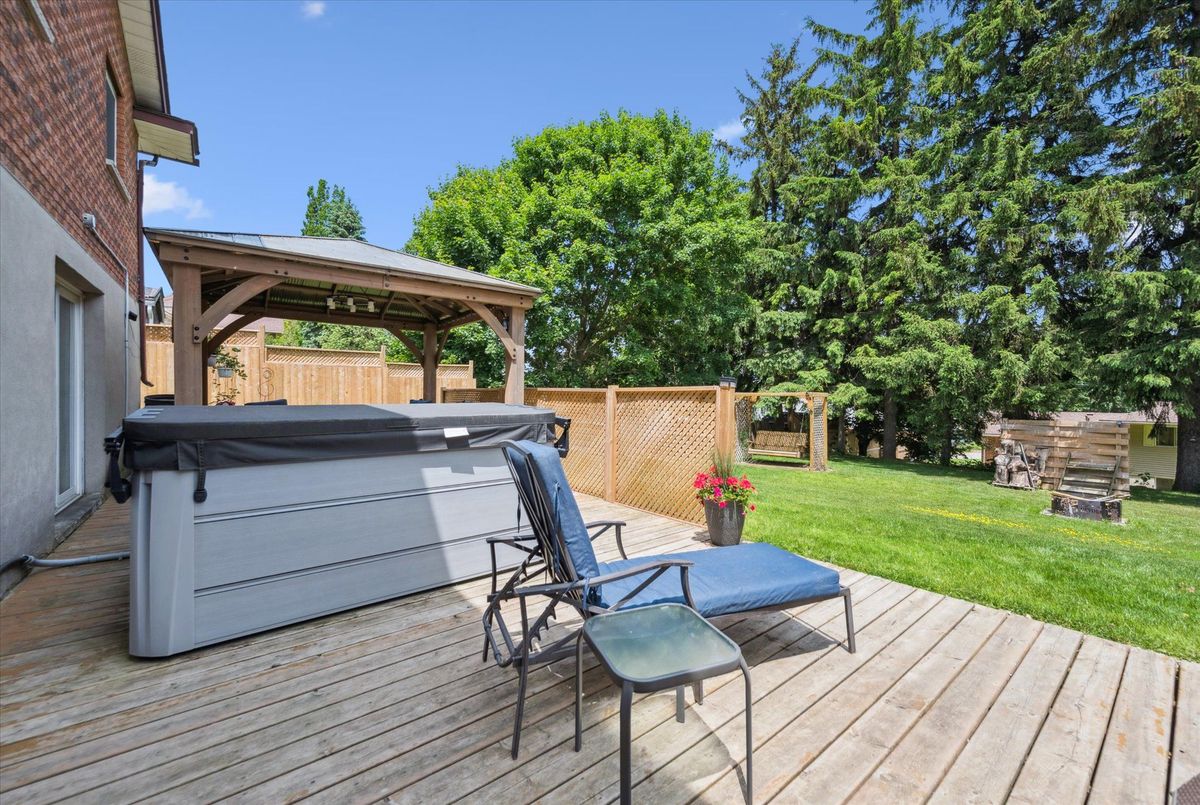 A beautifully renovated bungalow offering the perfect blend of comfort, style, and space for todays families or downsizers who dont want to compromise on quality. From the moment you arrive, the curb appeal sets the tone. The newer concrete double driveway provides parking for up to five vehicles, complemented by an extra-large garage with rear storage. The landscaped gardens and inviting porch welcome you inside, where thoughtful updates shine.The main floor features a bright, open-concept layout. The renovated kitchen with quartz countertops, undermount sink, and modern finishes flows seamlessly into a spacious dining area and sun-filled living room with oversized picture windows. Updated flooring adds warmth throughout. The primary bedroom is generously sized, with two additional bedrooms offering flexibility for family, guests, or a home office. The main bathroom has just been fully renovated with a fresh, spa-like design.The lower level extends your living space with a huge recreation room and cozy fireplace. A bonus room works well as a gym, hobby space, or extra bedroom. The finished laundry room includes a washtub, storage, and a 3-piece bath. With a walkout to the backyard, this level connects indoor and outdoor living.The backyard is a standout. Expansive enough for a future pool, its already landscaped for entertaining and relaxation. Enjoy evenings under the gazebo, unwind in the jacuzzi tub, or gather on the upper deck and patio. Offering privacy, space, and endless opportunities, its ideal for family life or hosting friends.Lovingly maintained and upgraded, this home is move-in ready with stunning updates and a new competitive price. Located in one of Mapletons most family-friendly communities, its perfect whether youre downsizing without compromise or looking for more room to grow. Approximate 35-40 mins to Guelph & Waterloo. Easy access to Elora and Fergus.