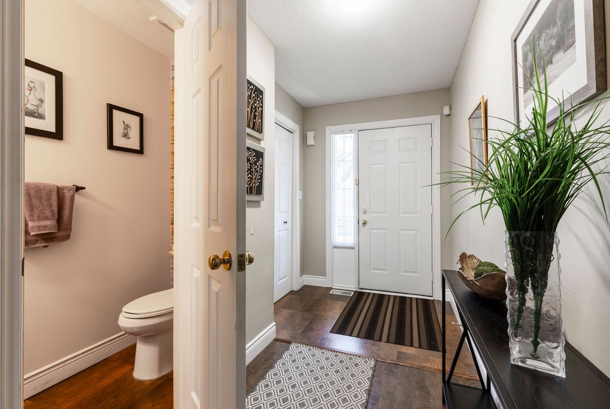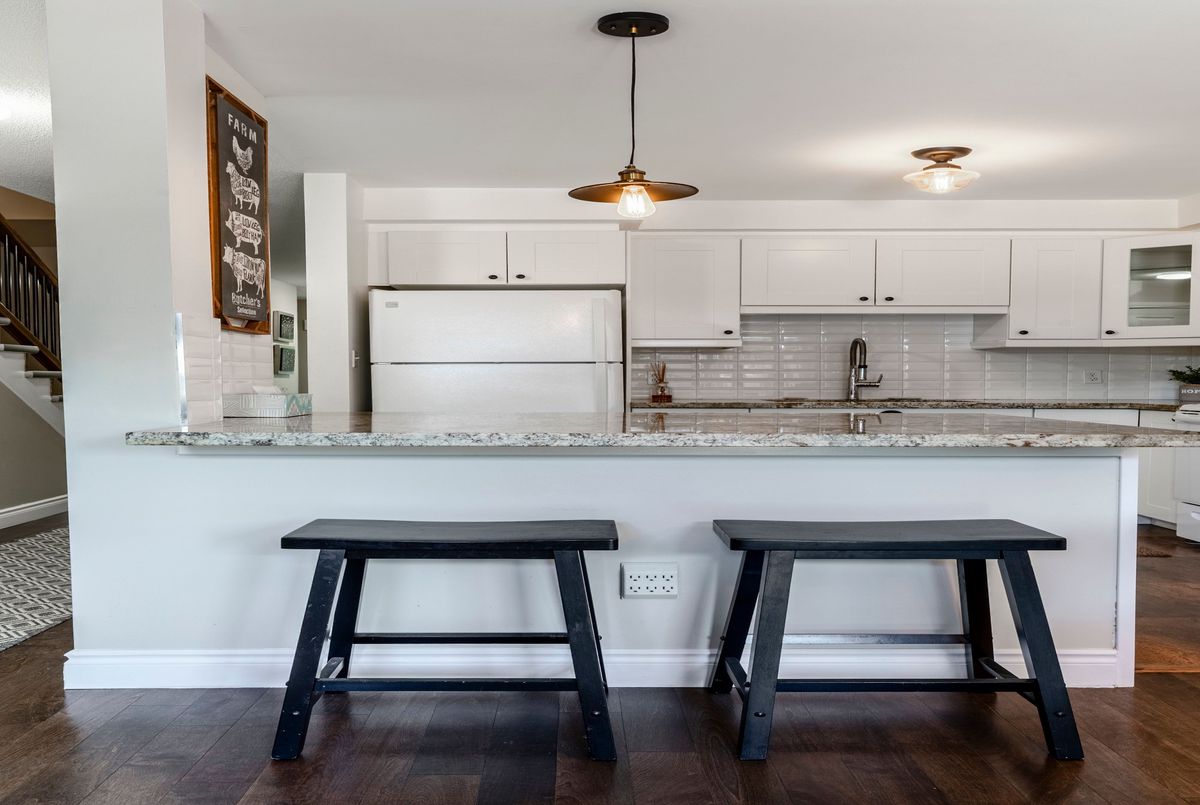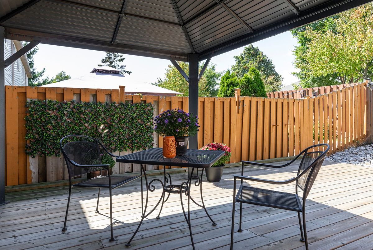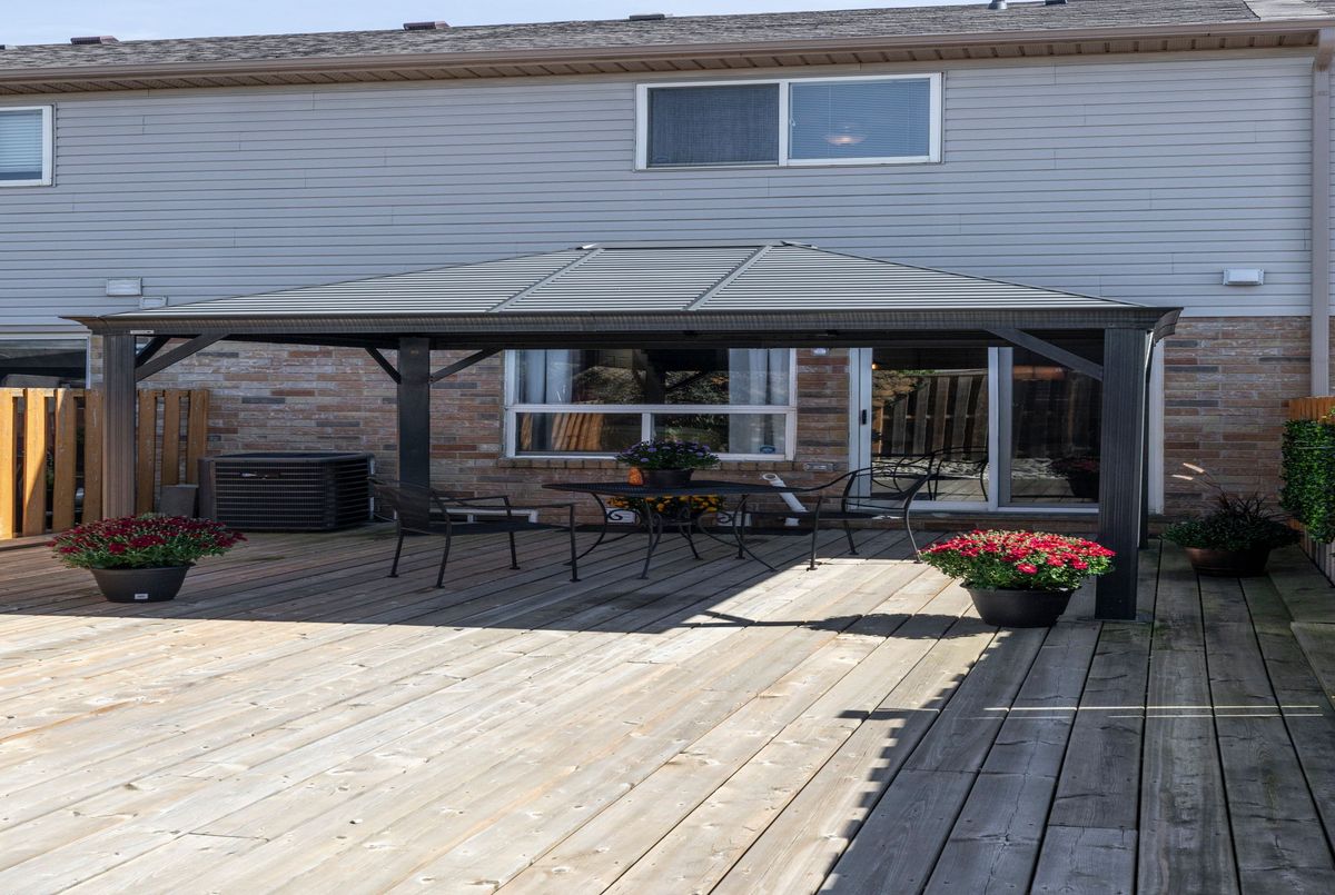 This beautifully maintained 3-bed, 3-bath townhome offers the perfect balance of comfort, style & convenienceall in a welcoming community with low monthly condo road/common area fee. Move-in ready, ideal for anyone looking for a low-maintenance lifestyle without compromise. Step inside to a long foyer that sets the tone for the home with gleaming engineered hardwood floors through most of the main level & provides convenient inside access to the garage. A stylish 2-pc powder room features stone accent wall & granite counter. At the heart is the updated kitchen, designed with both function & style in mind. Granite counters, beveled tile backsplash & large island with seating make it perfect for entertaining. A pantry with sliding shelves ensures everything has its place. The open-concept living & dining area is bright & inviting, large windows filling the space with natural light. A Roxul-insulated, sound-proofed wall creates the perfect spot for your entertainment setup. Patio doors lead to a private backyard oasis featuring a large deck with gazebo, fully fenced & no grass to cutideal for relaxing & entertaining outdoors. Upstairs, youll find cozy carpeting in all 3 bedrooms. paired with engineered hardwood throughout the hallway & stairs. The spacious primary offers a large closet & ensuite privilege to a full bath with newer bathfitter surround, large vanity with granite counter. A fully finished lower level extends your living space with a sizeable rec room, 2-pc bath, laundry, utility room & generous storage spaces. Notable features: Newer insulated garage door, HVAC approx 2017, Roof approx. 5 years, Newer eaves, ComfortNET thermostat, Blackout curtains with reinforced rods, New concrete steps & railing at entry. Centrally located on Hamilton Mountain, just minutes from Red Hill Parkway, with access to QEW & LINC. Nearby public transit, schools, parks & shopping. This home truly has it all - modern updates & thoughtful details - do not miss this opportunity!
